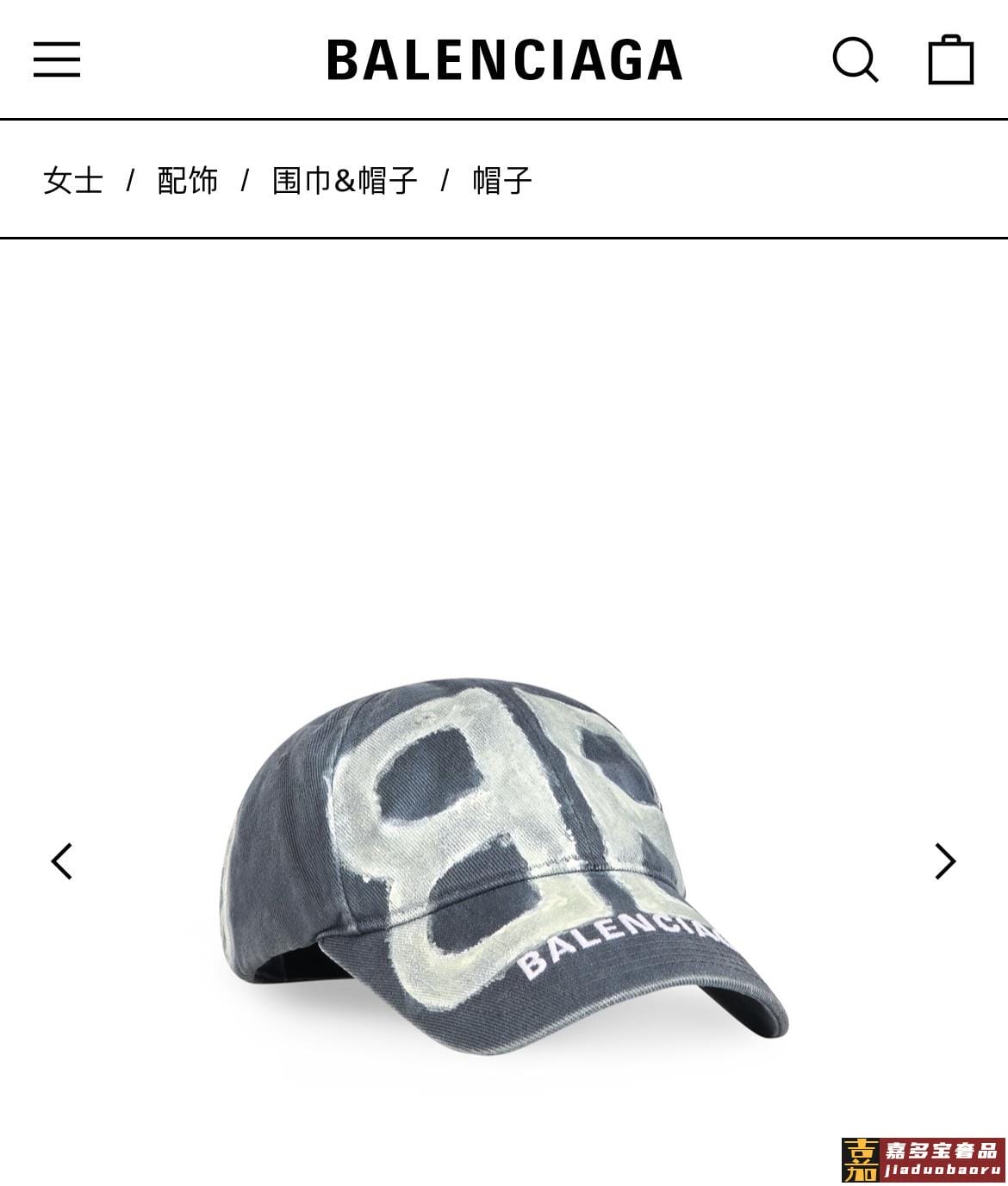 巴黎世家新款棒球帽洗水帆布鸭舌帽刺绣整个帽型非常有立体感柔软