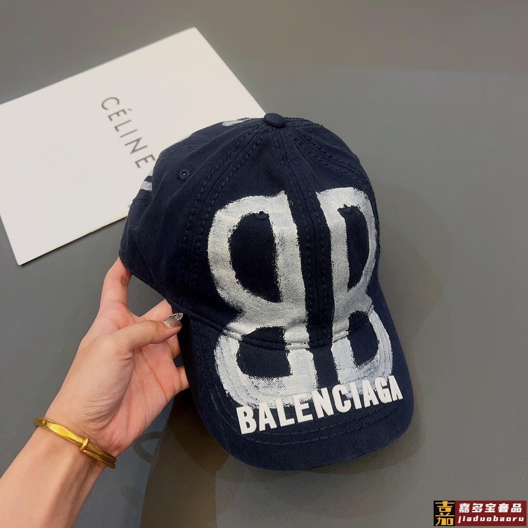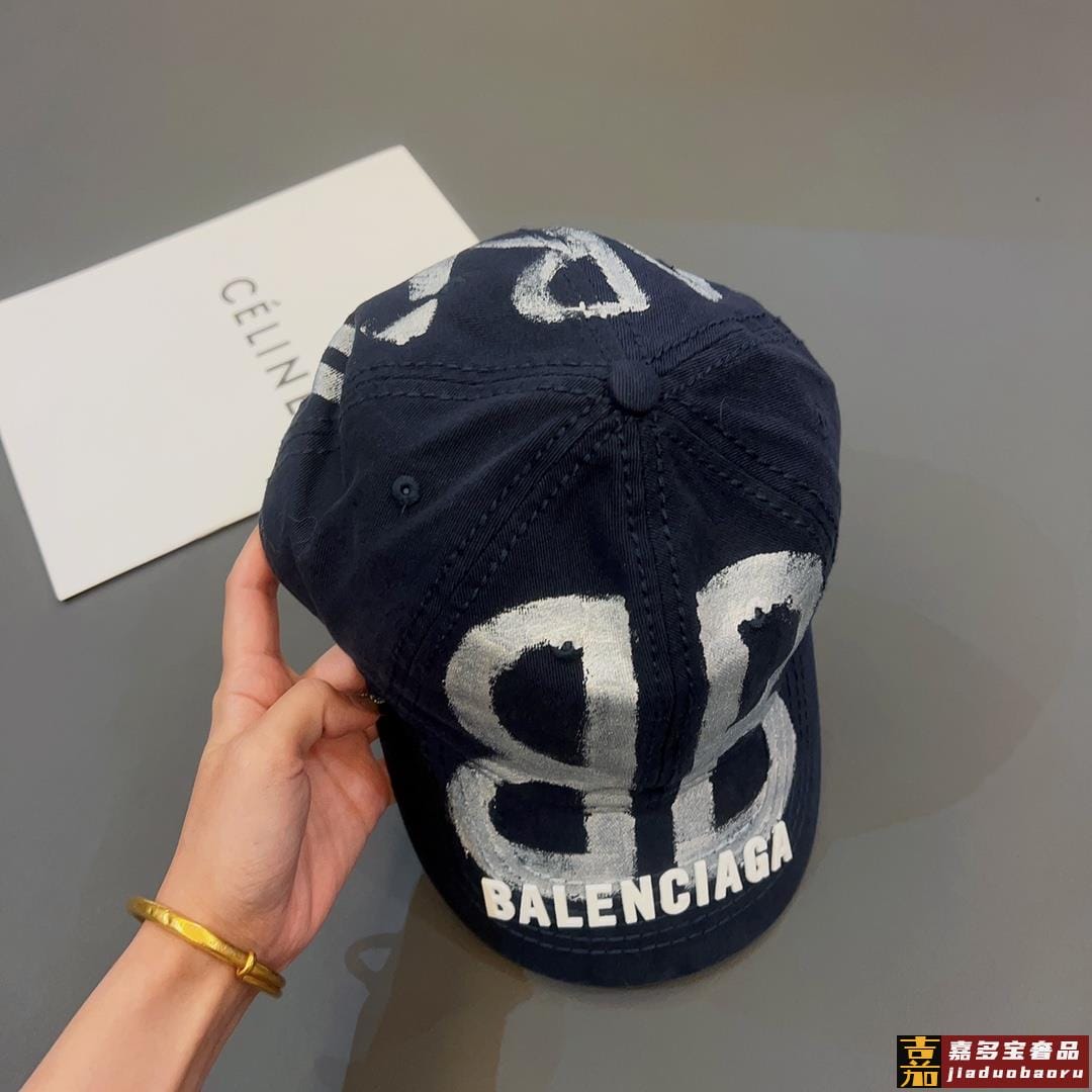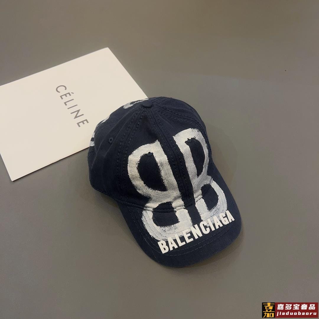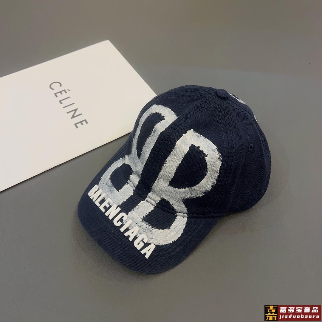 特巴黎世家喷印棒球帽鸭舌棒球帽个性涂鸦帽檐设计感十足时尚男女同款
