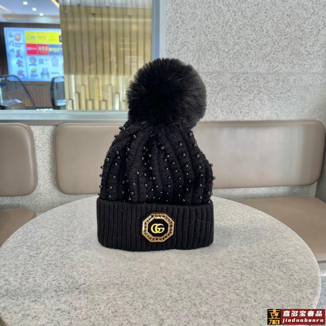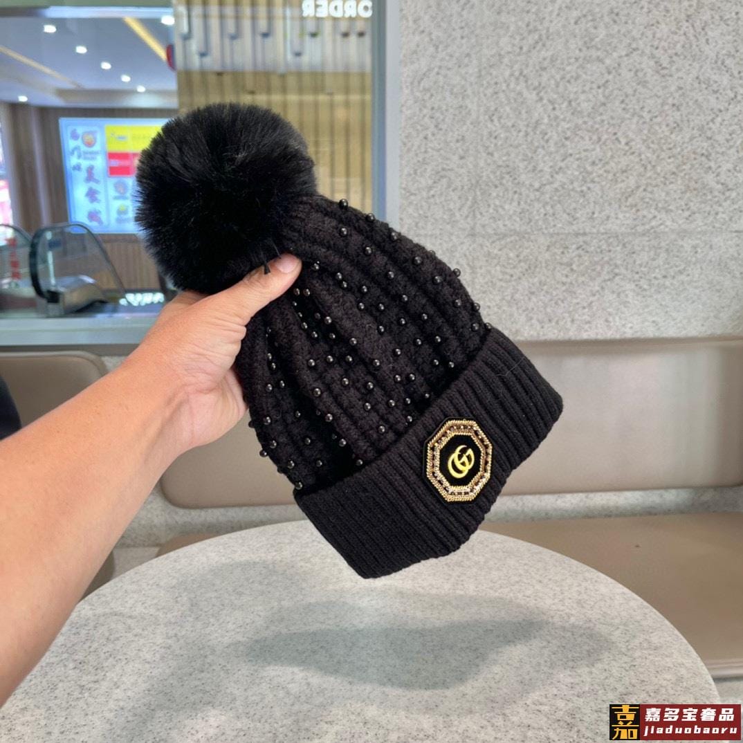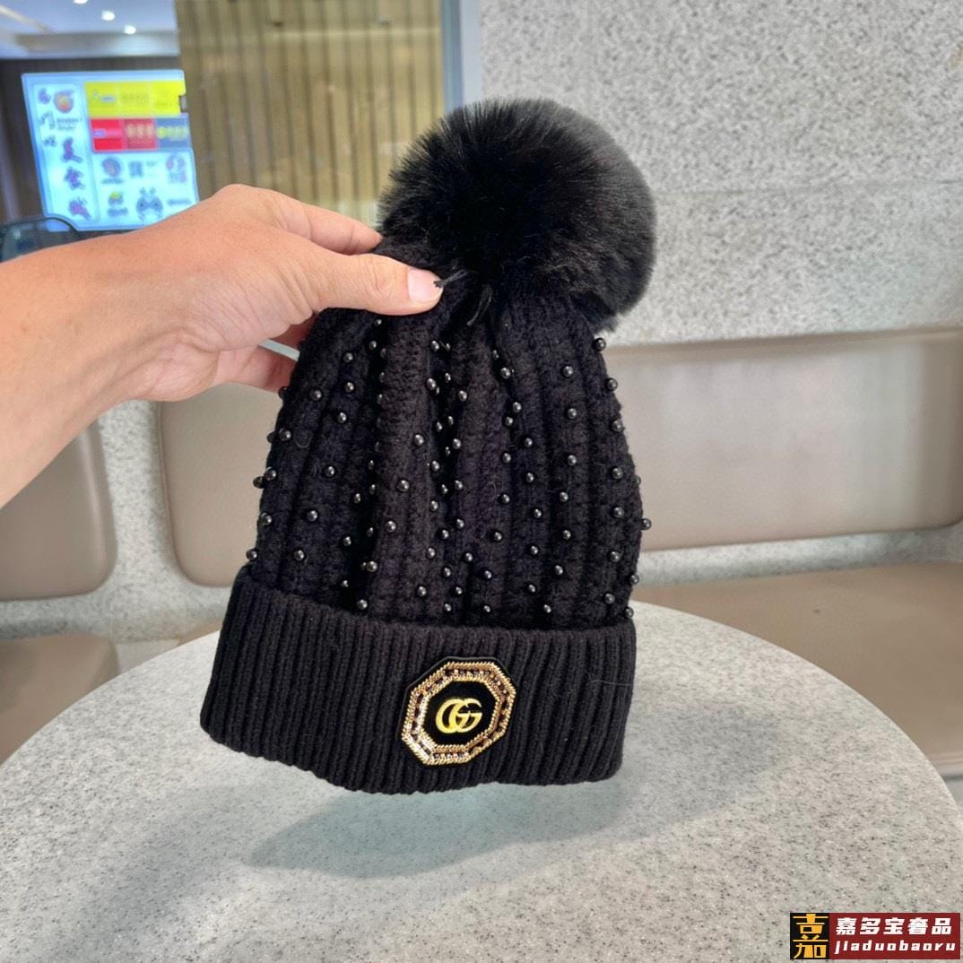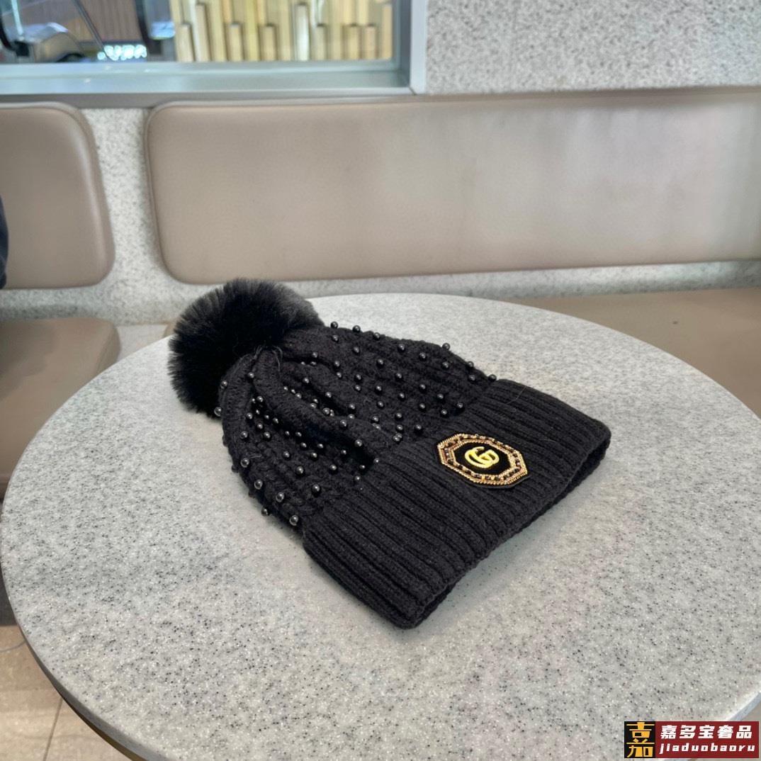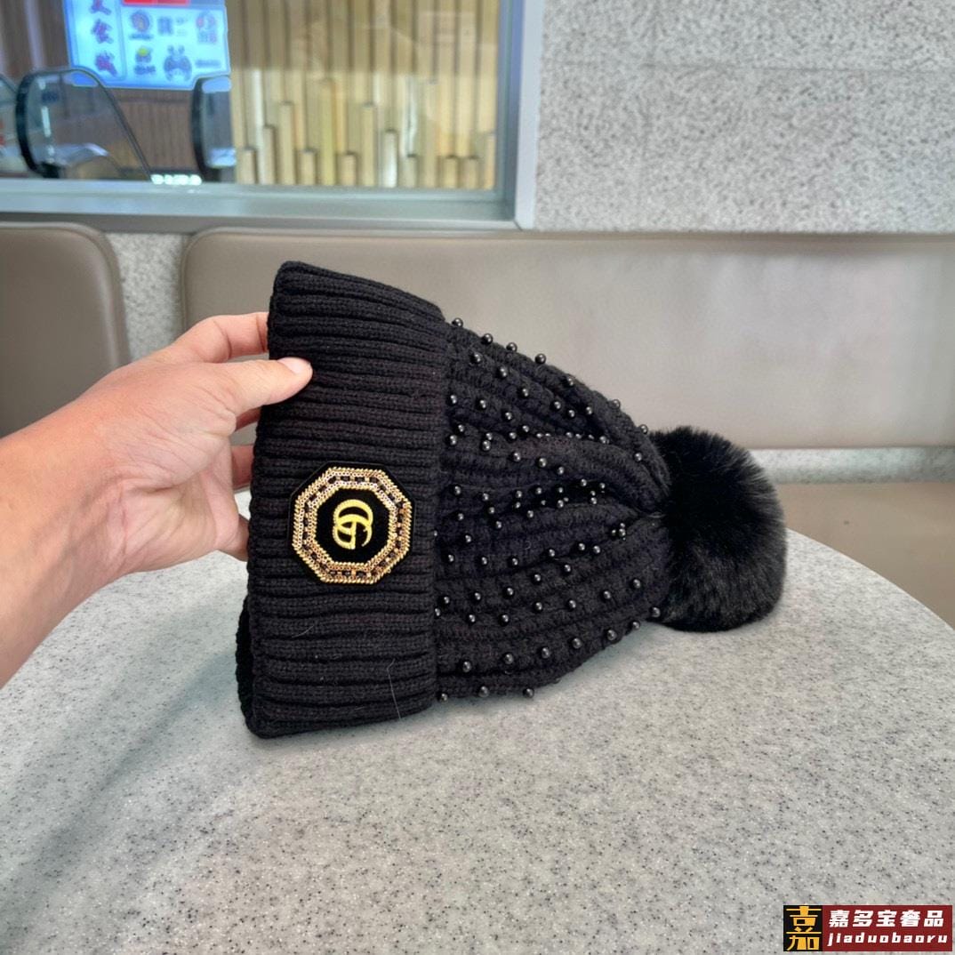 巴宝莉秋冬新款珍珠针织毛线帽欧美大牌范儿男女通用晴纶面料 <
