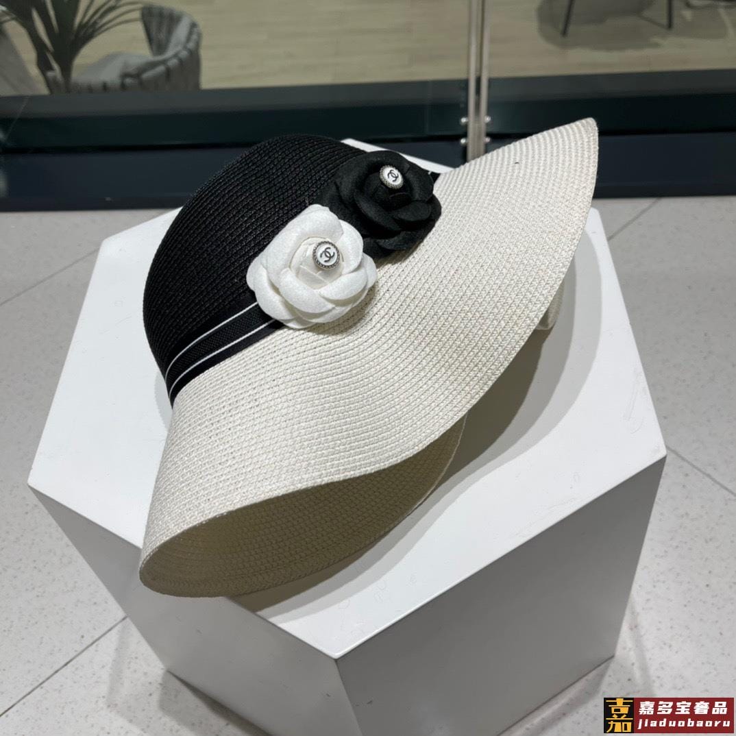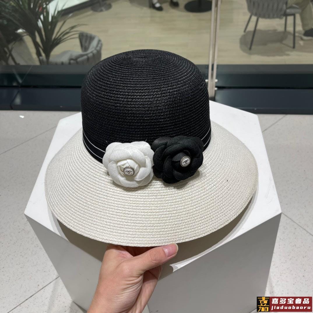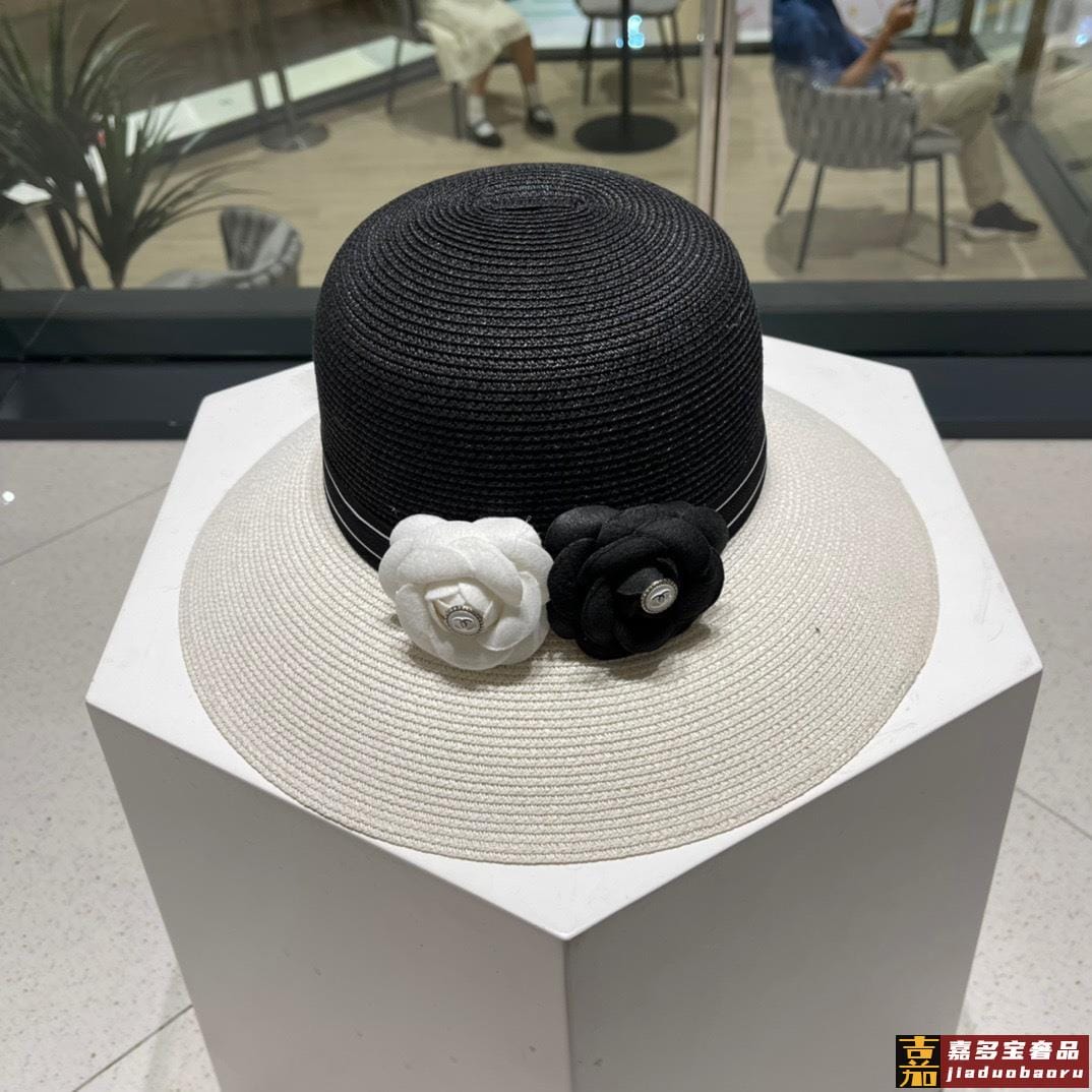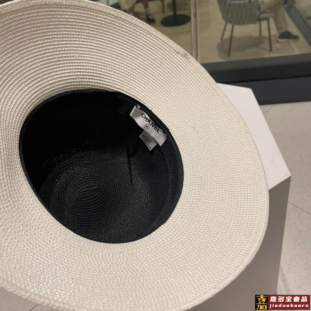香奈儿新款草编平顶遮阳草帽盆帽沙滩风简约大方百搭单品出街首选