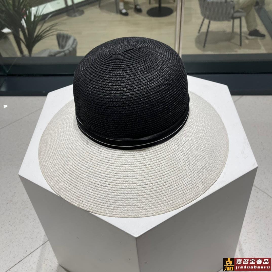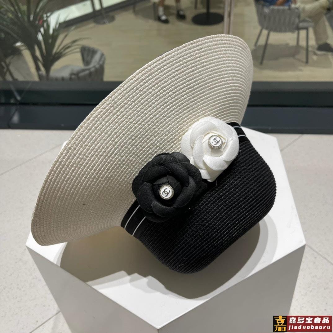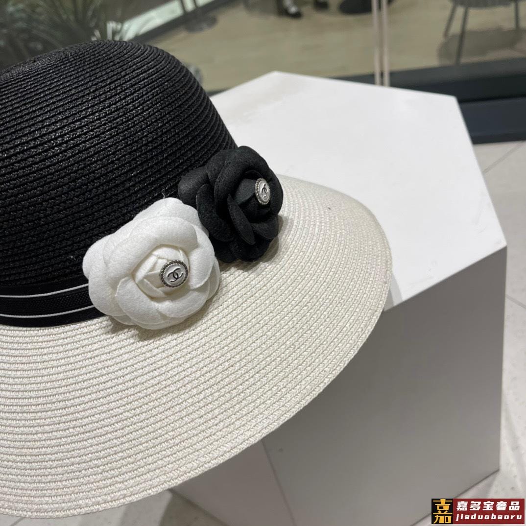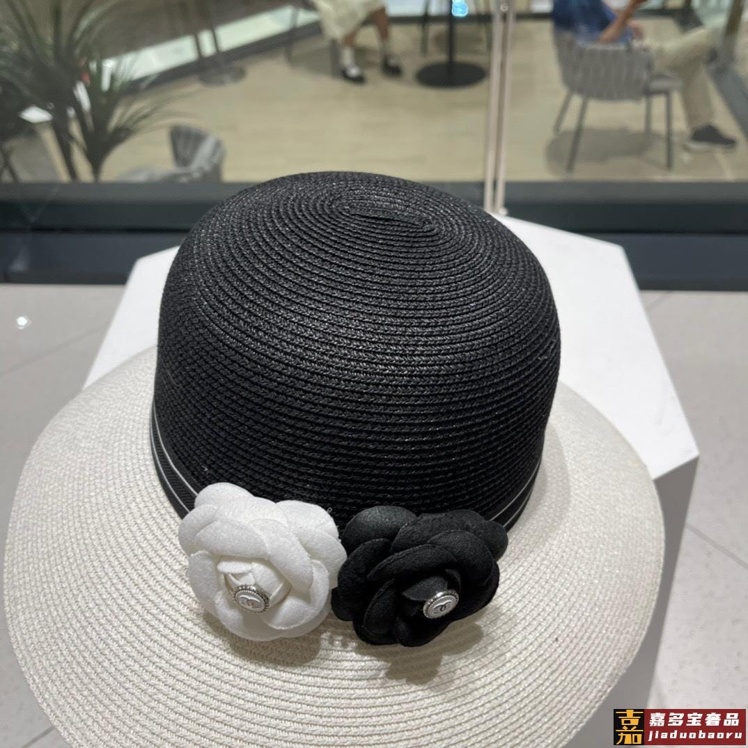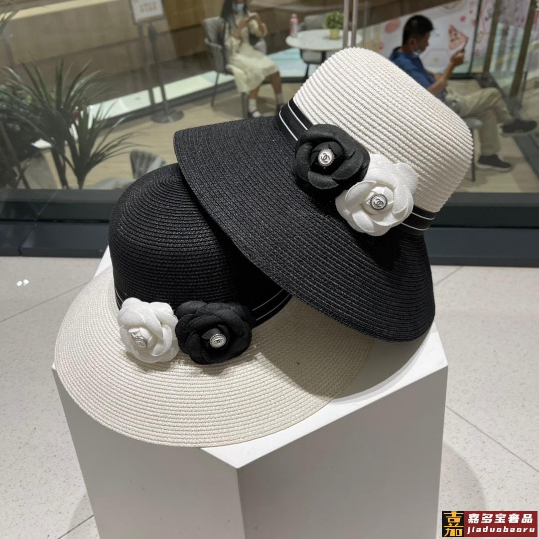香奈儿新款草编平顶遮阳草帽盆帽沙滩风简约大方百搭单品出街首选