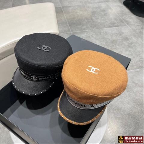 香奈儿秋冬新款平顶帽百分百羊毛面料羊毛礼帽名媛风头围