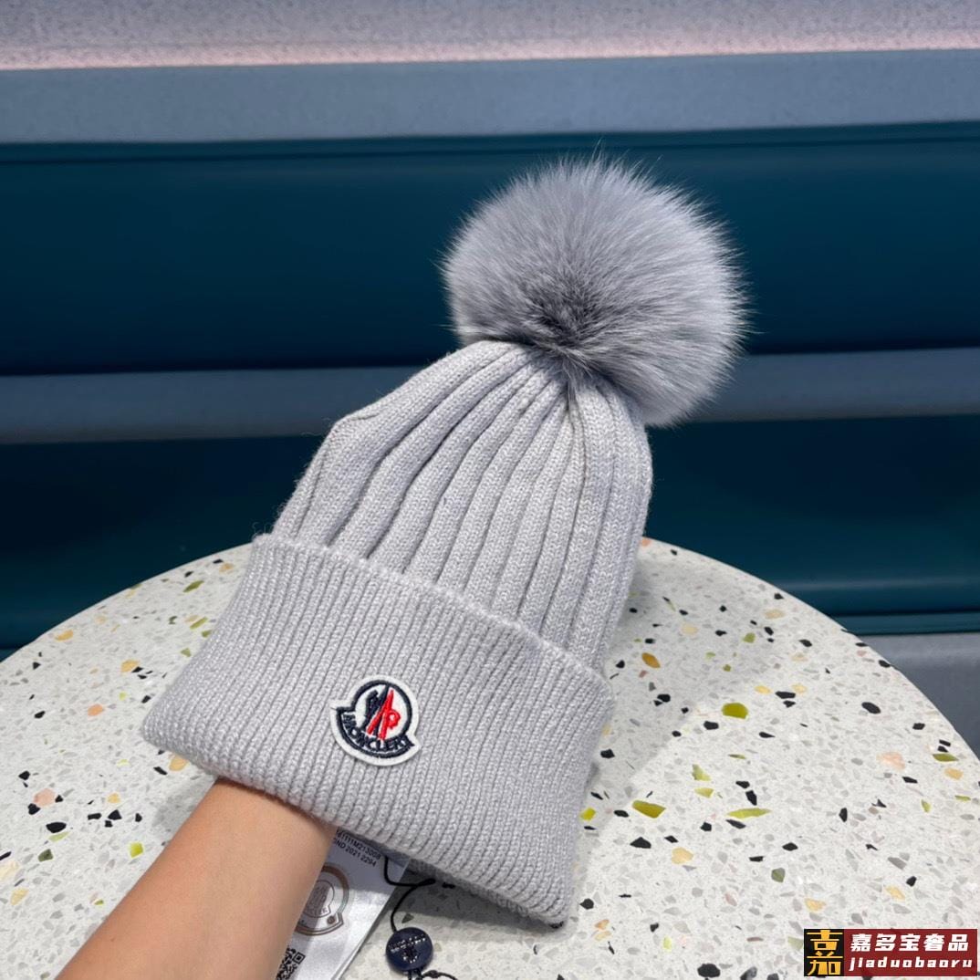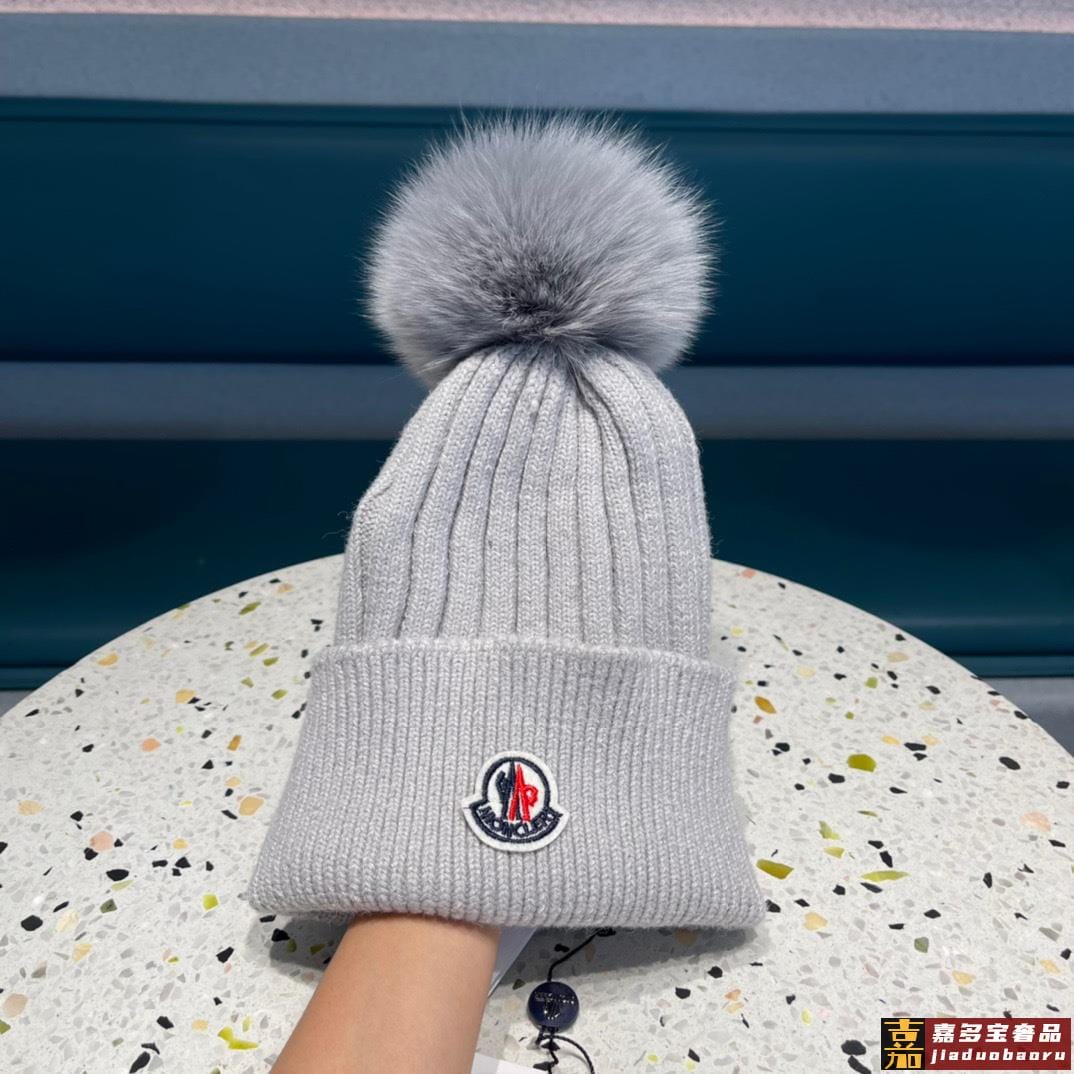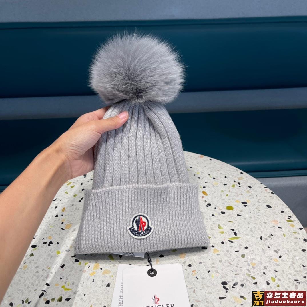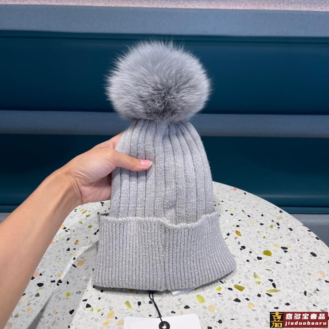 蒙口秋冬最新款情侣款针织毛线帽超大个真毛毛球专柜在售款特别渠