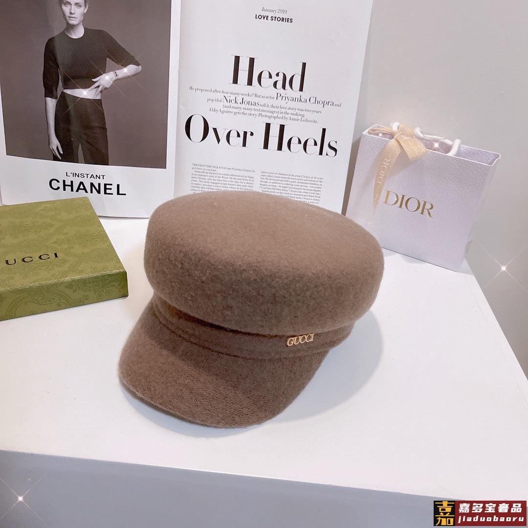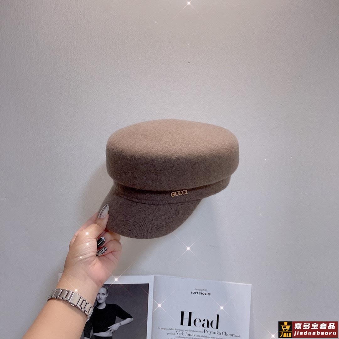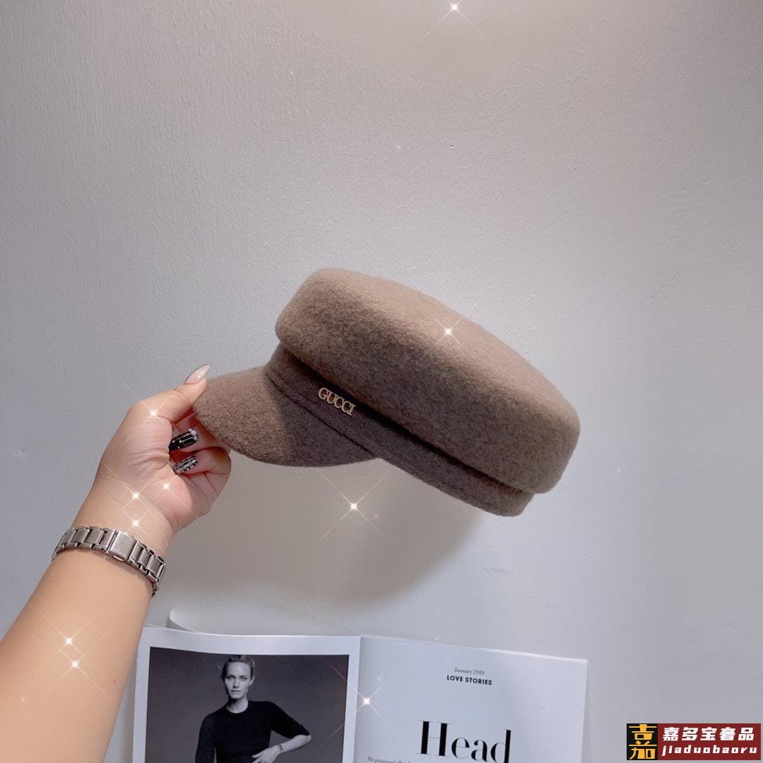 羊毛呢子军帽简约轻奢大牌风简约百搭气质款保暖凹造型必备单品粉