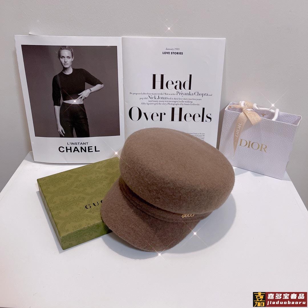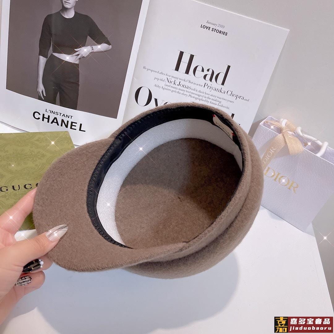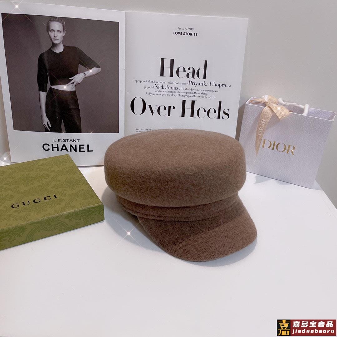 香奈儿秋冬新款平顶帽百分百羊毛面料羊毛礼帽名媛风头围