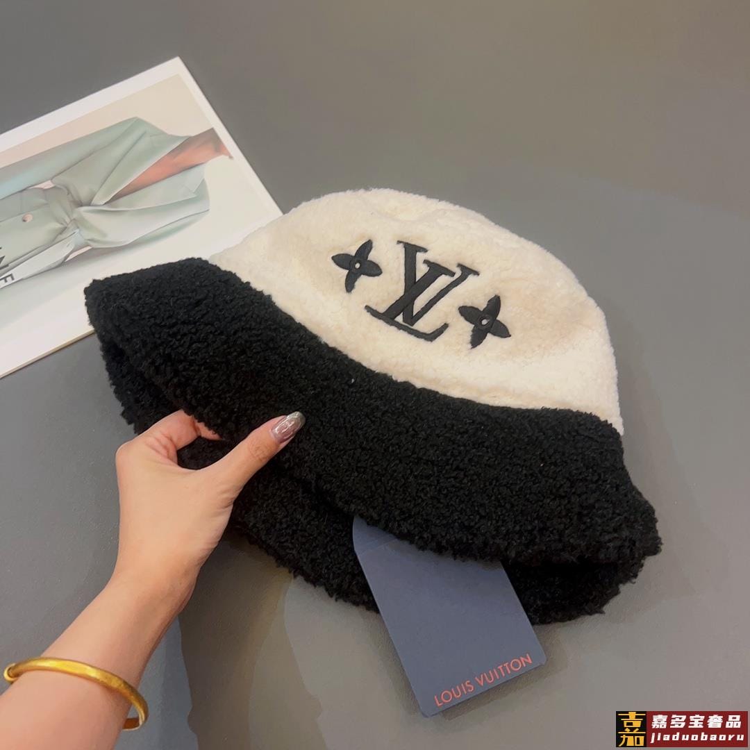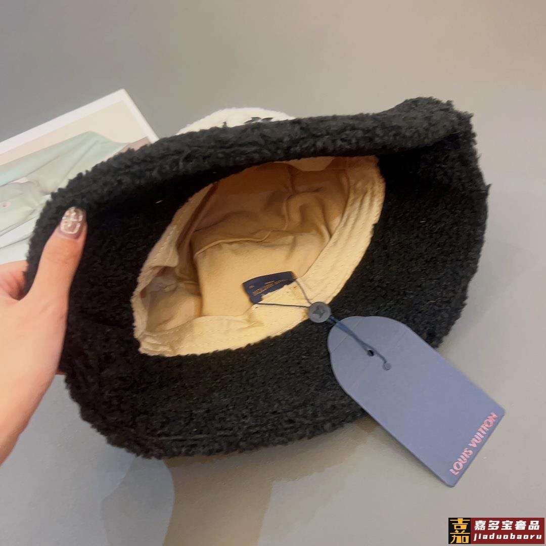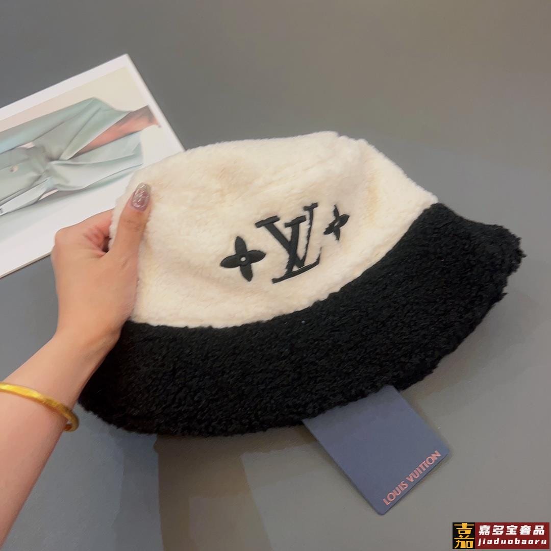路易威登爆秋冬款羊羔毛保暖帽简约可折叠渔夫帽细节做工都很精致