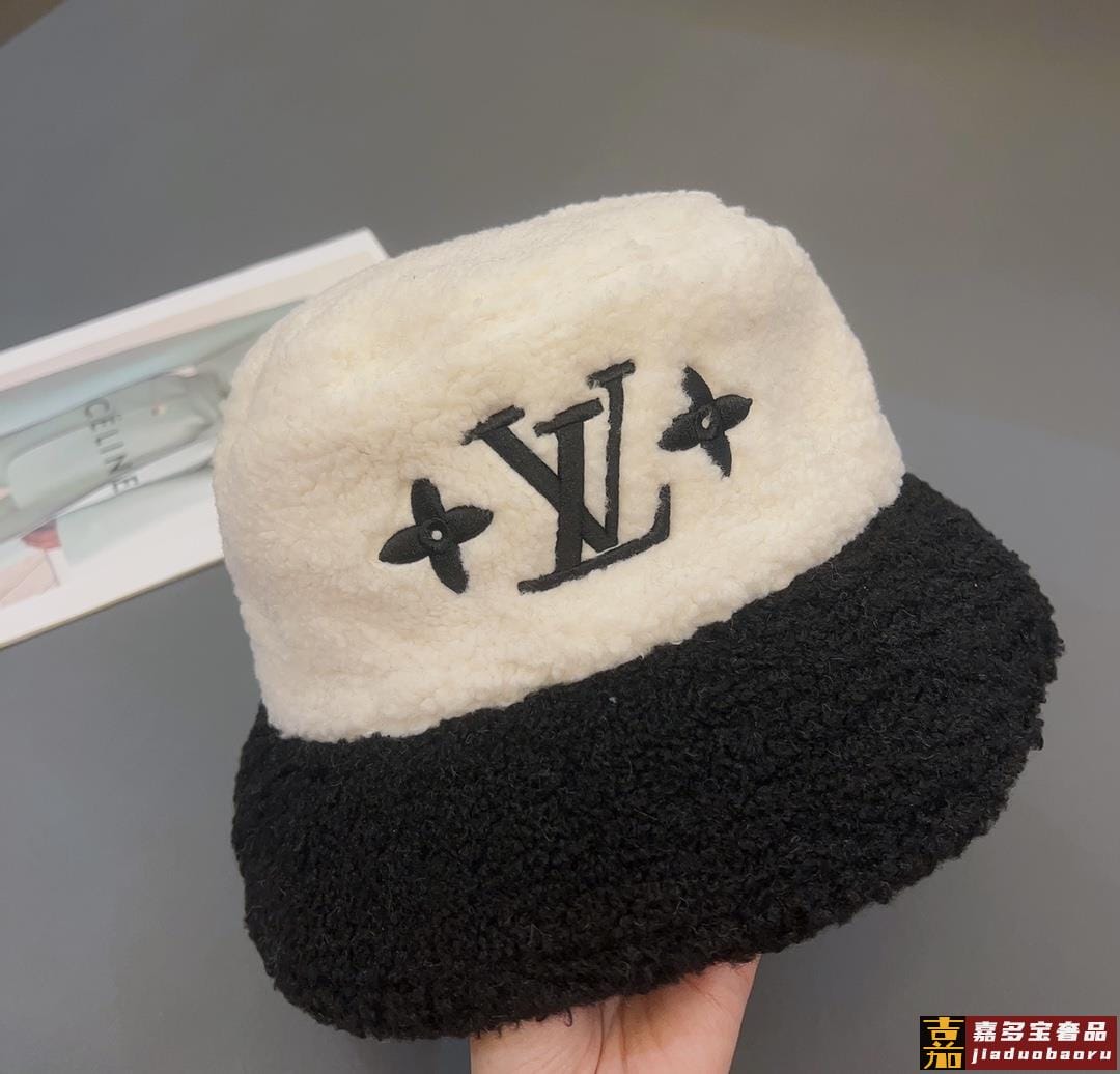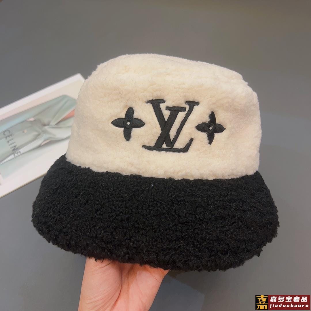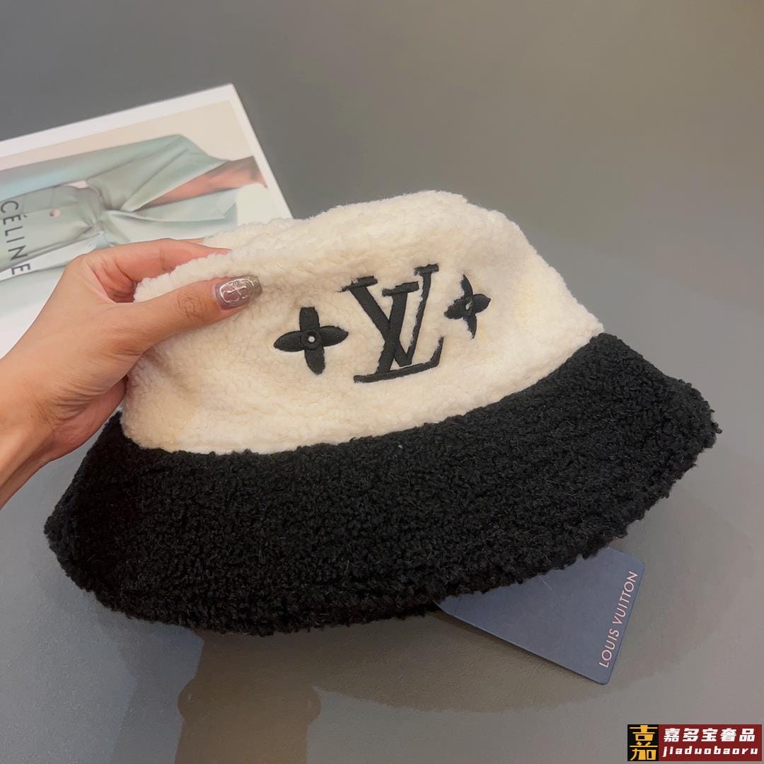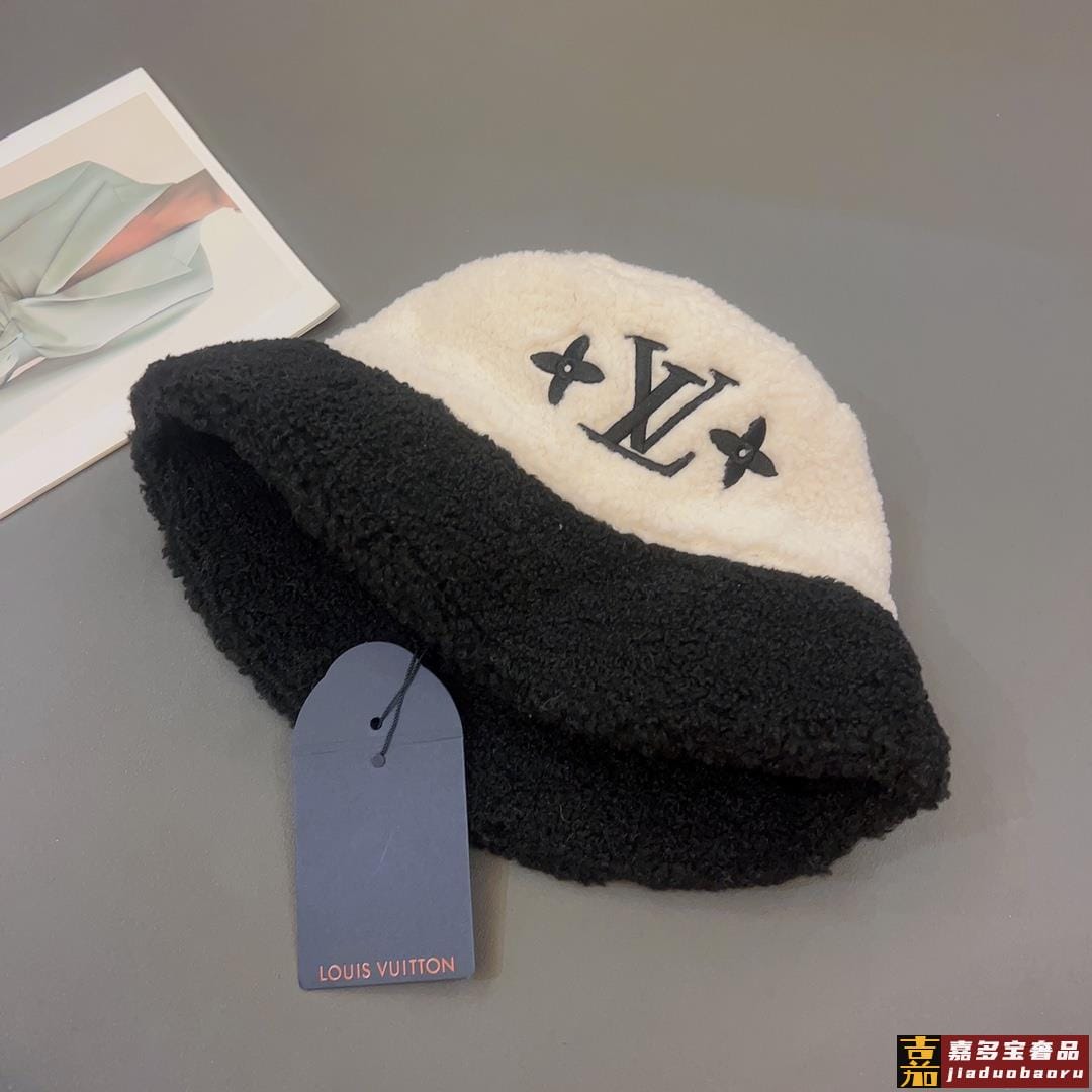 路易威登爆秋冬款羊羔毛保暖帽简约可折叠渔夫帽细节做工都很精致