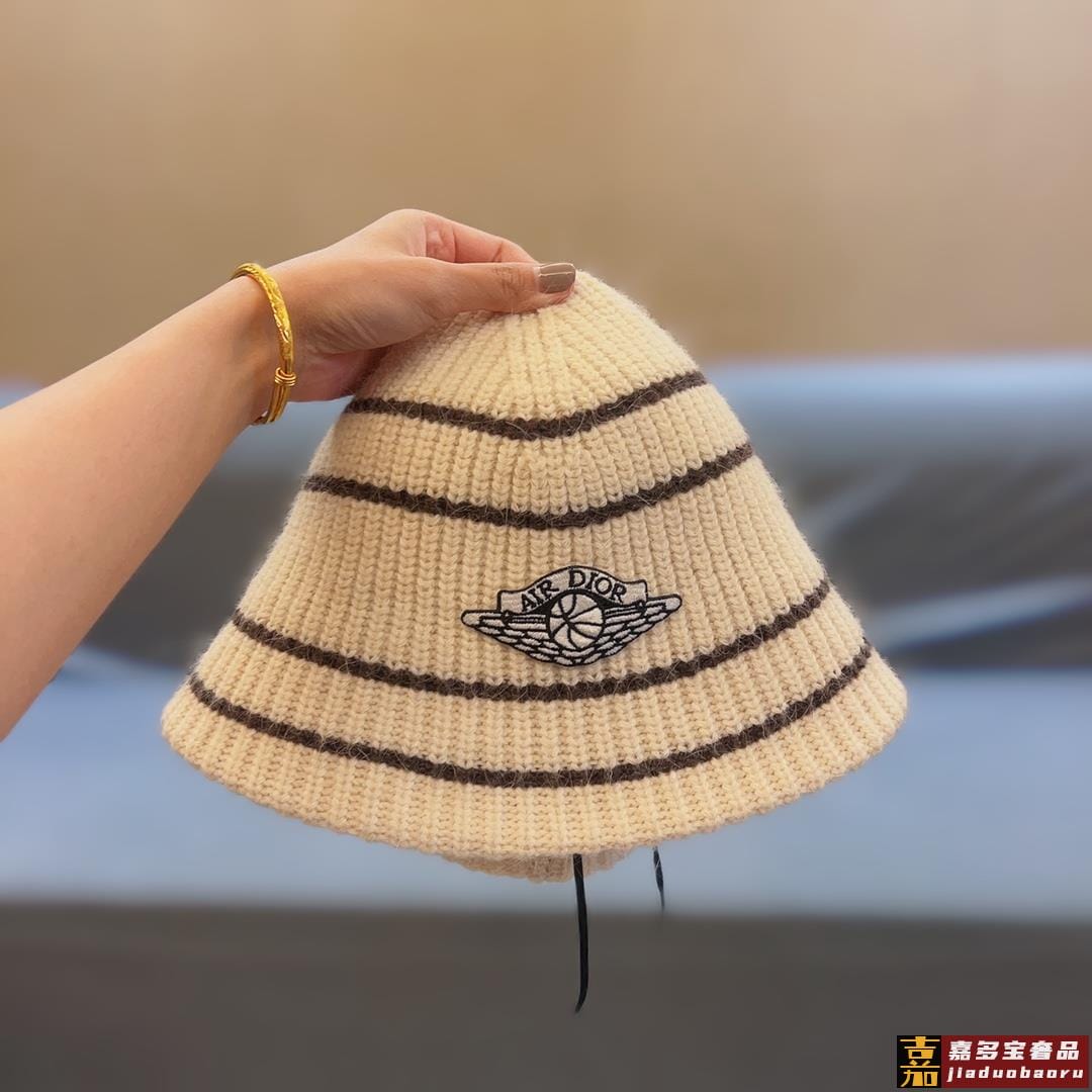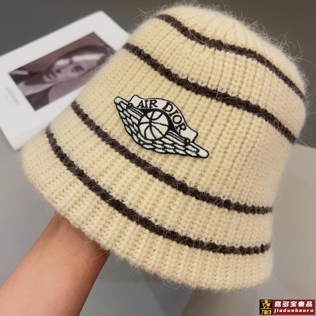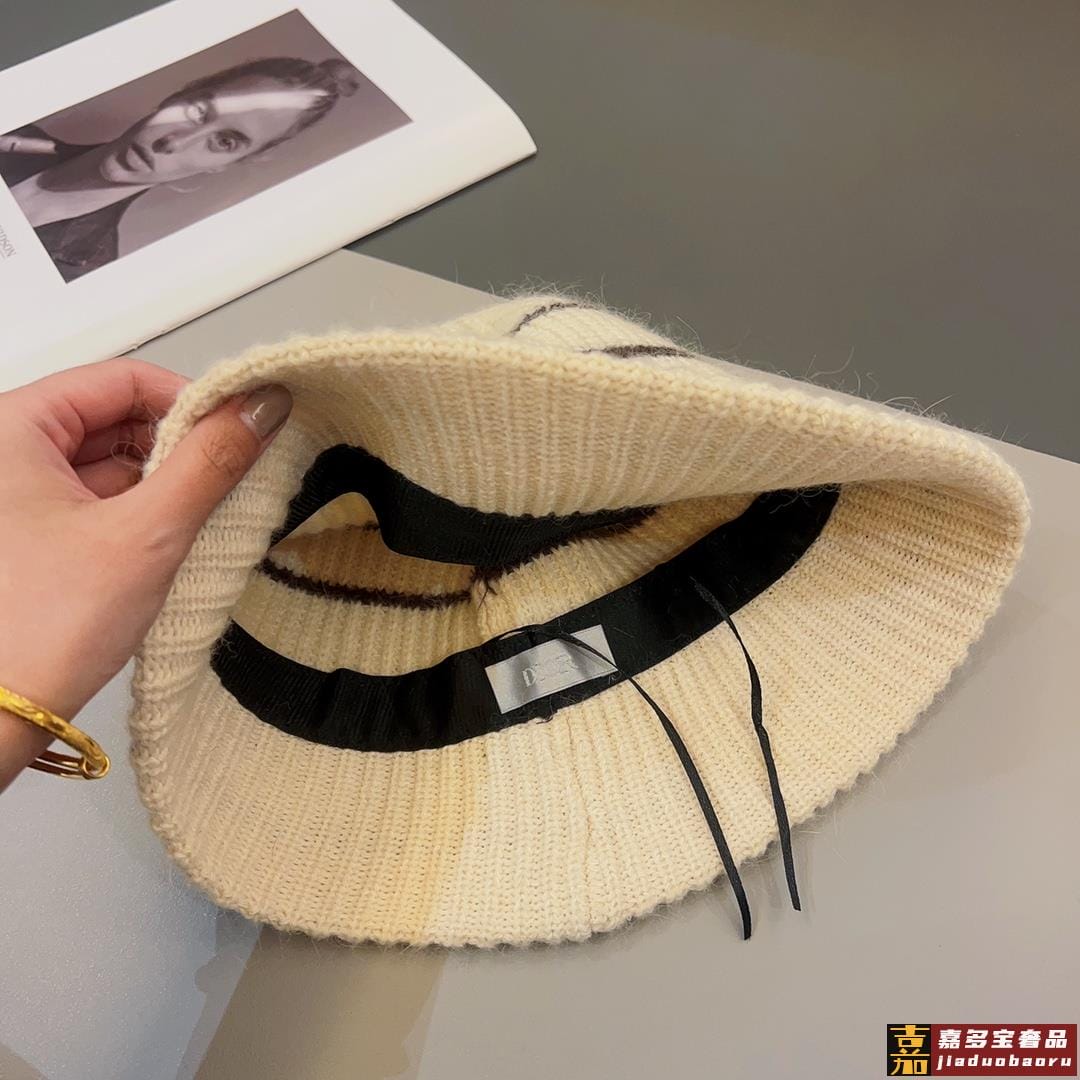 迪奥秋冬造型神器时髦保暖秋冬新款徽标提花针织水桶帽盆帽