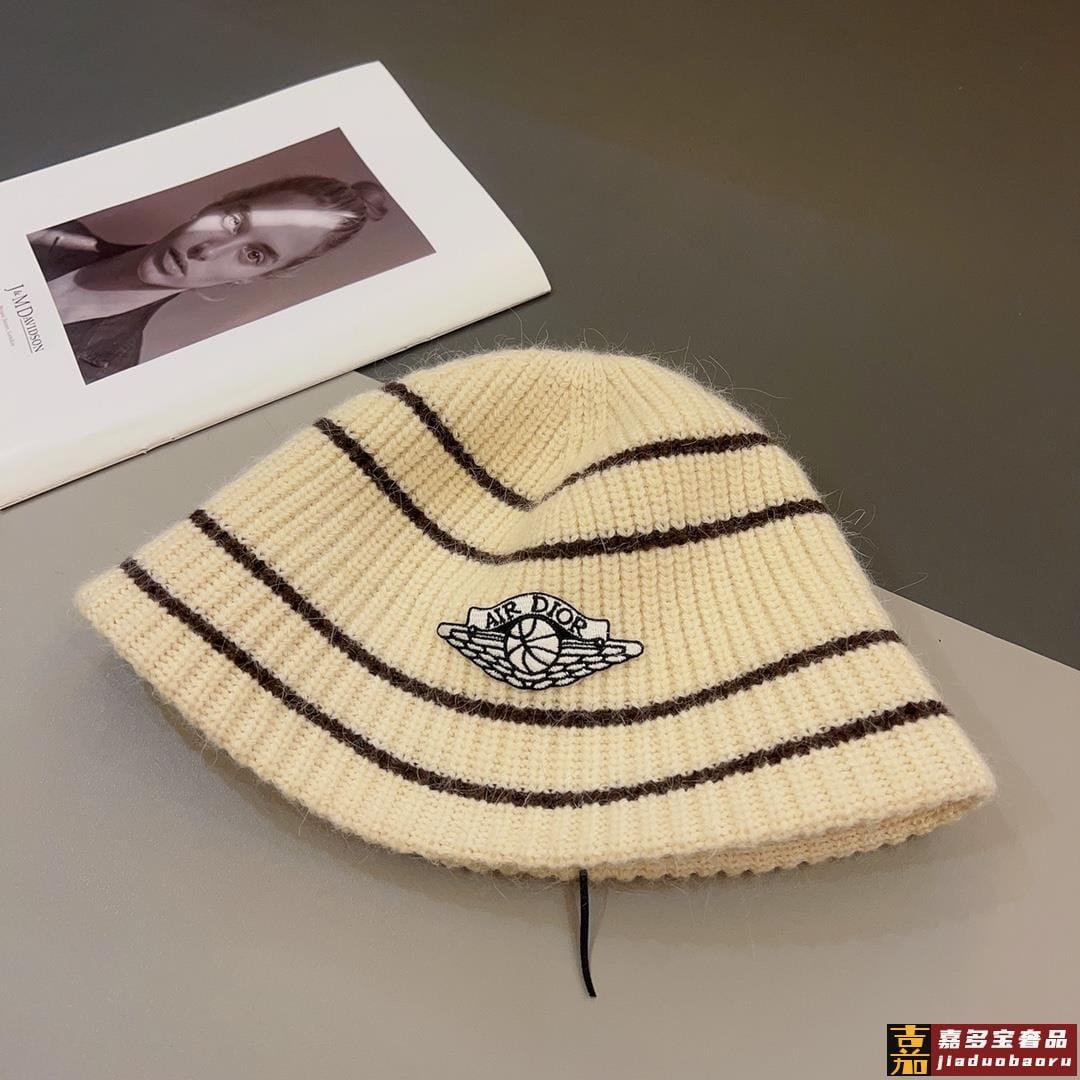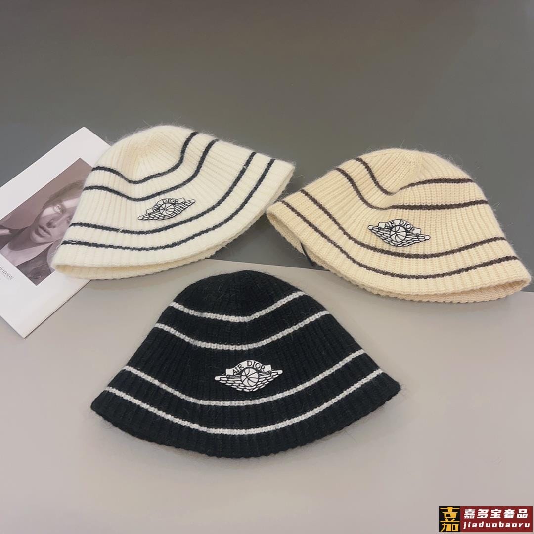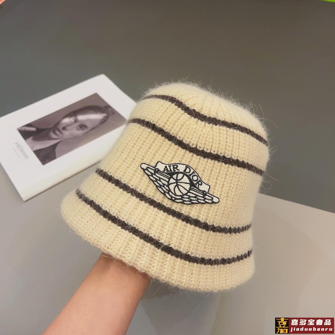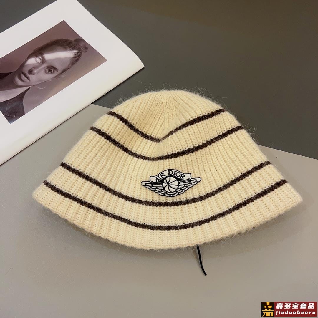迪奥秋冬造型神器时髦保暖秋冬新款徽标提花针织水桶帽盆帽