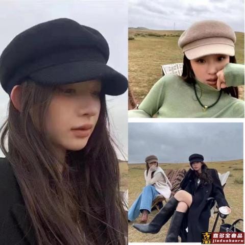 羊毛呢子军帽简约轻奢大牌风简约百搭气质款保暖凹造型必备单品粉