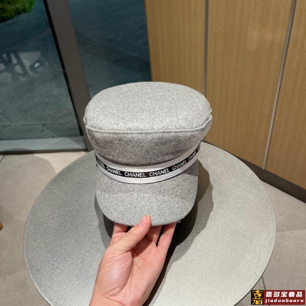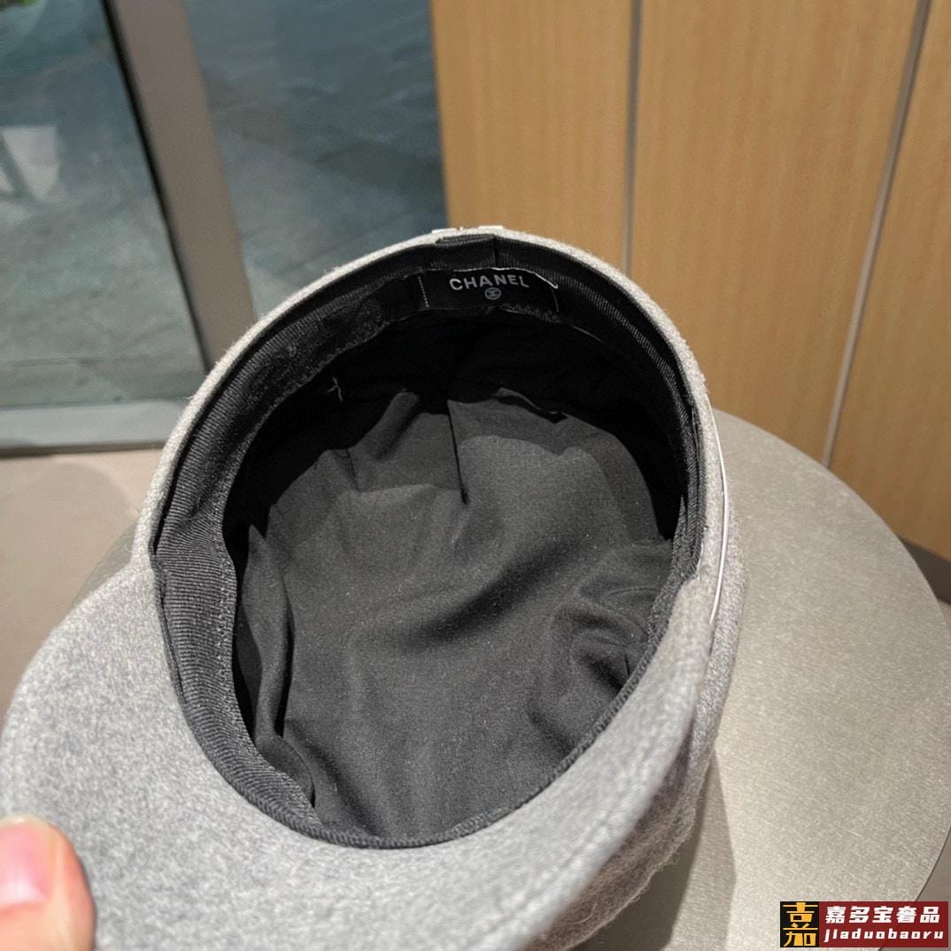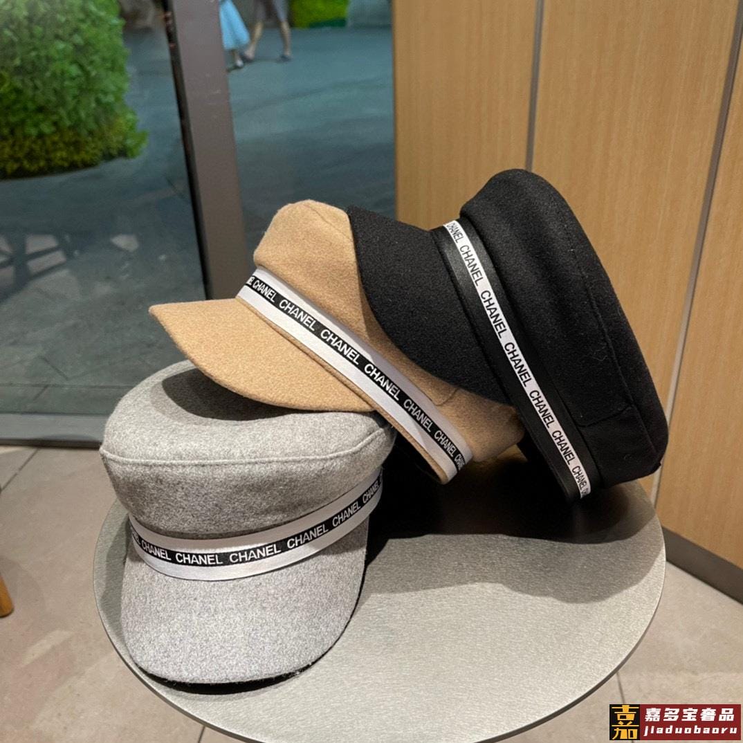 香奈儿秋冬新款鸭舌军帽网红爆款毛呢面料小香风军帽男女同款头围