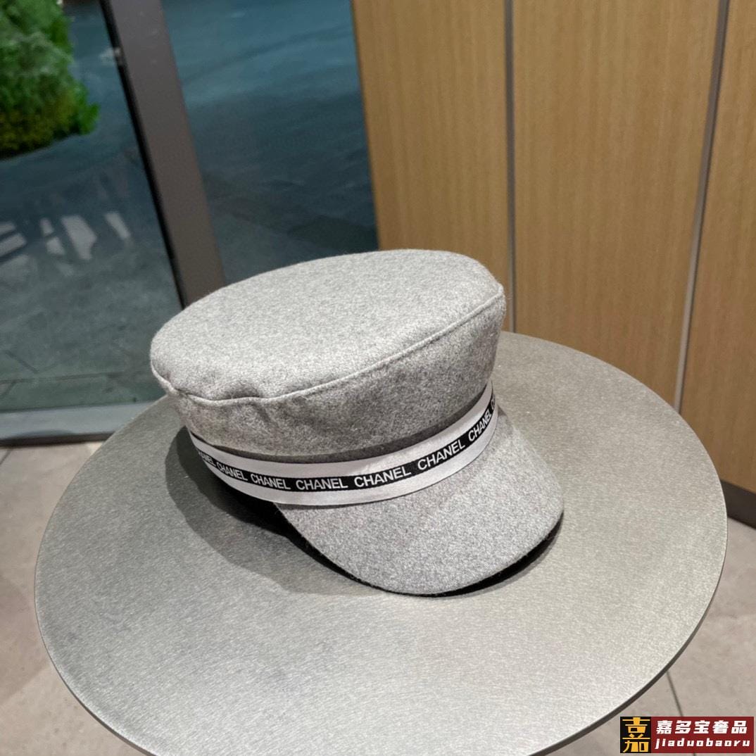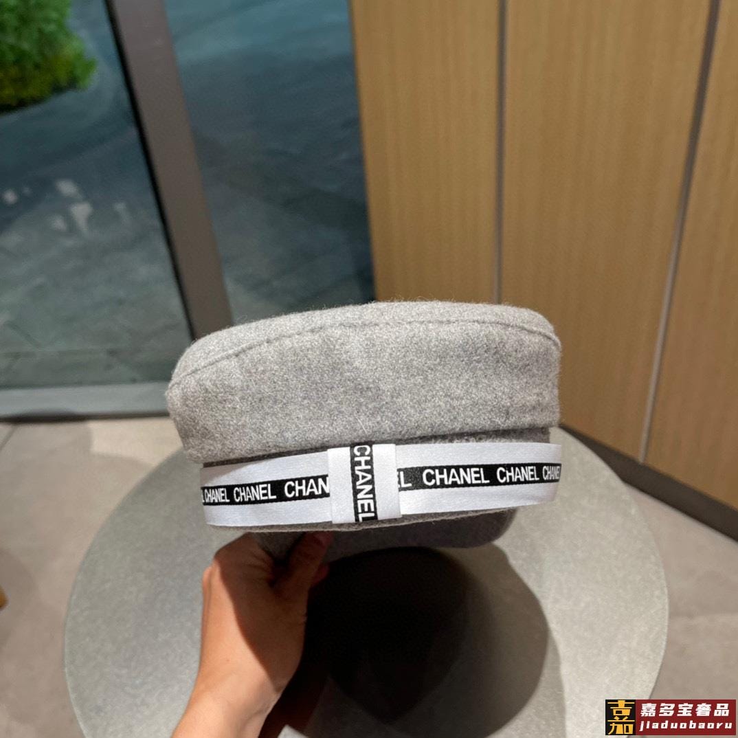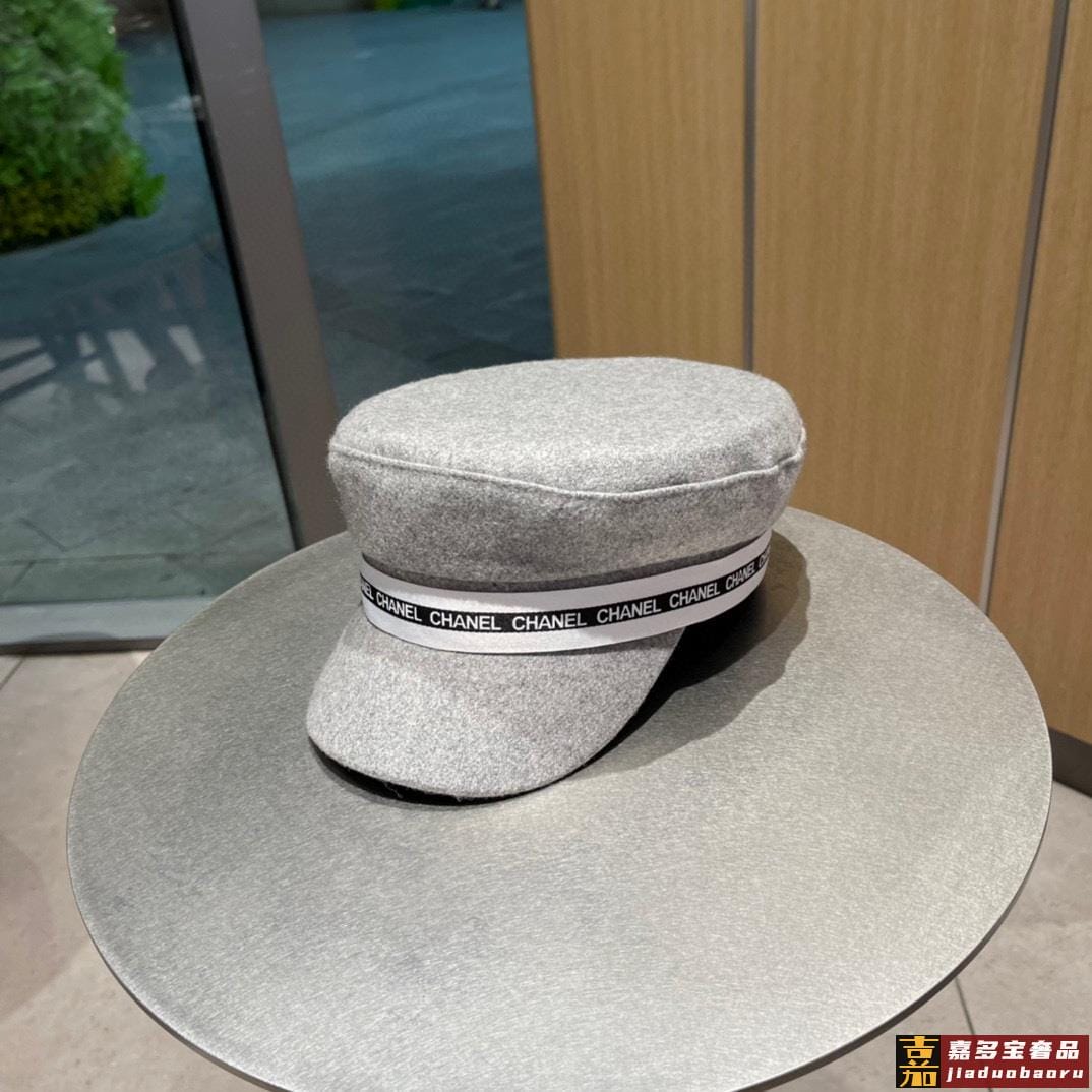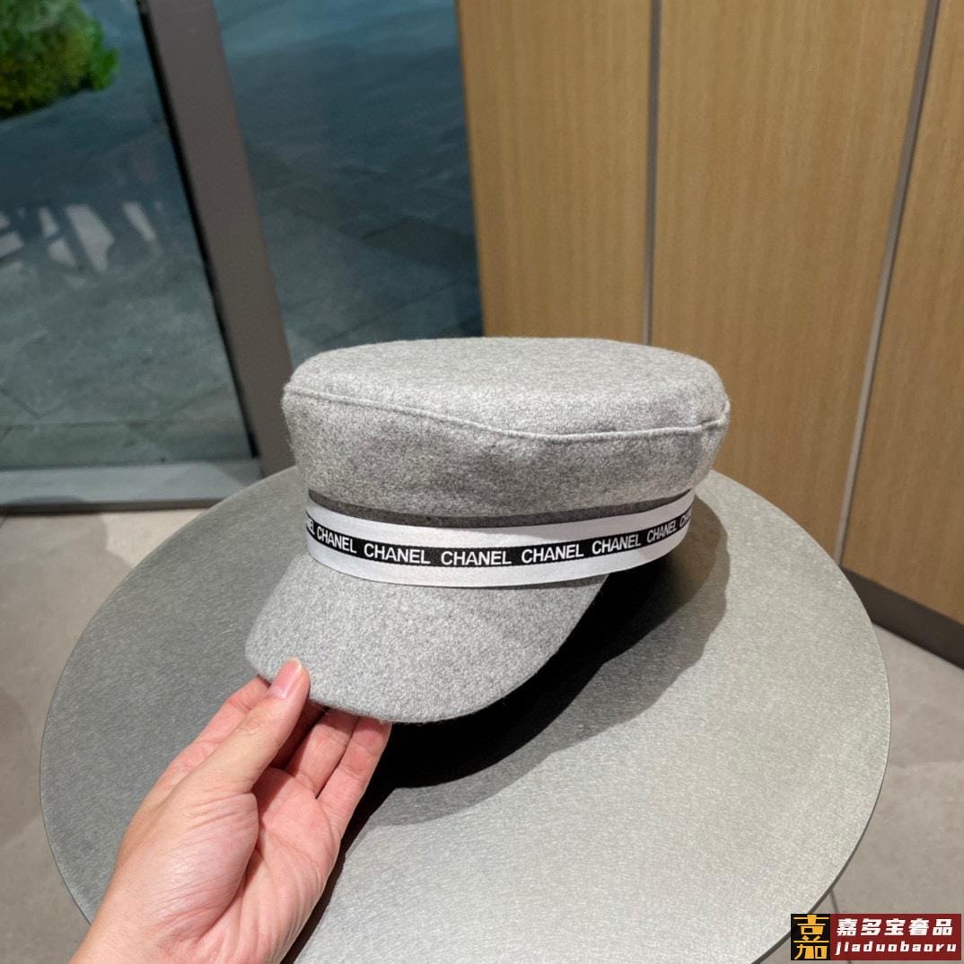 香奈儿秋冬新款鸭舌军帽网红爆款毛呢面料小香风军帽男女同款头围