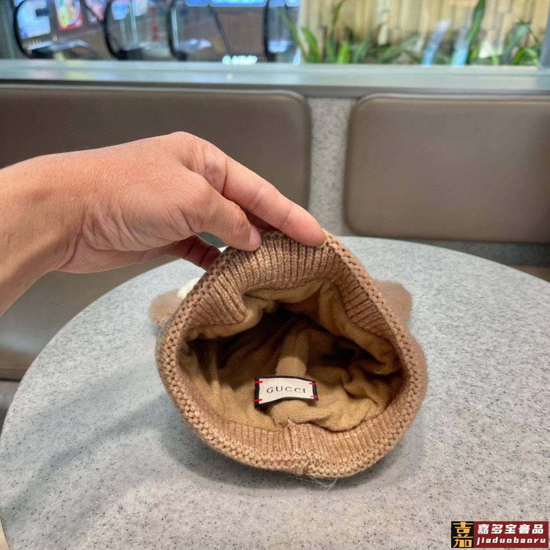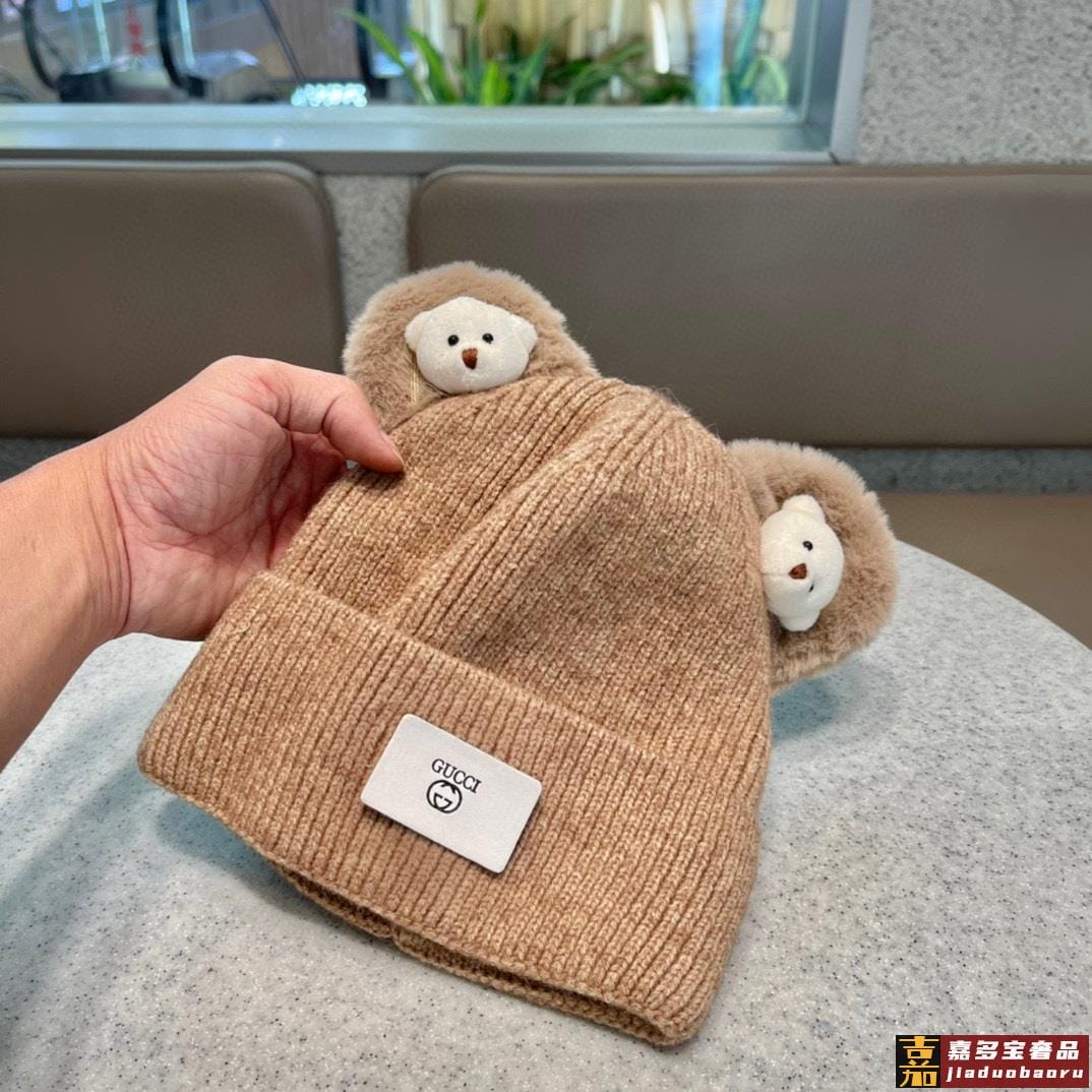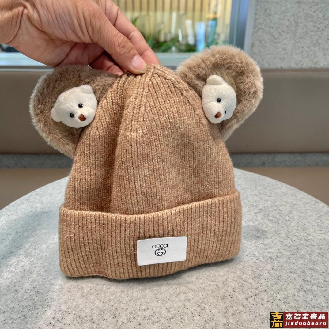 古奇秋冬新款网红卡通小熊毛线帽甜美可爱日系针织百搭亲子套头帽