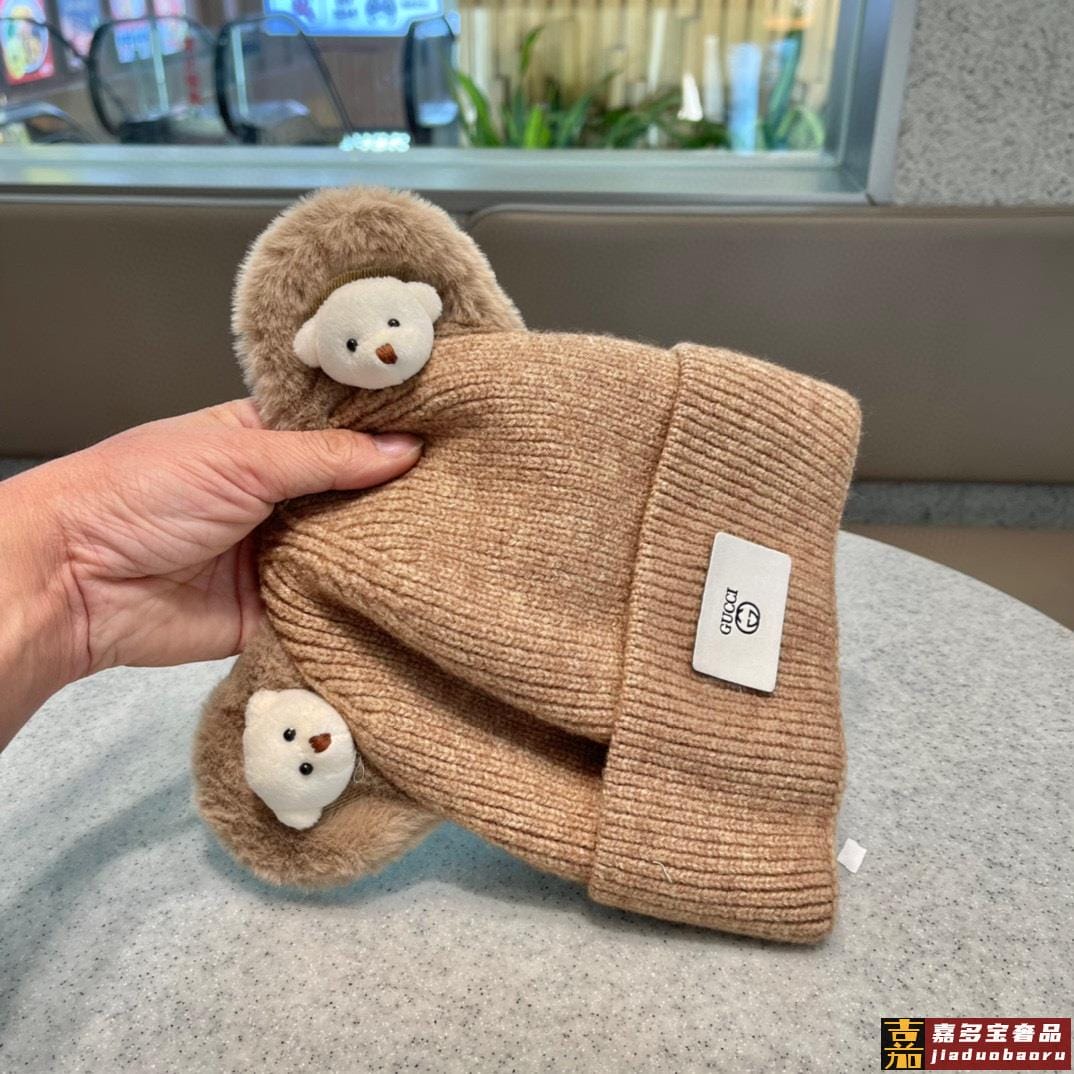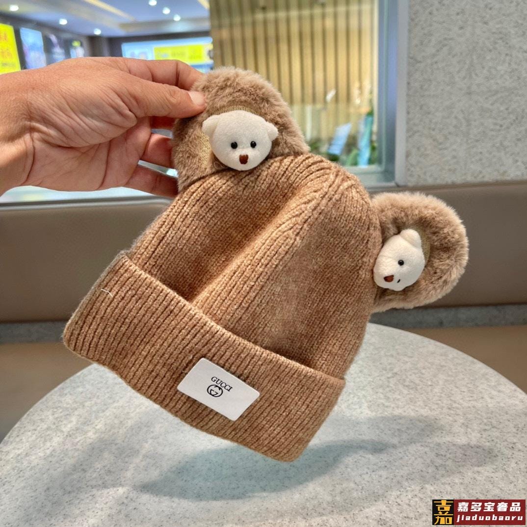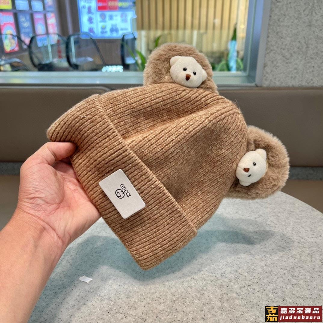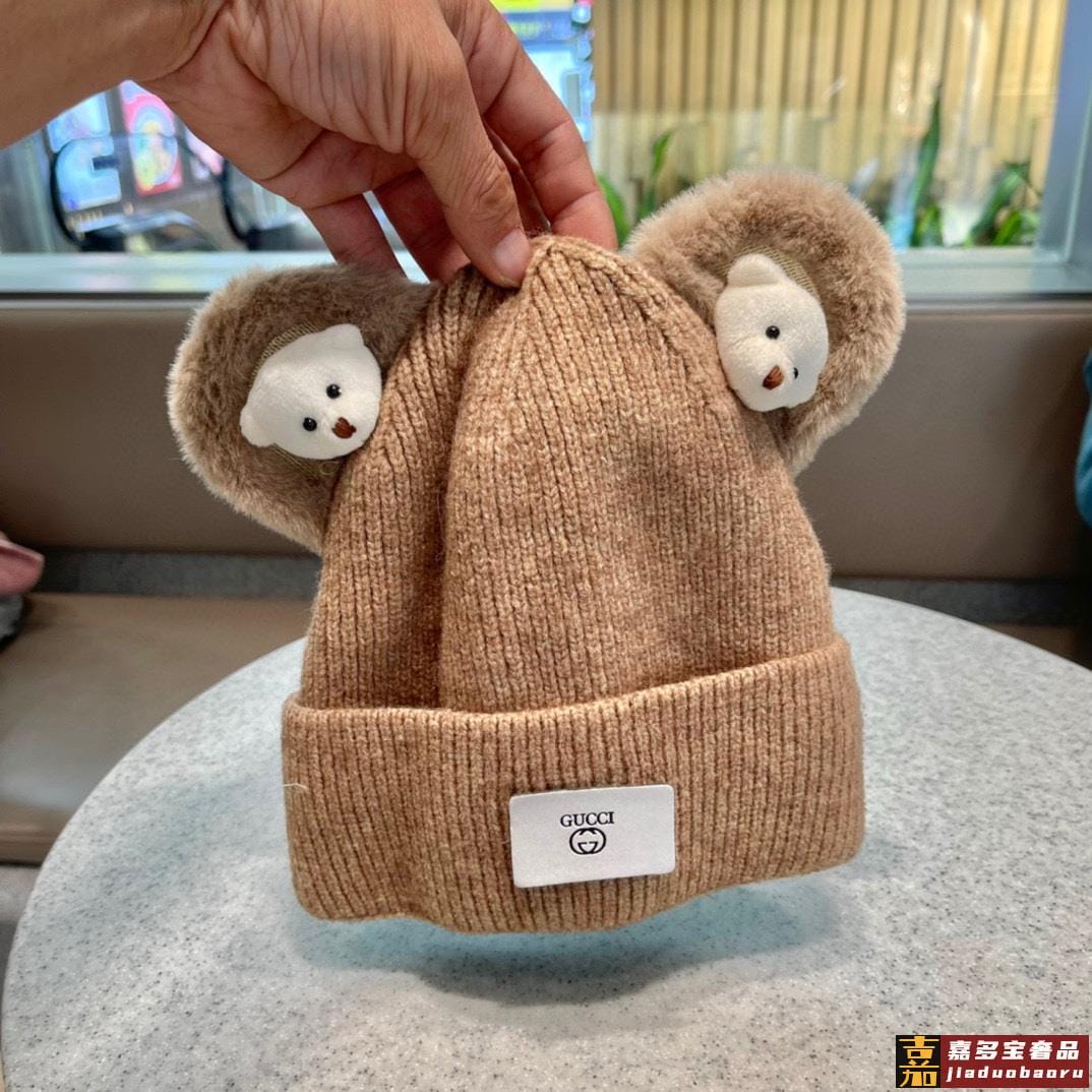 古奇新款秋冬新款网红卡通小熊毛线帽甜美可爱日系针织百搭亲子套