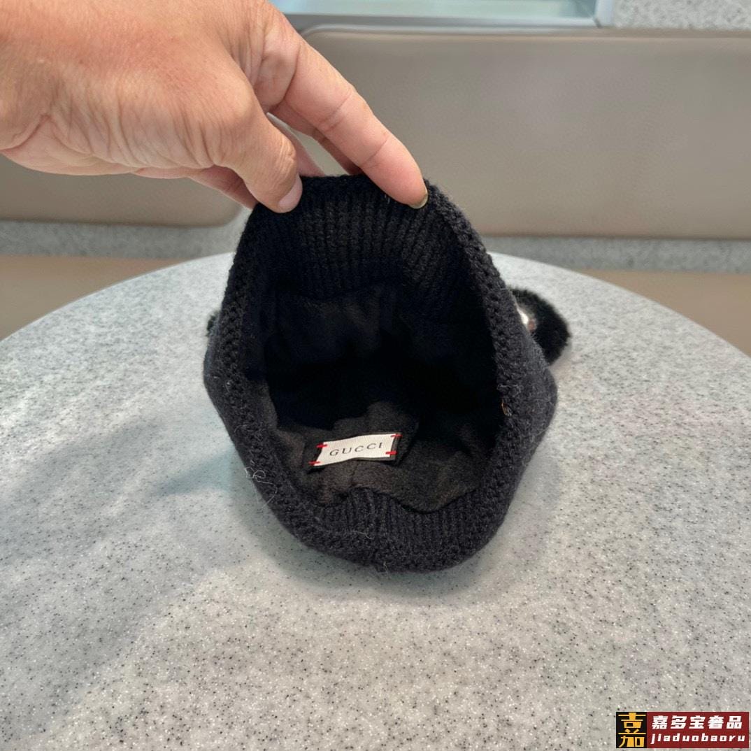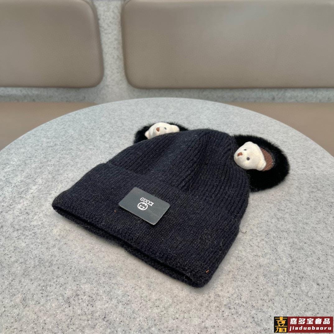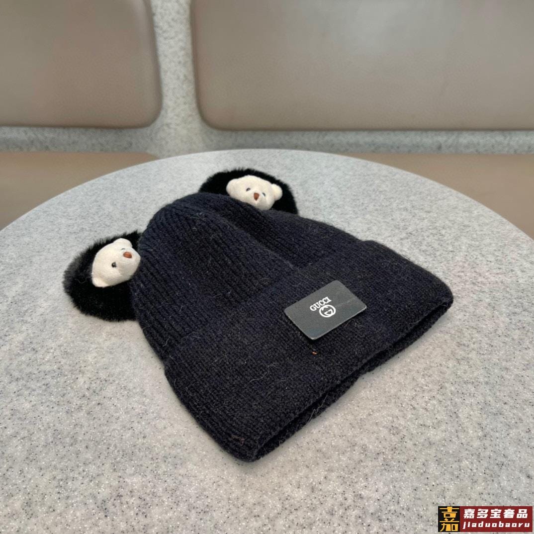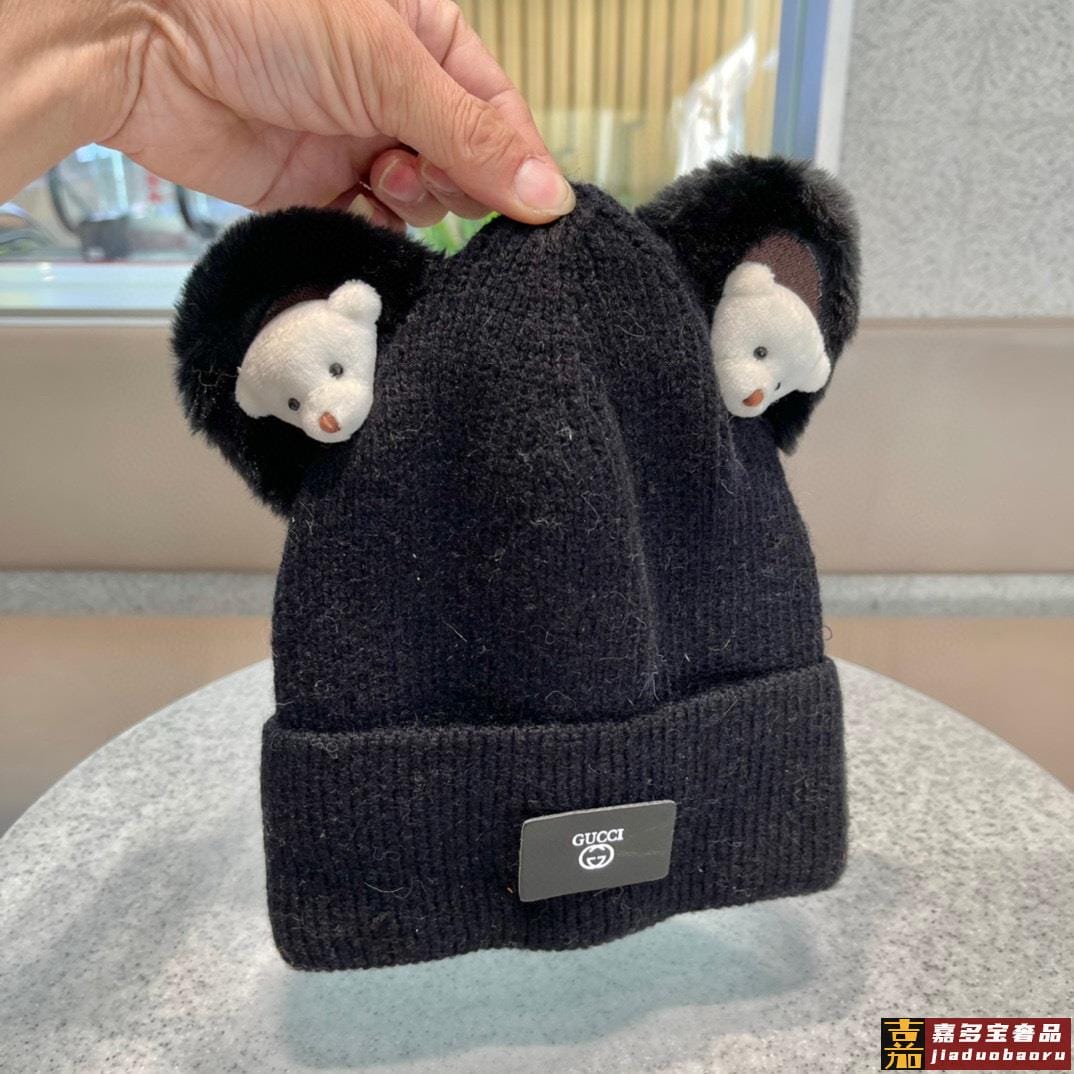 古奇秋冬新款网红卡通小熊毛线帽甜美可爱日系针织百搭亲子套头帽