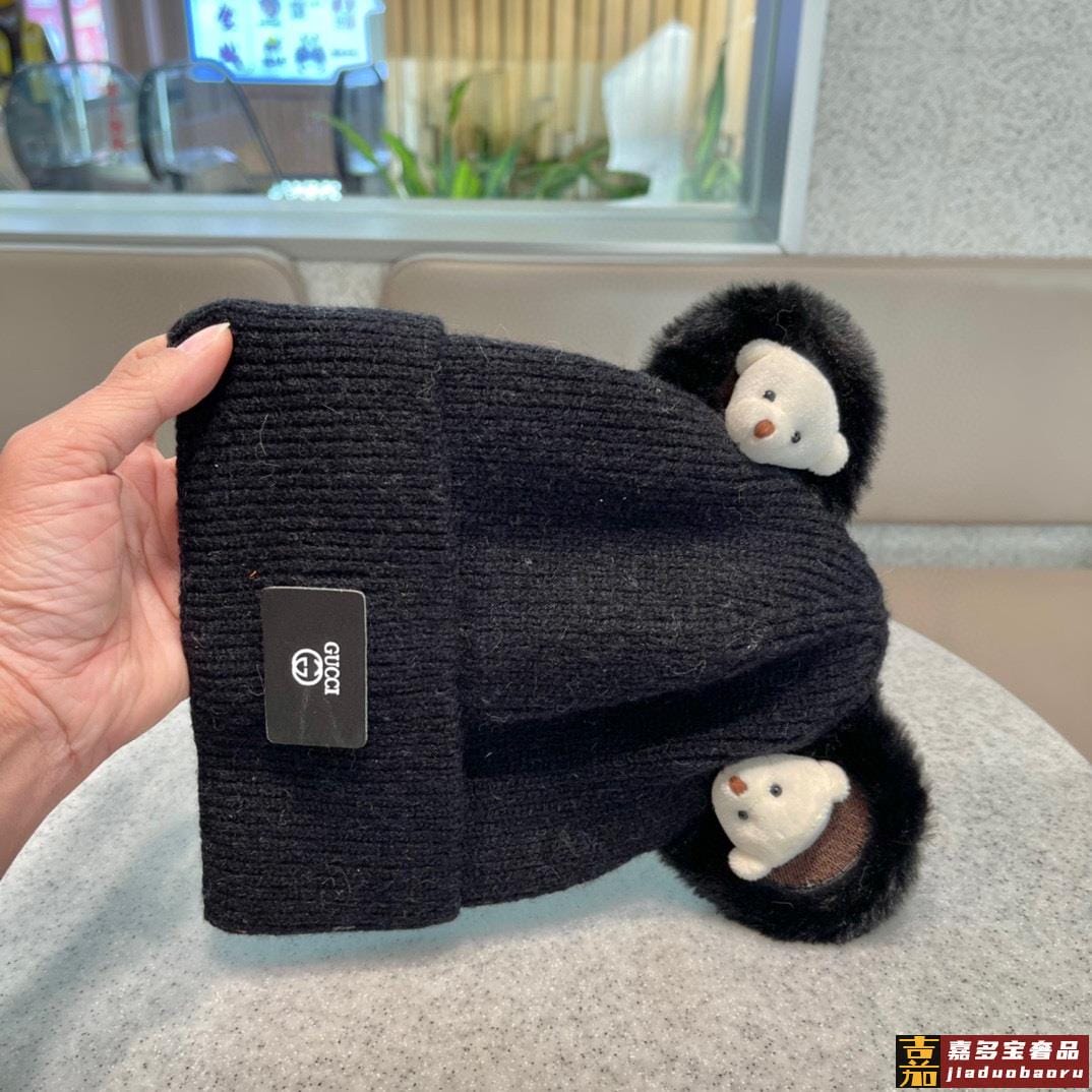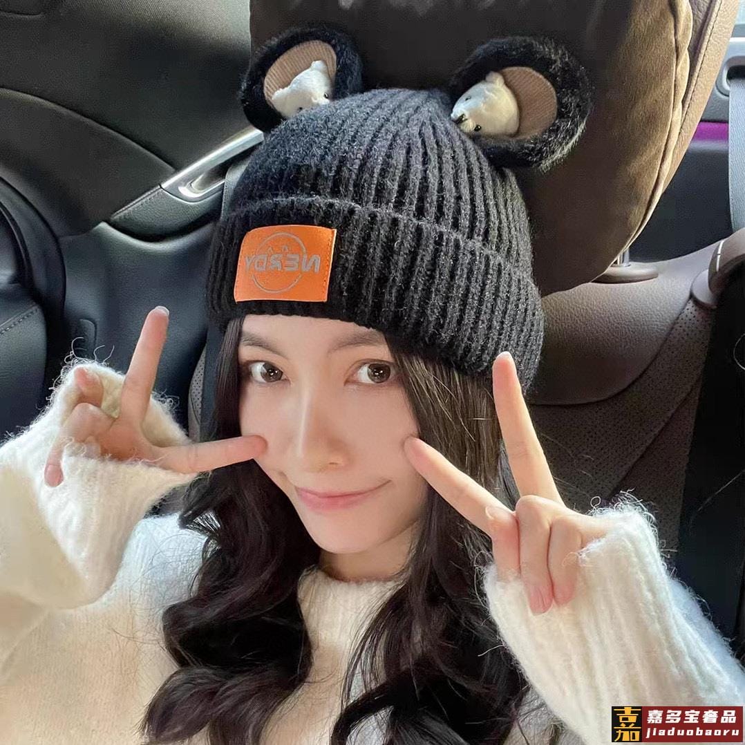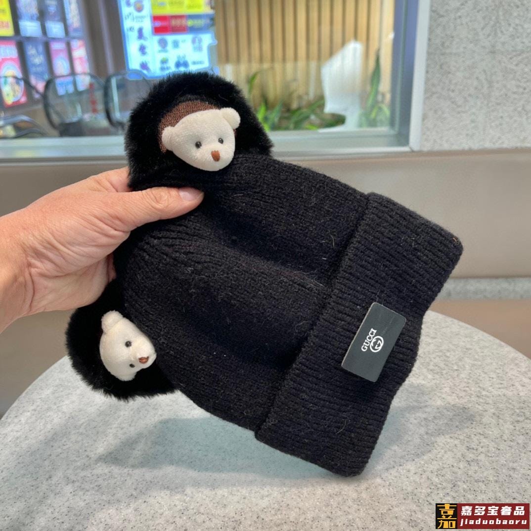 古奇新款秋冬新款网红卡通小熊毛线帽甜美可爱日系针织百搭亲子套