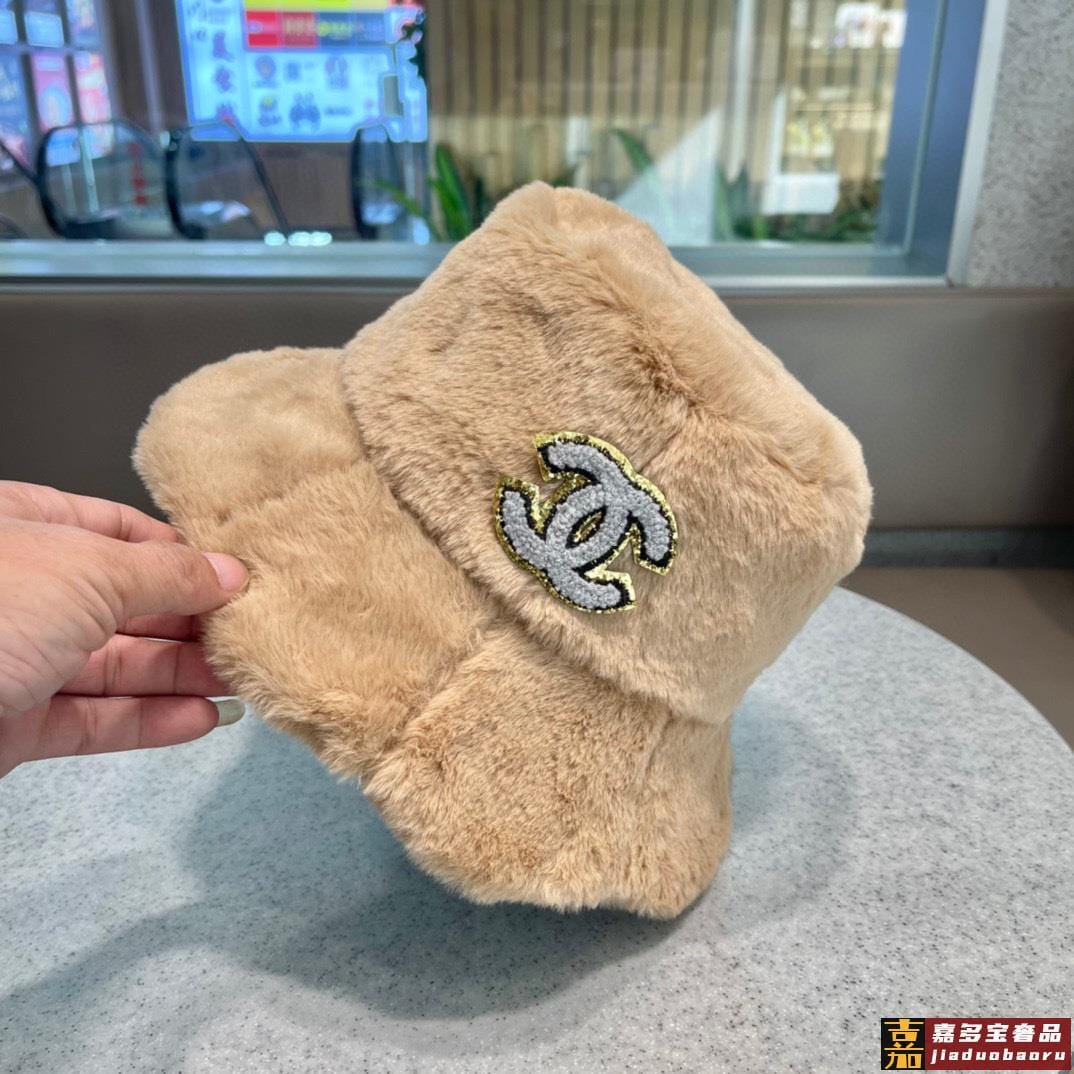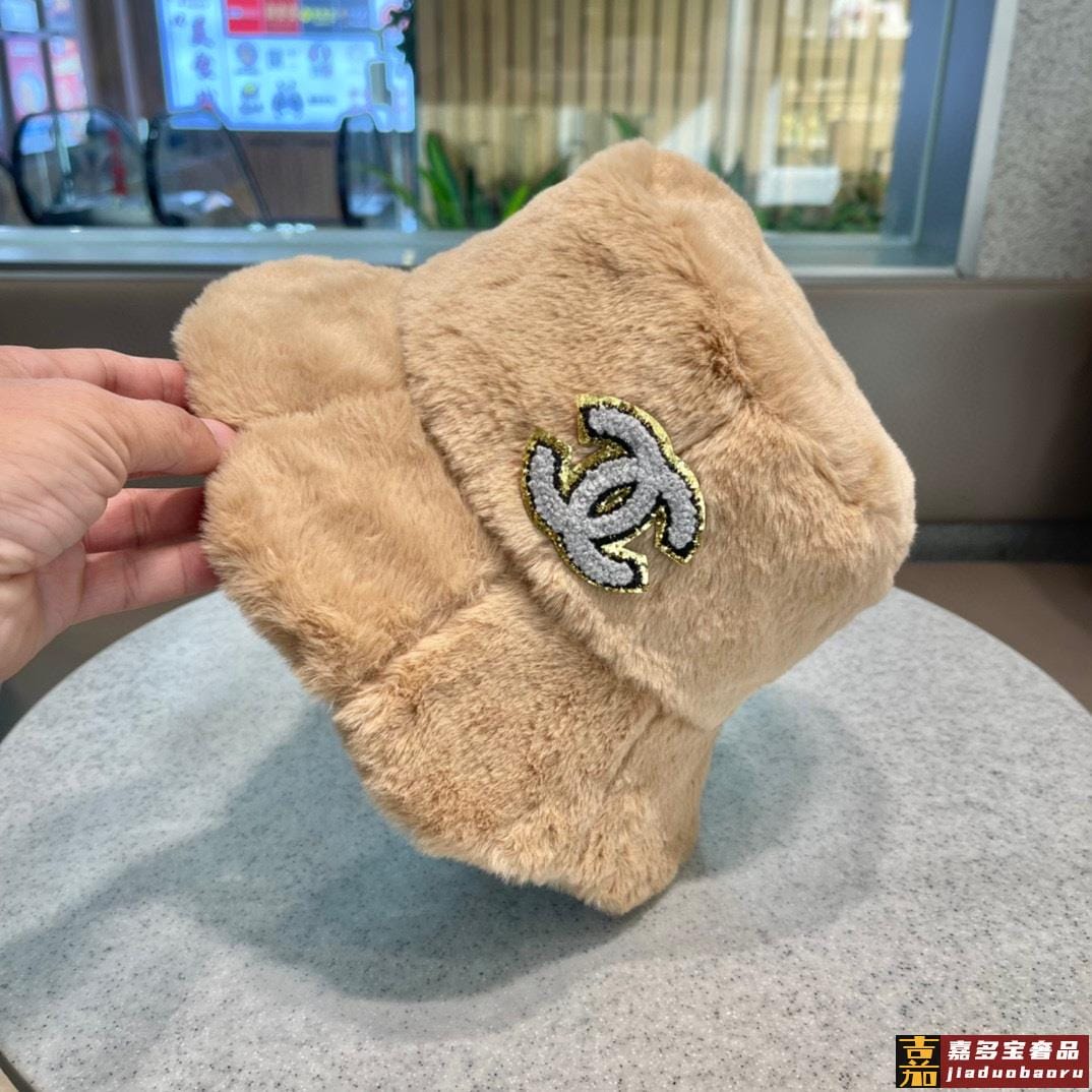香奈儿秋冬新款保暖加厚防寒韩版条纹渔夫帽羊绒毛网红爆款男女同