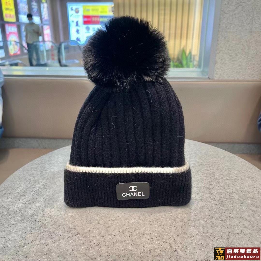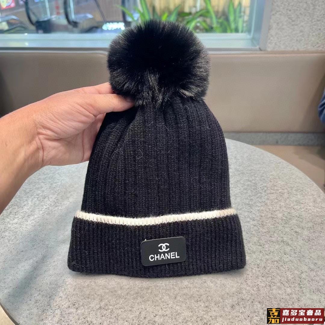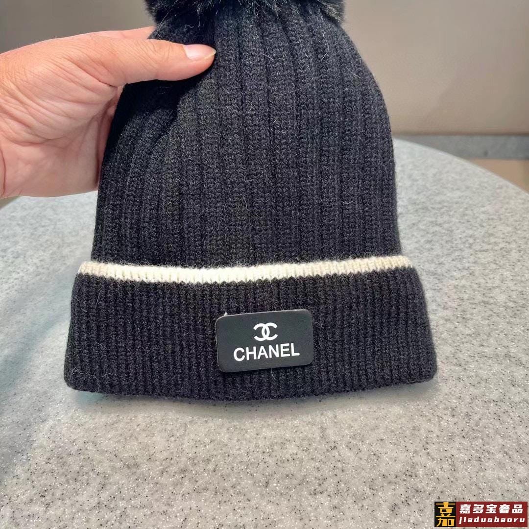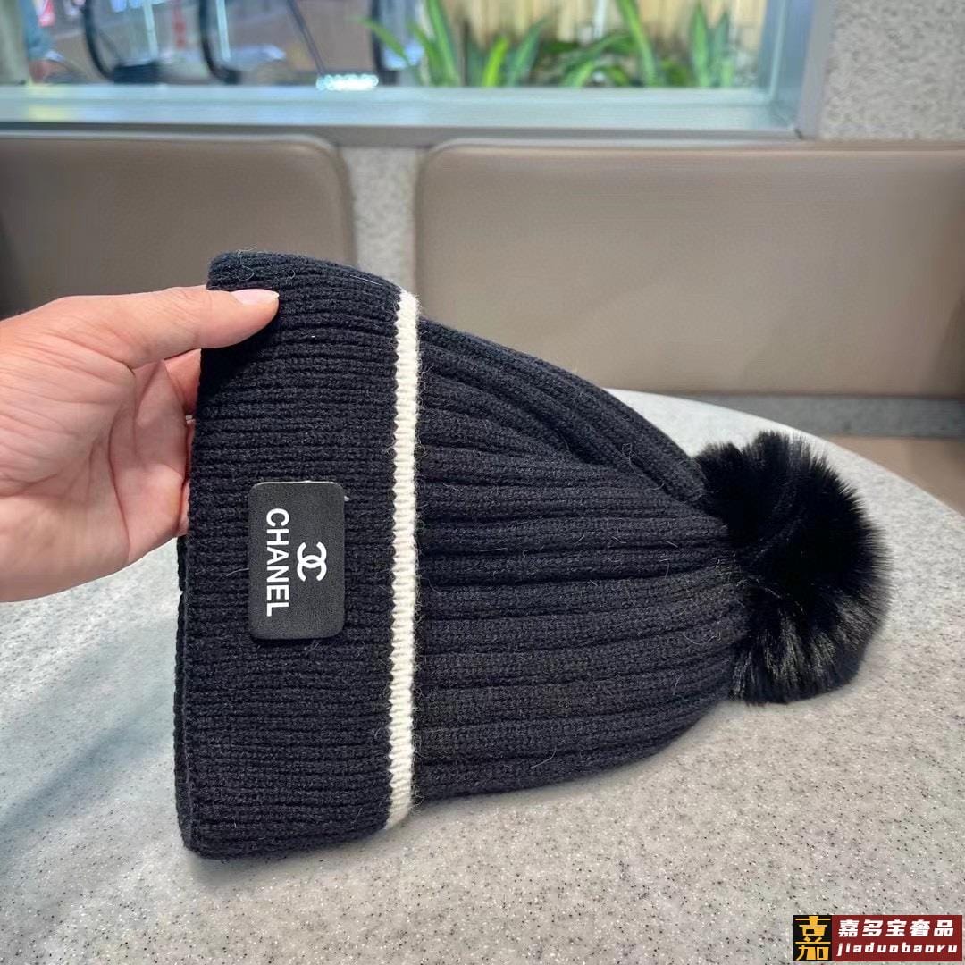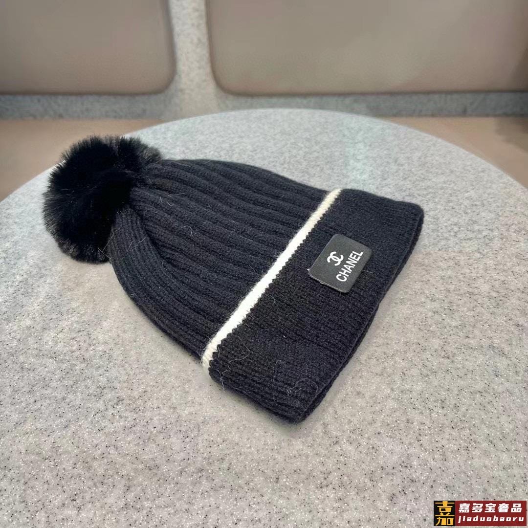 香奈儿秋冬新款网红时尚博主推荐款皮标针织毛线帽手感超柔软舒适