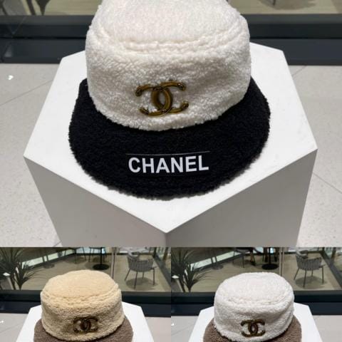 香奈儿新款拼色羊羔毛品质渔夫帽出街必备百搭单品大牌范儿一出就