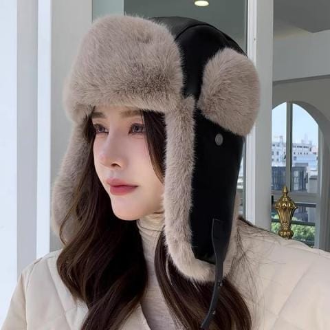 蒙口皮质雷锋帽女冬季时尚保暖加绒防寒骑车护耳帽防风东北户外帽