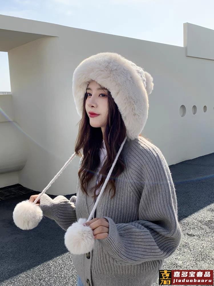 香奈儿帽子女冬季小熊耳朵可爱甜美毛绒绒雷锋帽骑车保暖护耳滑雪