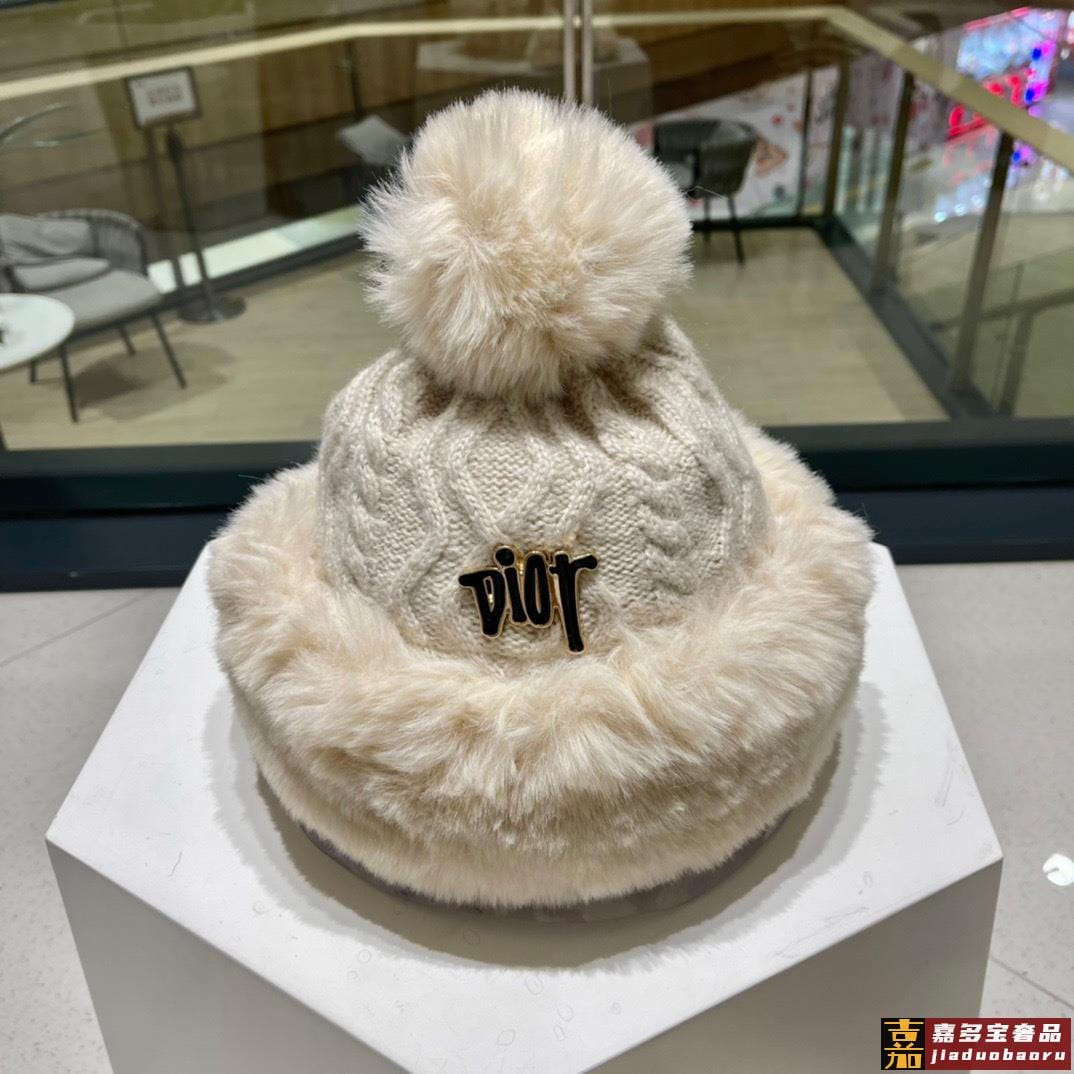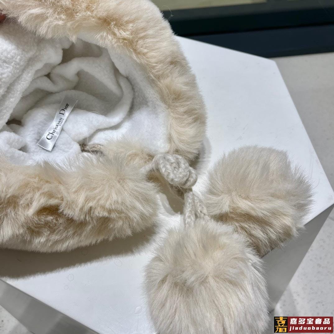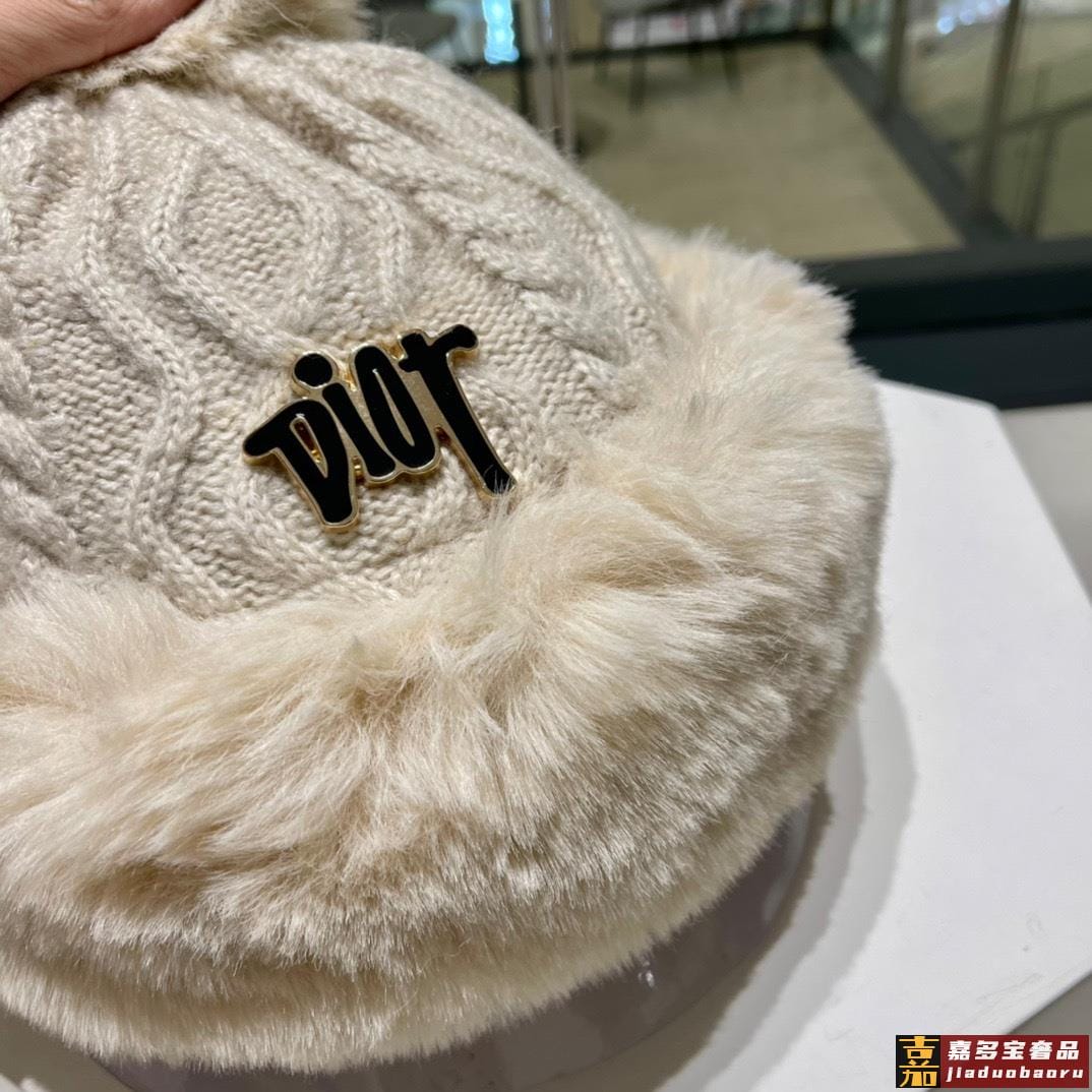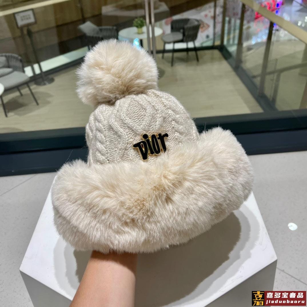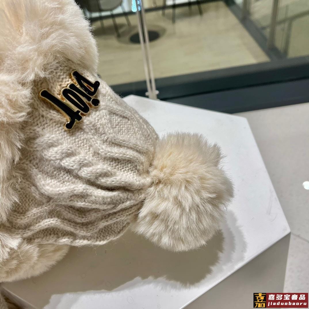 迪奥雷锋帽女韩版潮百搭可爱毛球针织毛线帽加绒保暖时尚护耳帽子