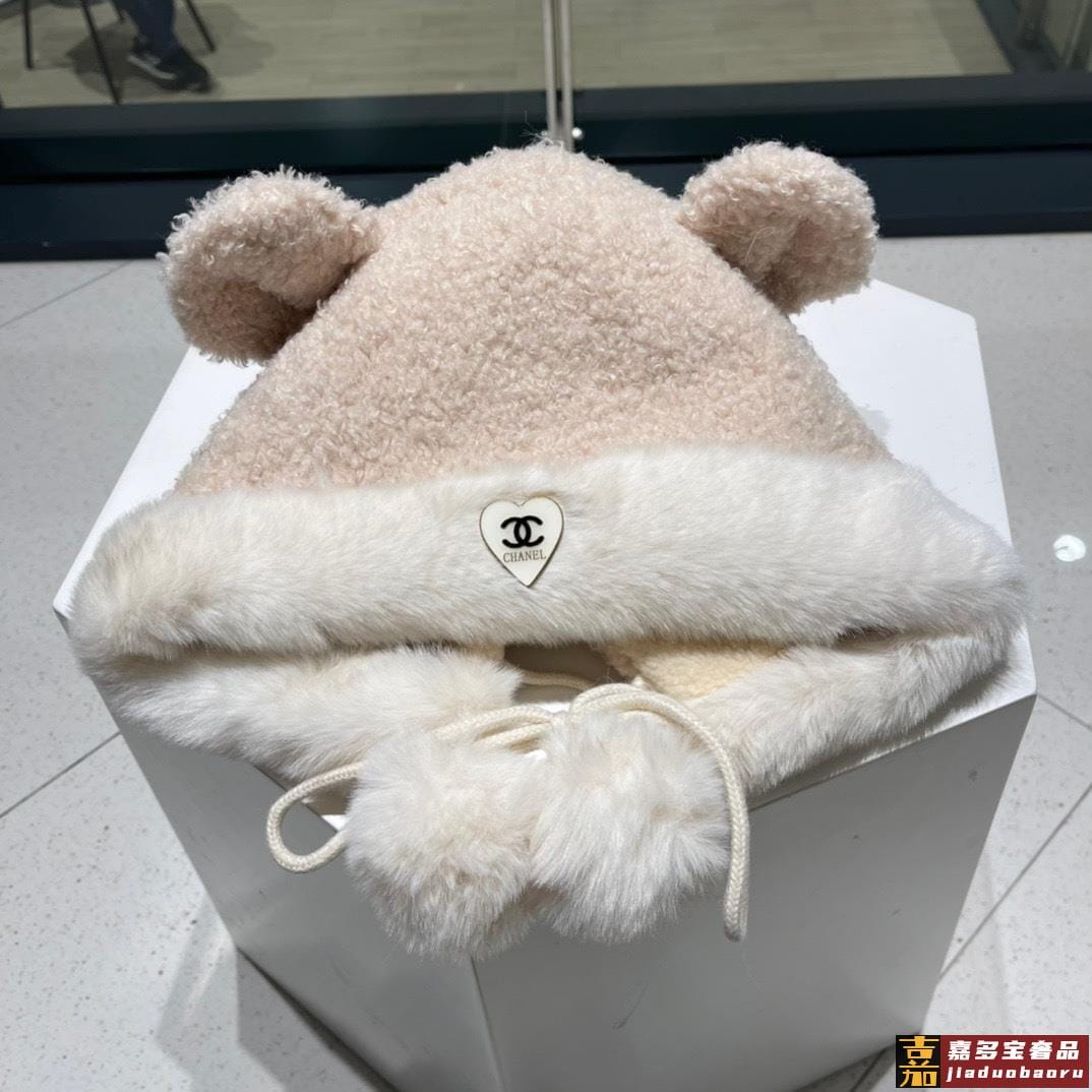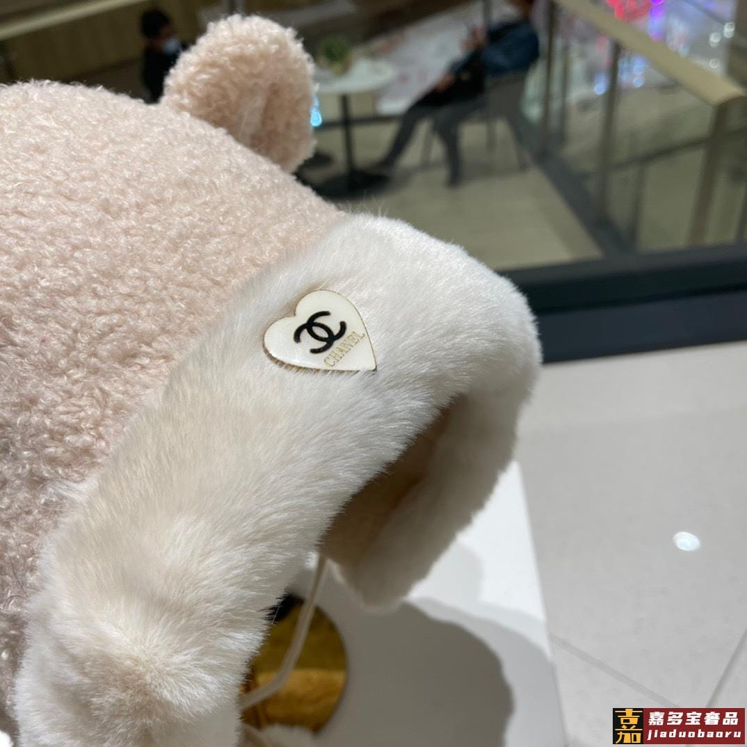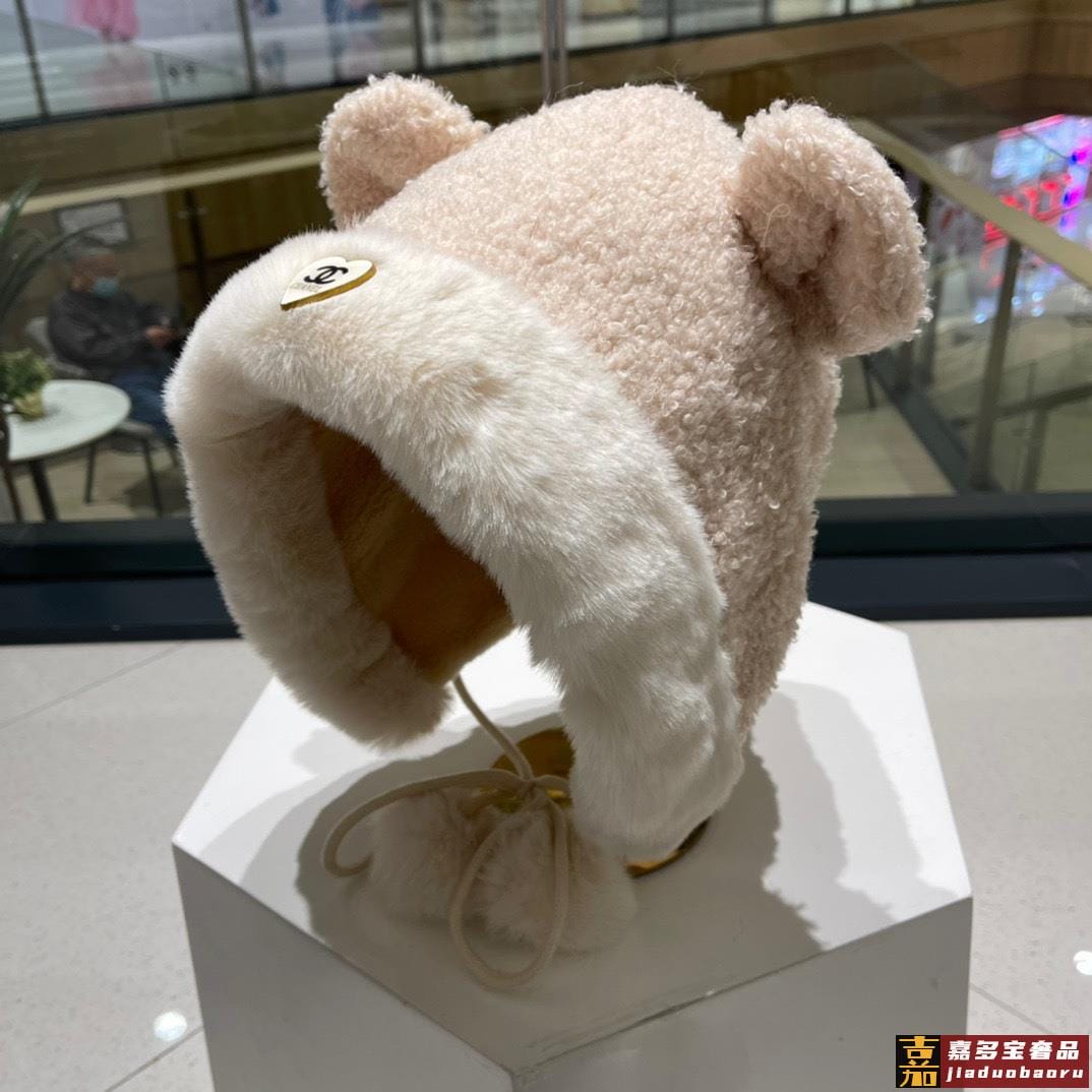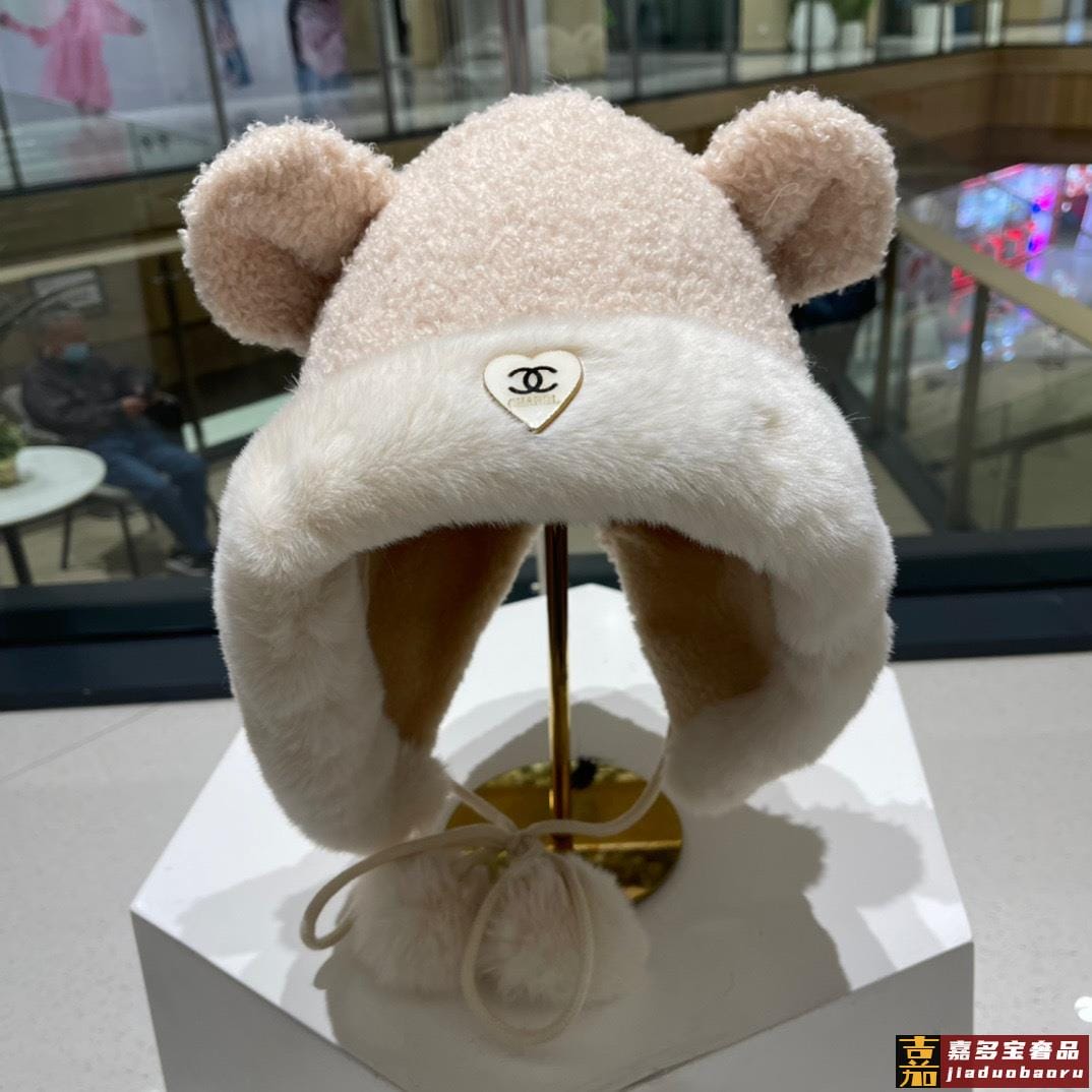 香奈儿帽子女冬季小熊耳朵可爱甜美毛绒绒雷锋帽骑车保暖护耳滑雪