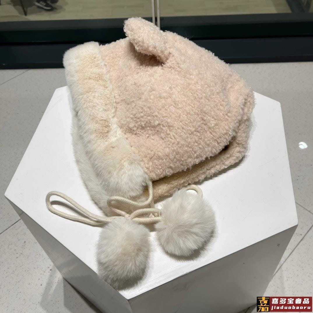 赛琳羊羔毛绒可爱耳朵帽子女冬季韩版百搭潮加厚保暖护耳毛线帽显