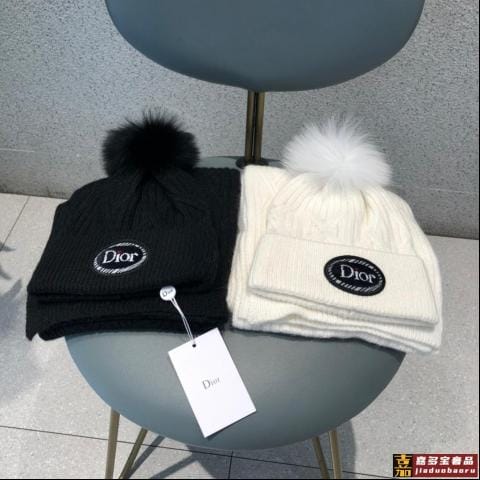 迪奥羊毛两件套套装帽子围巾经典套装帽子暖暖哒超级舒服冬日小姐
