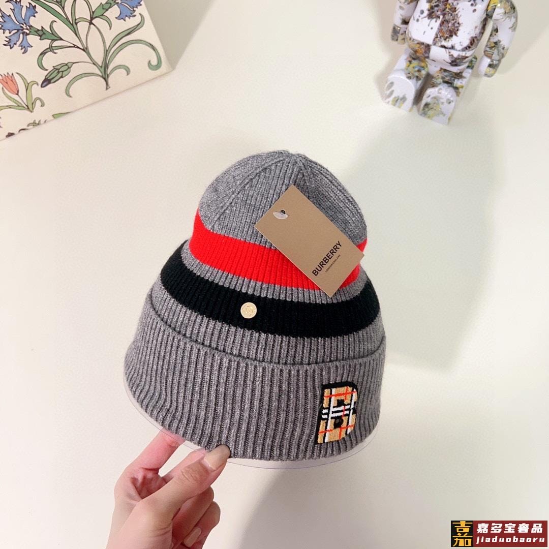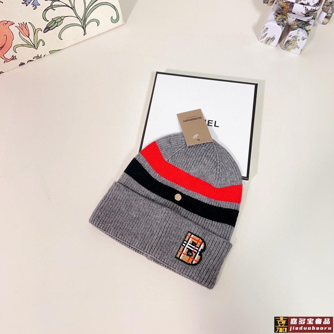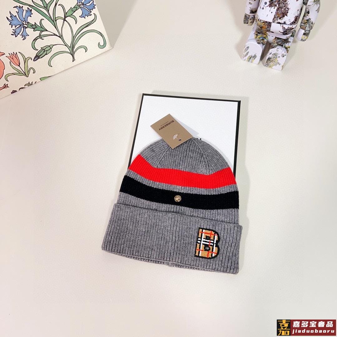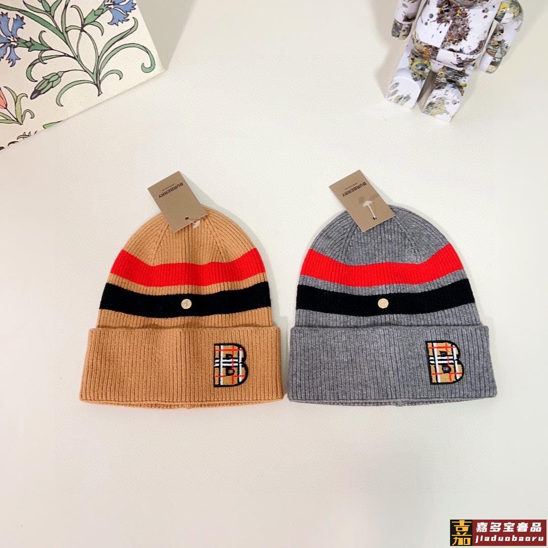 特配防尘袋巴宝莉秋冬新款专柜款条纹针织毛线帽大牌同步男女可戴