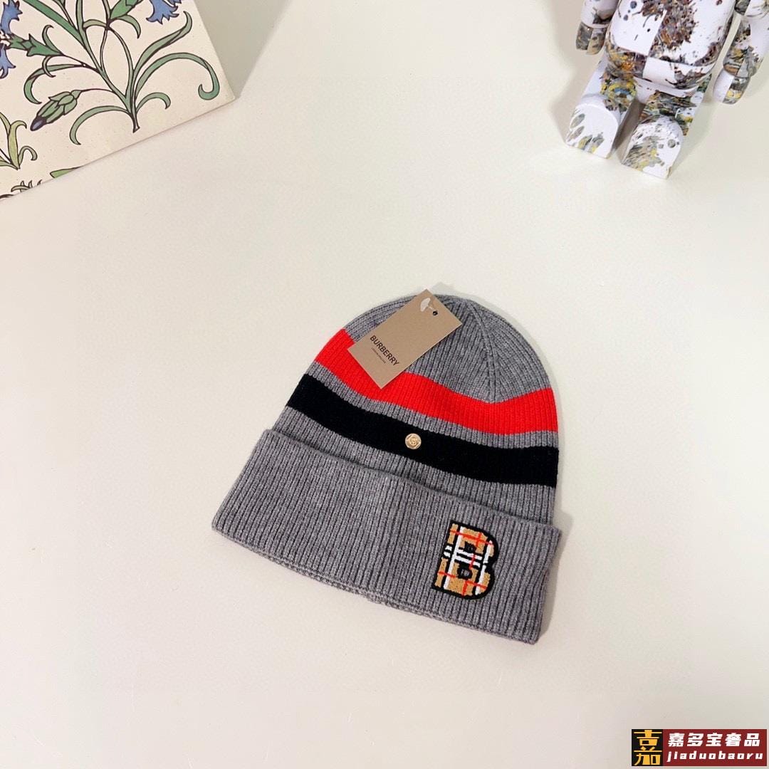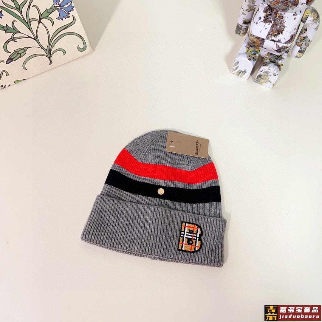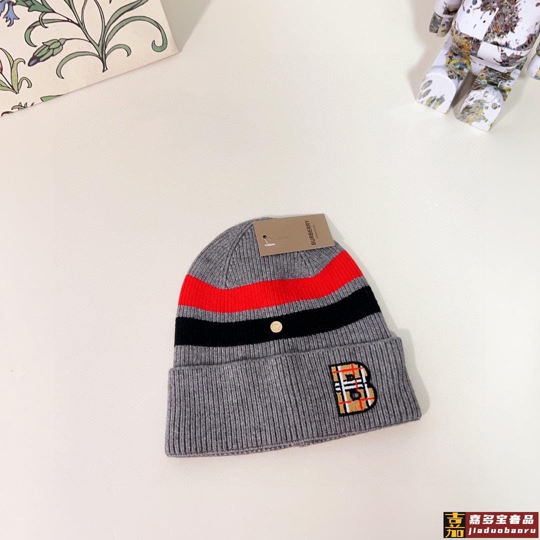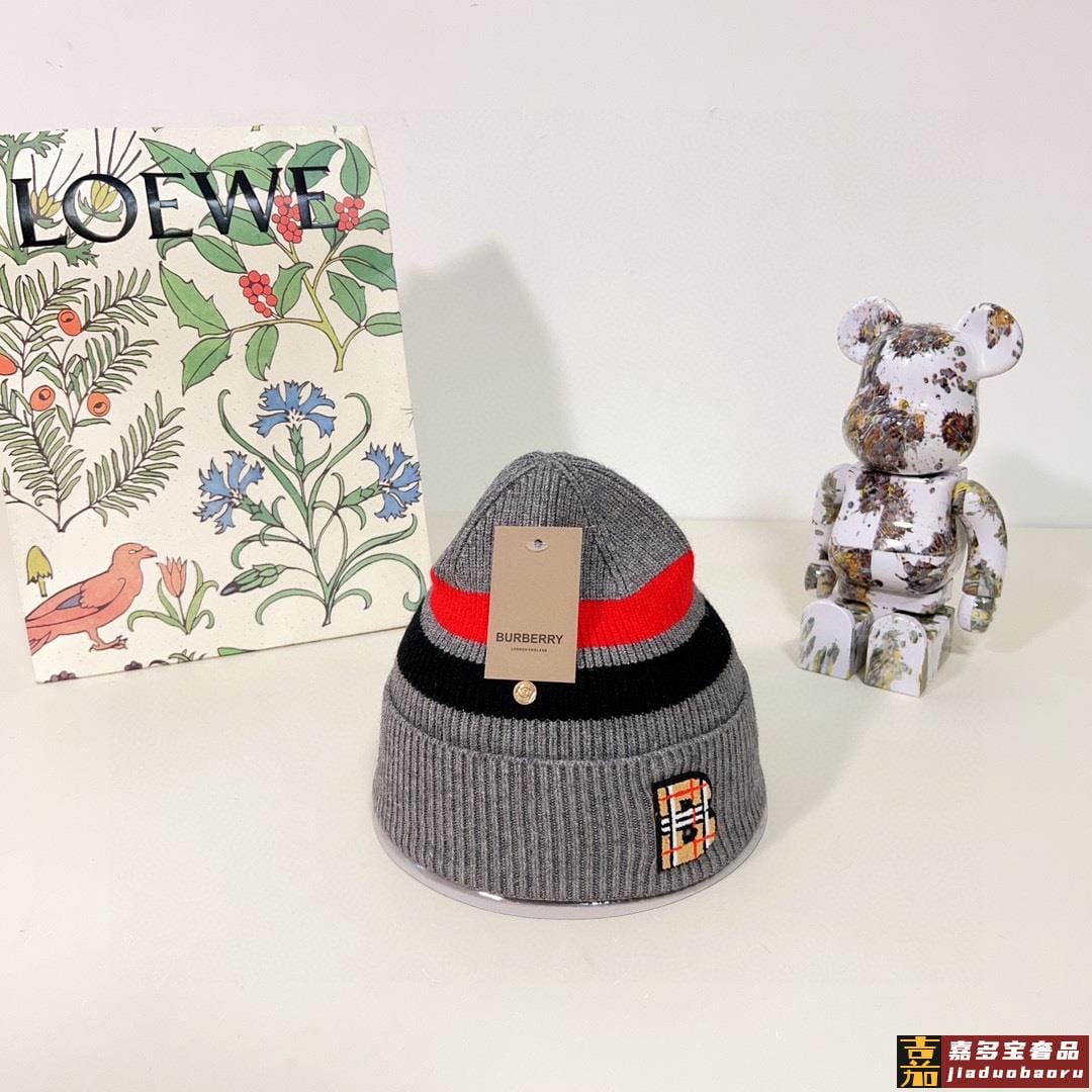 特配防尘袋巴宝莉秋冬新款专柜款条纹针织毛线帽大牌同步男女可戴