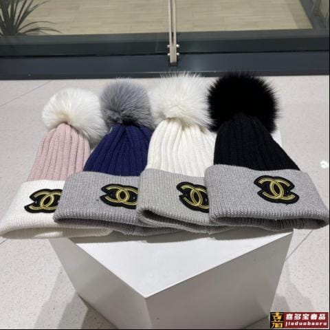 香奈儿秋冬新款小香风可拆两用胸针款狐狸毛球毛线帽超火爆质感一