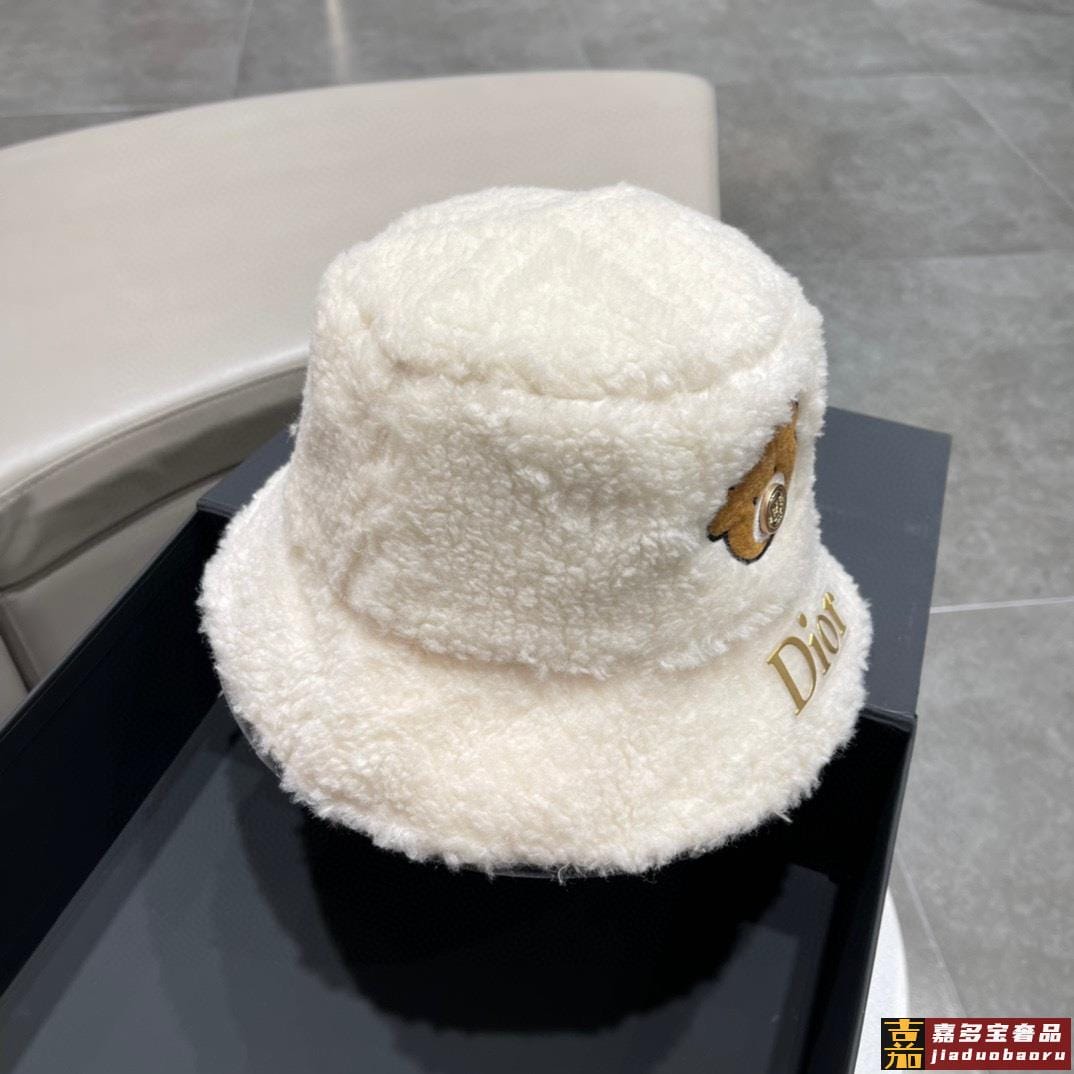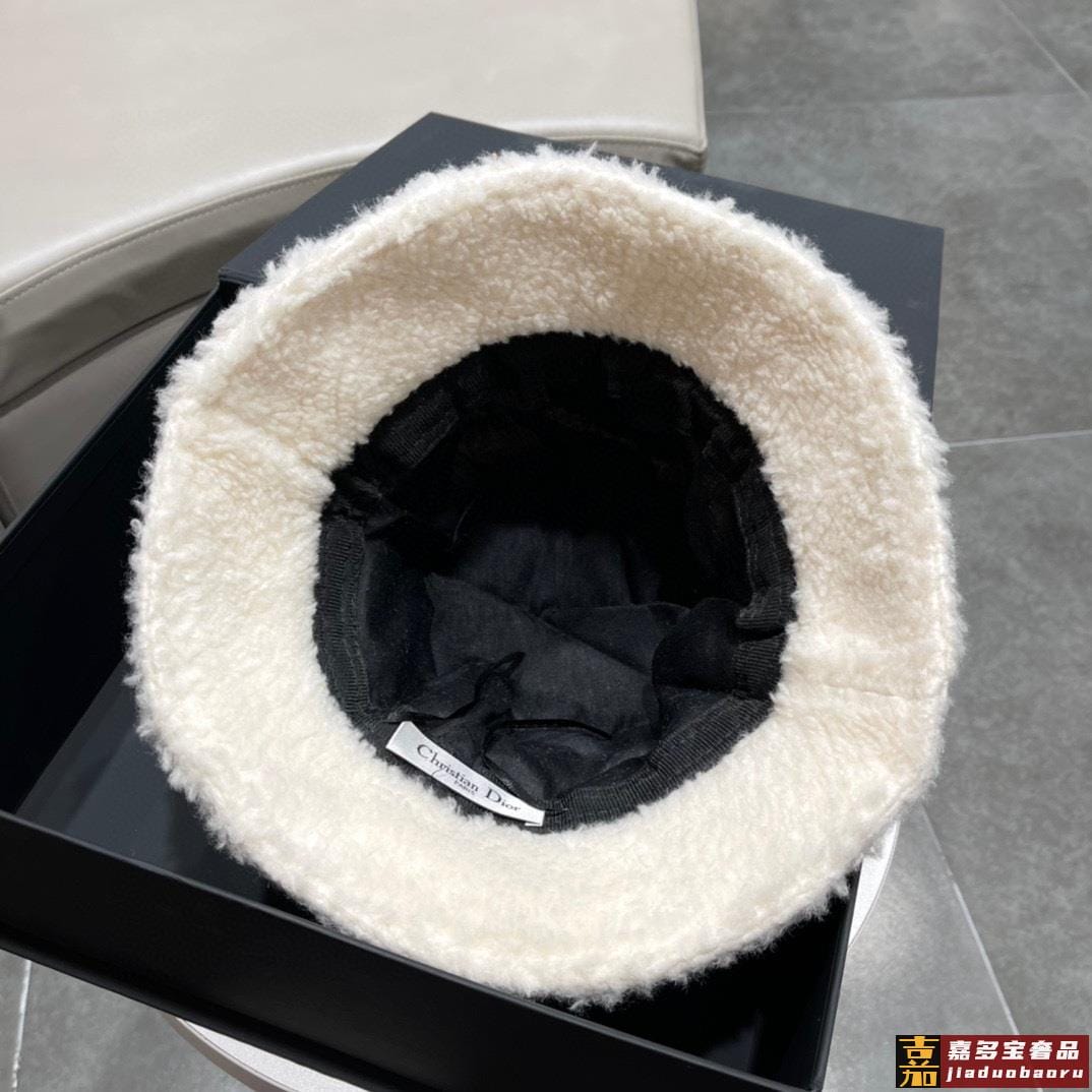 迪奥秋冬新款韩版休闲羊绒毛盆帽草帽沙滩风简约大方百搭单品出街