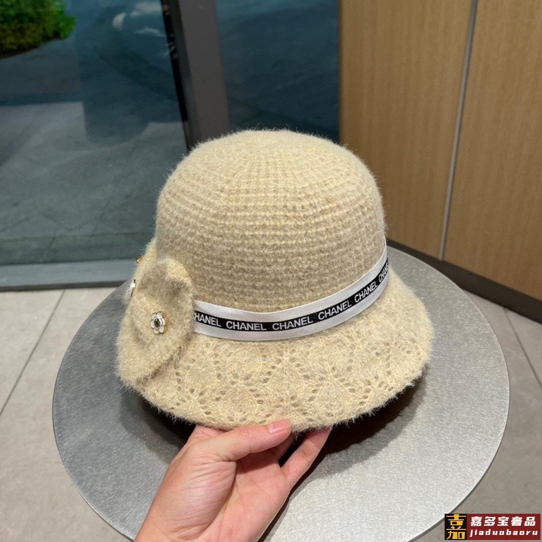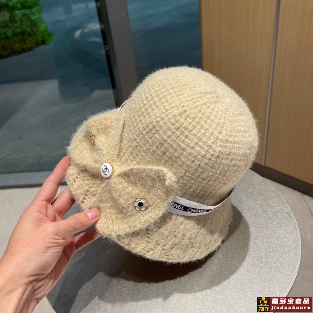 香奈儿秋冬新款羊绒毛山茶花渔夫帽最强造型羊绒毛巨遮脸超的帽型