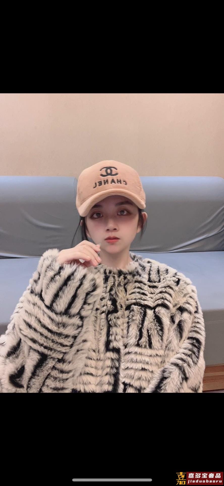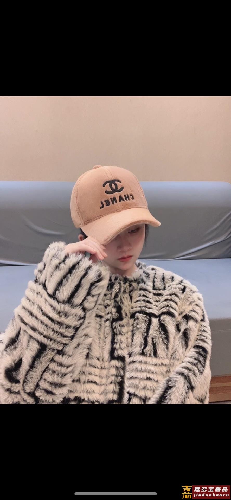 香奈儿新款典经款兔绒毛棒球帽细节做都工很精致经典男女都