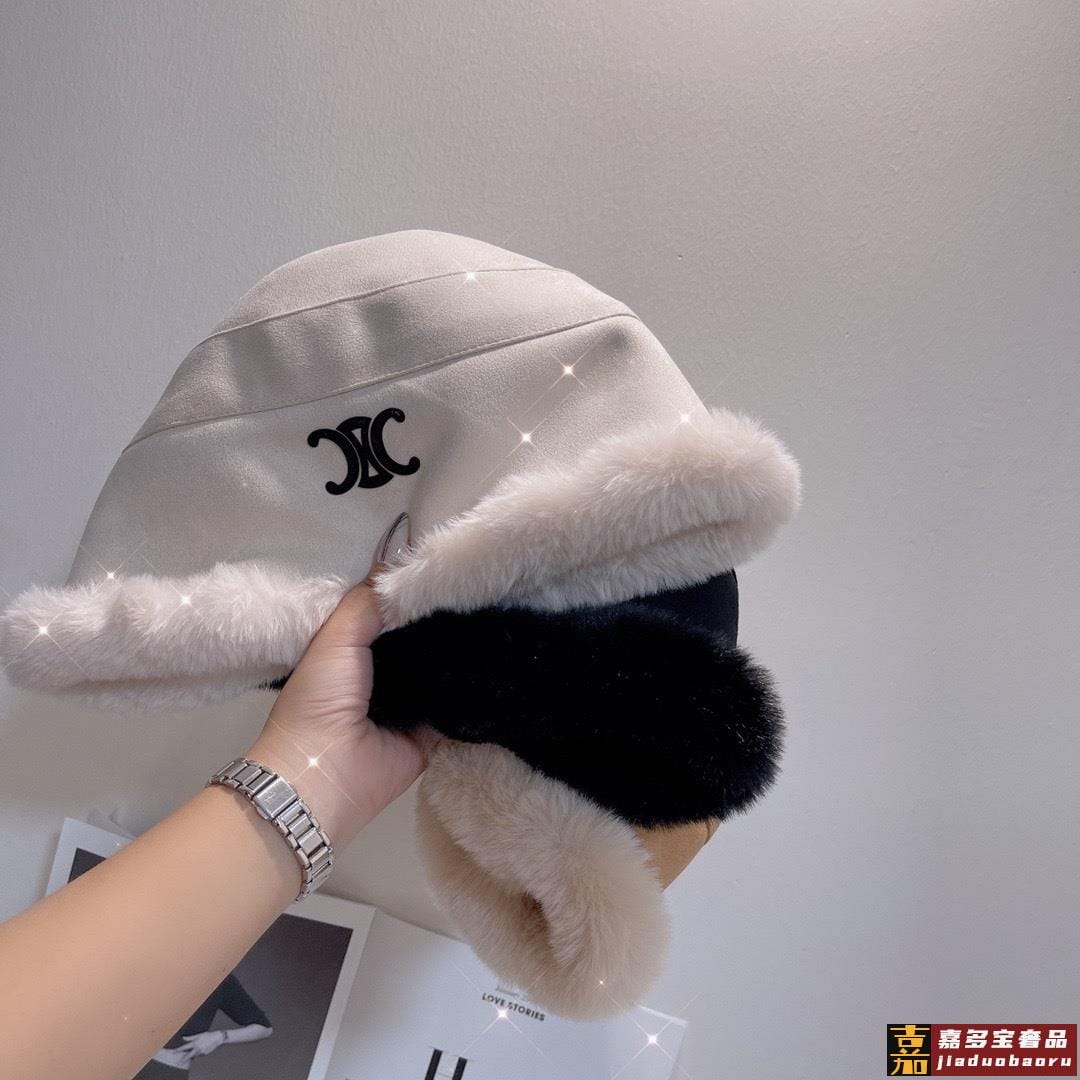 新款冬季鹿皮绒兔毛边加厚渔夫帽帽型独特前长后短设计内里羊羔毛