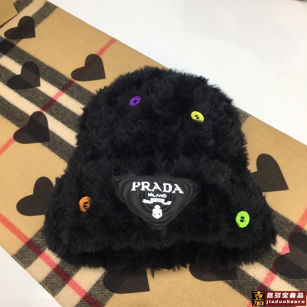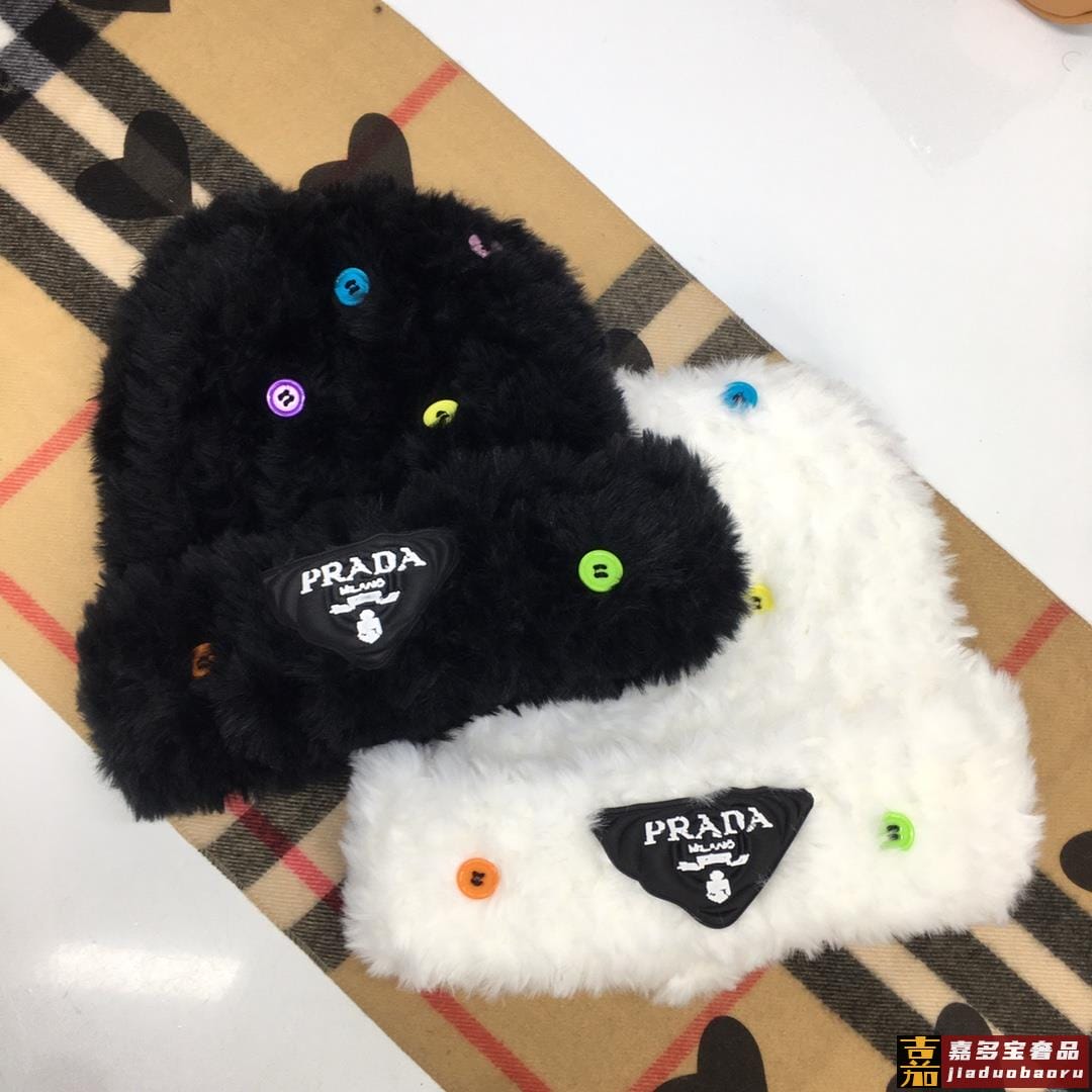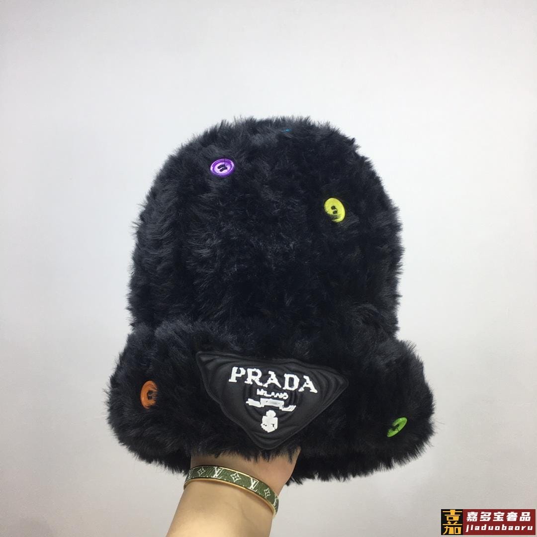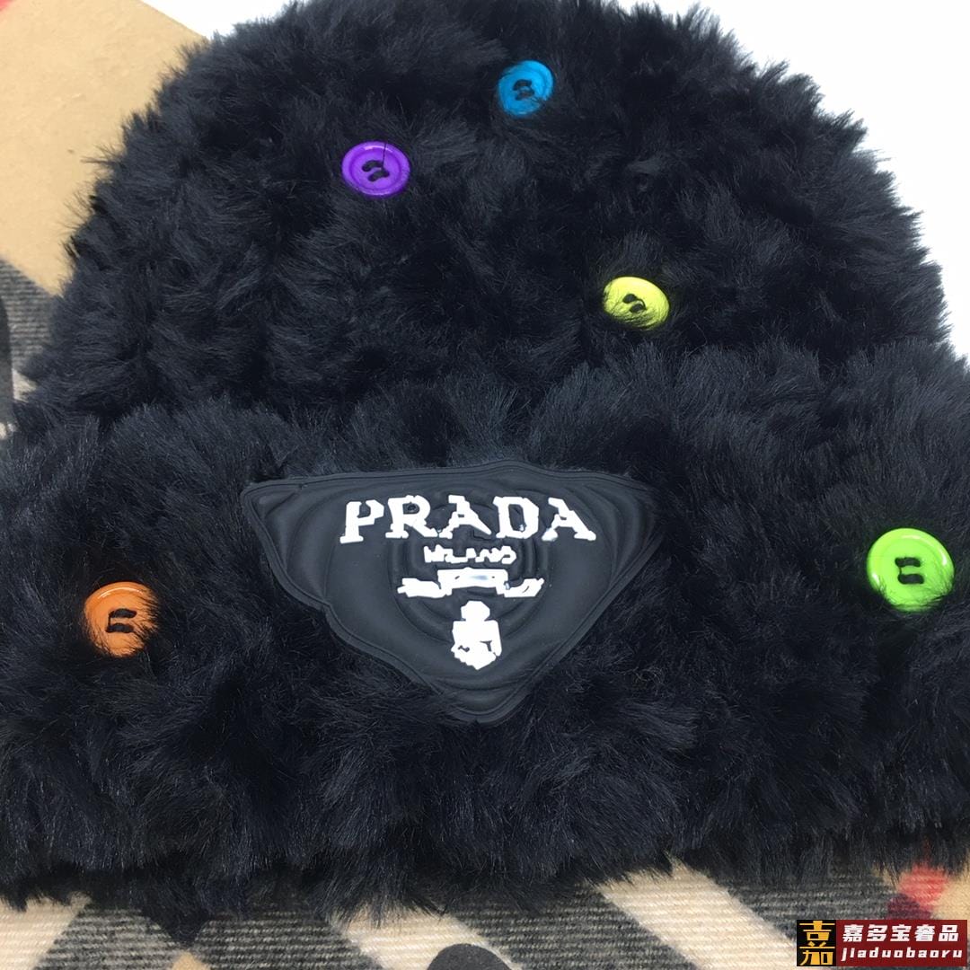 普拉达针织毛线帽美杜莎纽扣设计高级兔毛独家定制时尚的一款独家定制