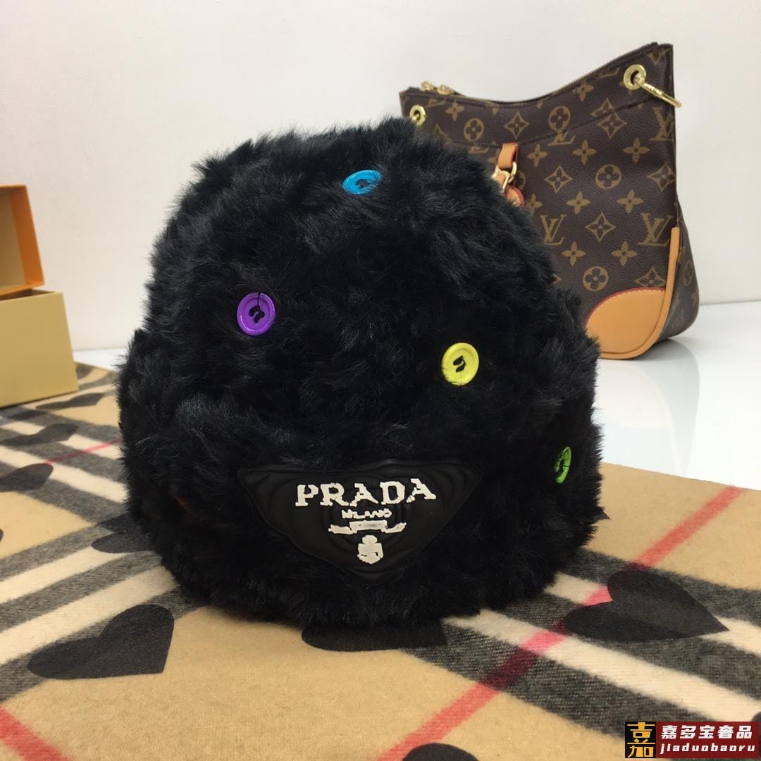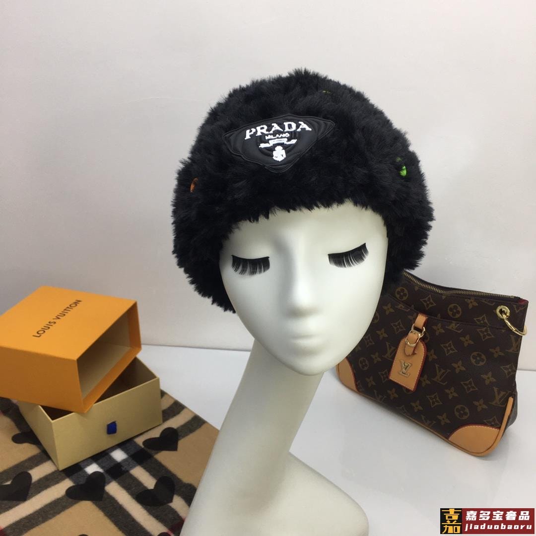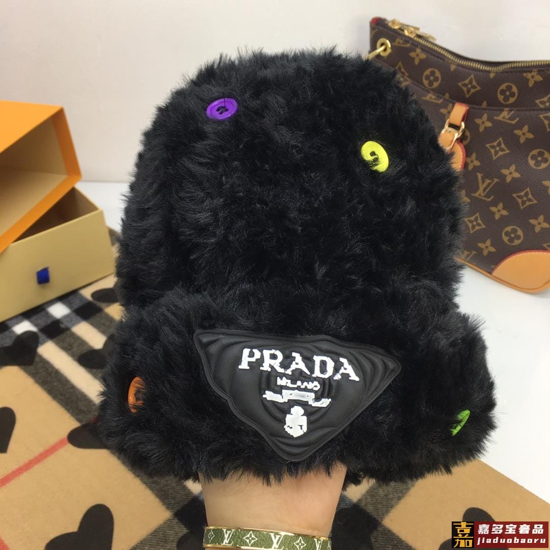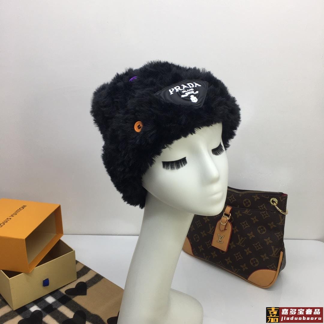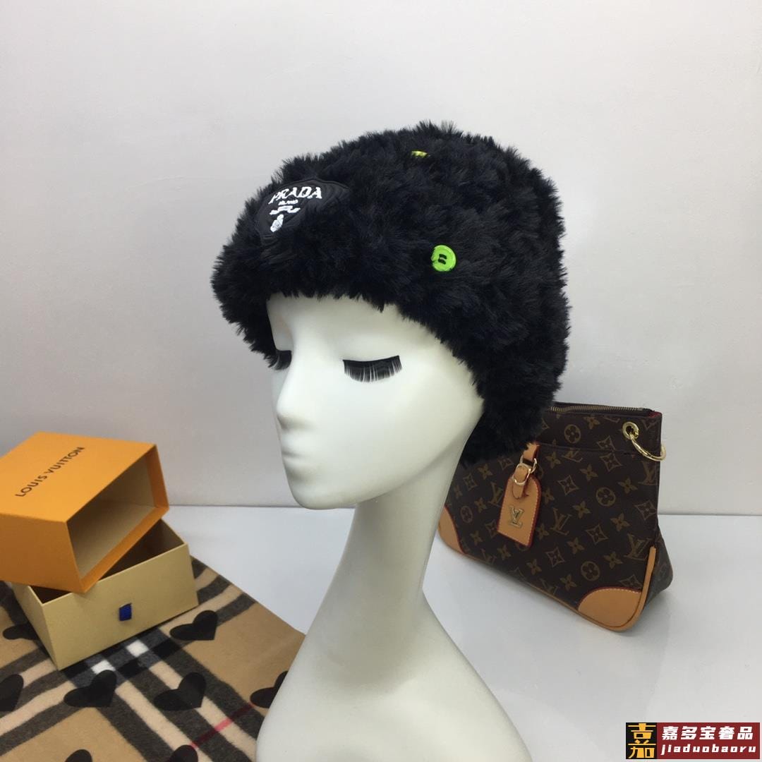 普拉达针织毛线帽美杜莎纽扣设计高级兔毛独家定制时尚的一款独家定制