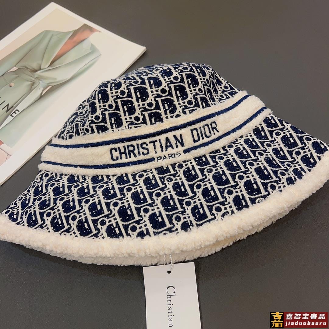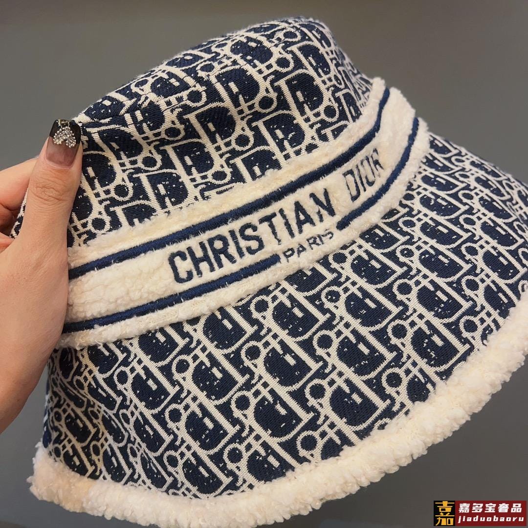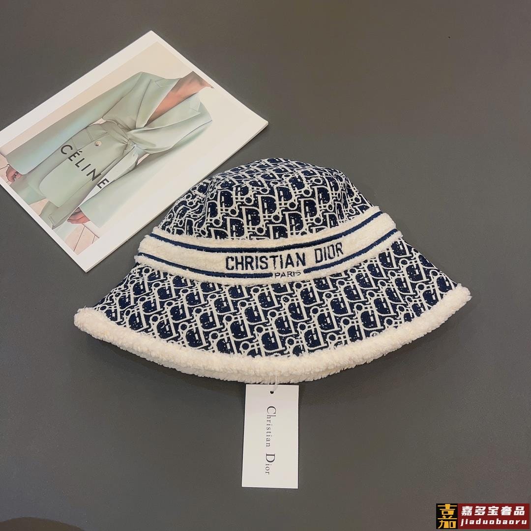 迪奥新款绒毛渔夫帽个性刺绣字母标志好看时尚有个性毛感特别好帽