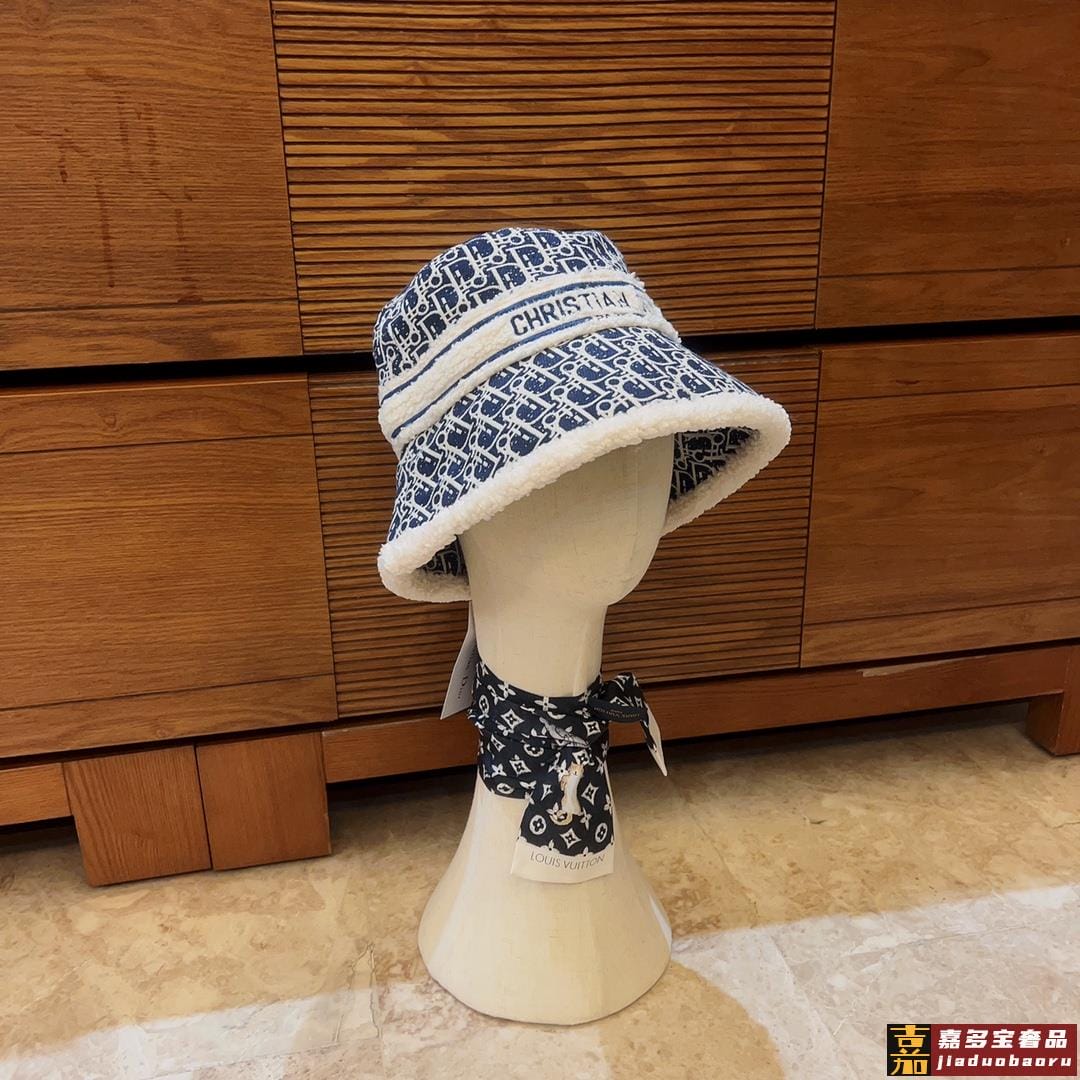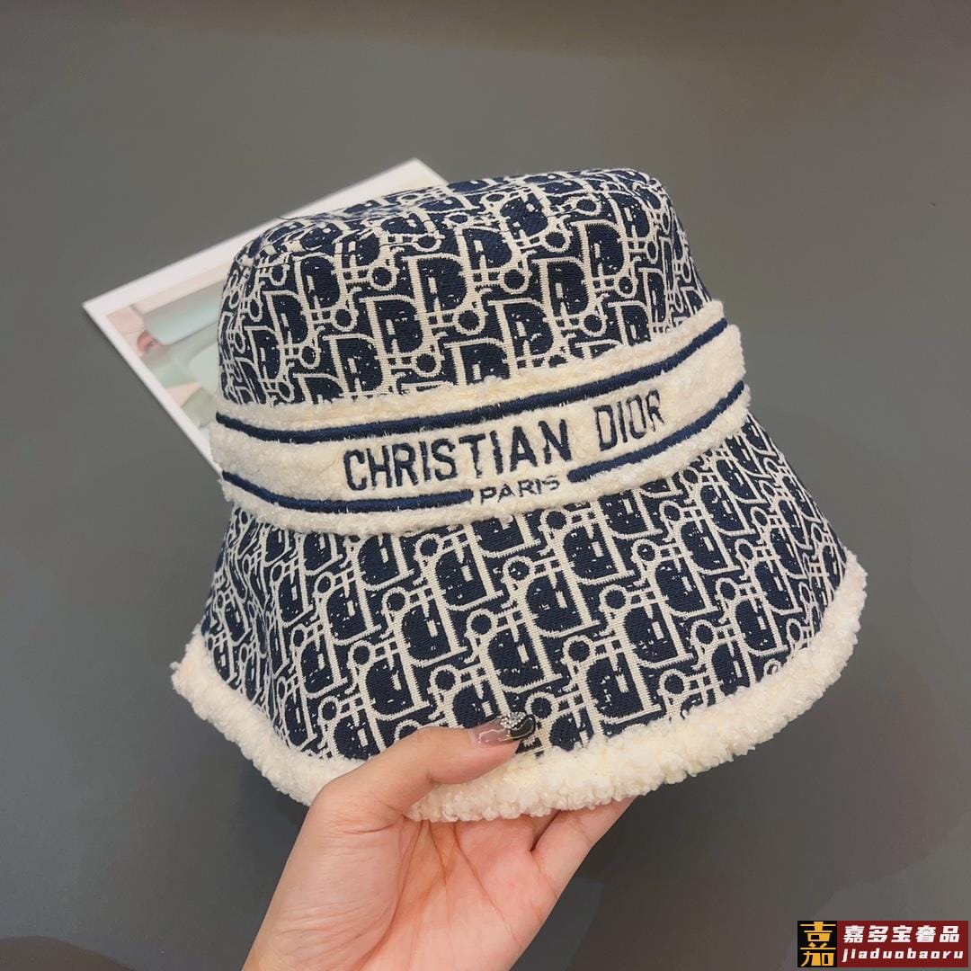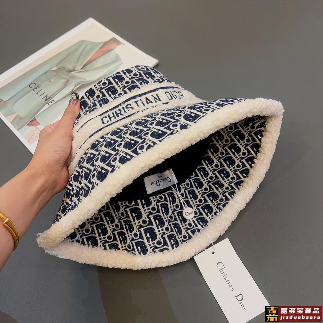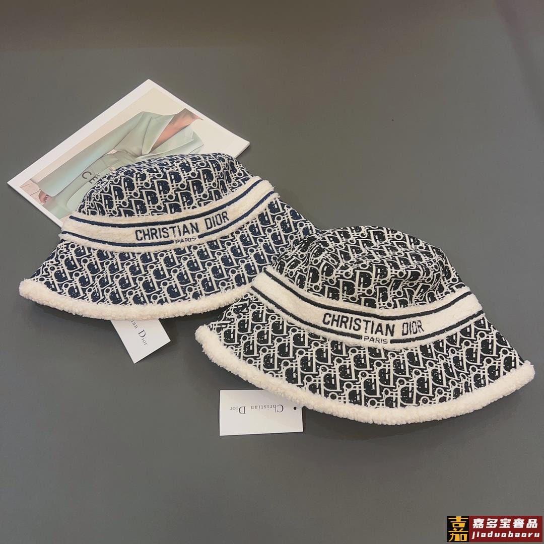 迪奥新款绒毛渔夫帽个性刺绣字母标志好看时尚有个性毛感特别好帽