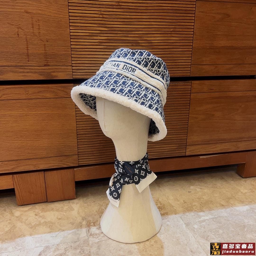 迪奥新款绒毛渔夫帽个性刺绣字母标志好看时尚有个性毛感特别好帽型很好修饰脸型哦
