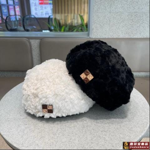 罗意威秋冬新款羊绒毛贝雷帽天使之翼贝雷帽设计感超强皮边帽檐个
