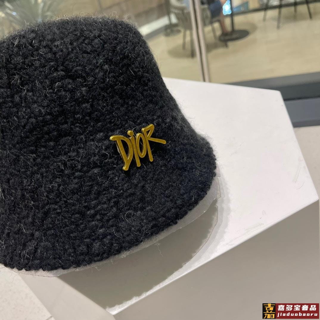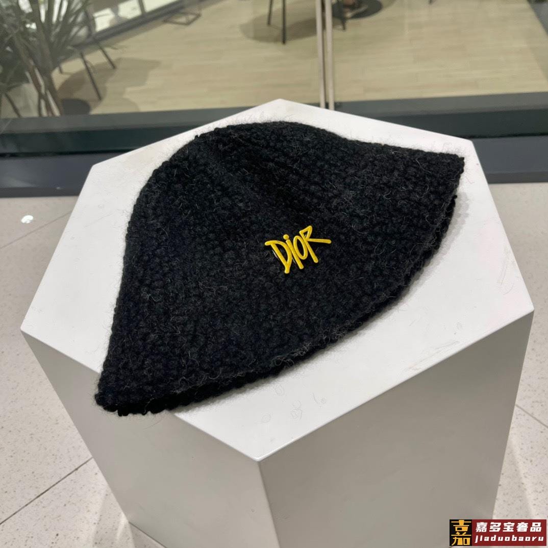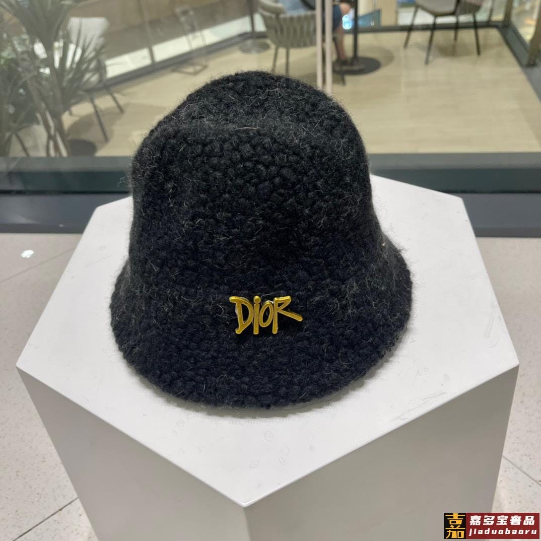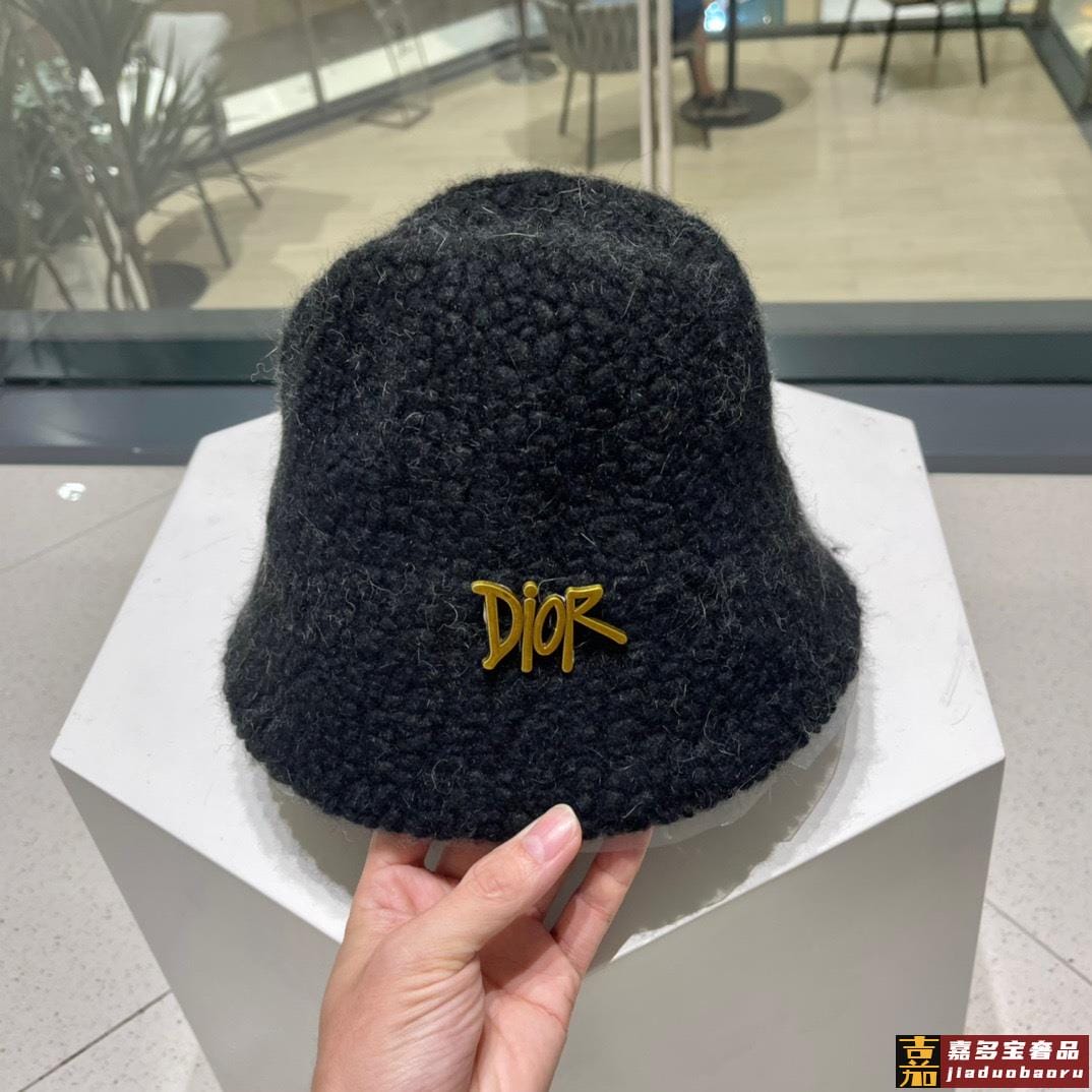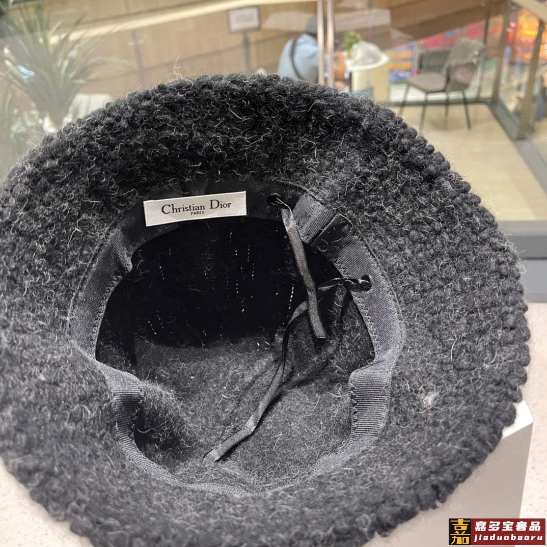 迪奥新款绒毛渔夫帽个性刺绣字母标志好看时尚有个性毛感特别好帽