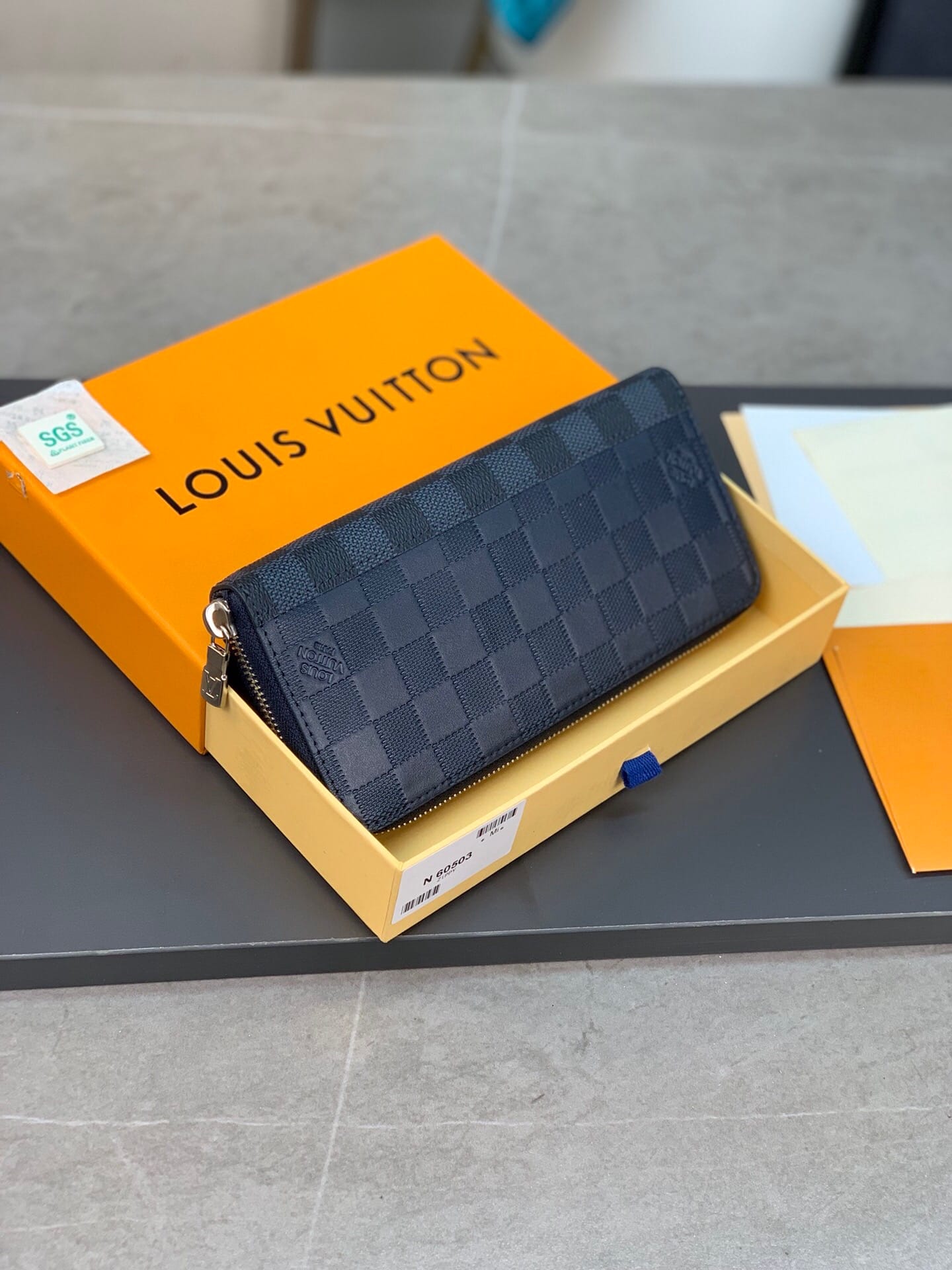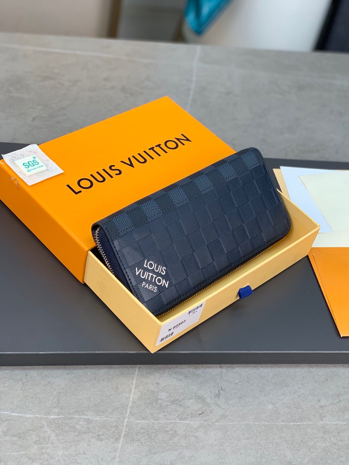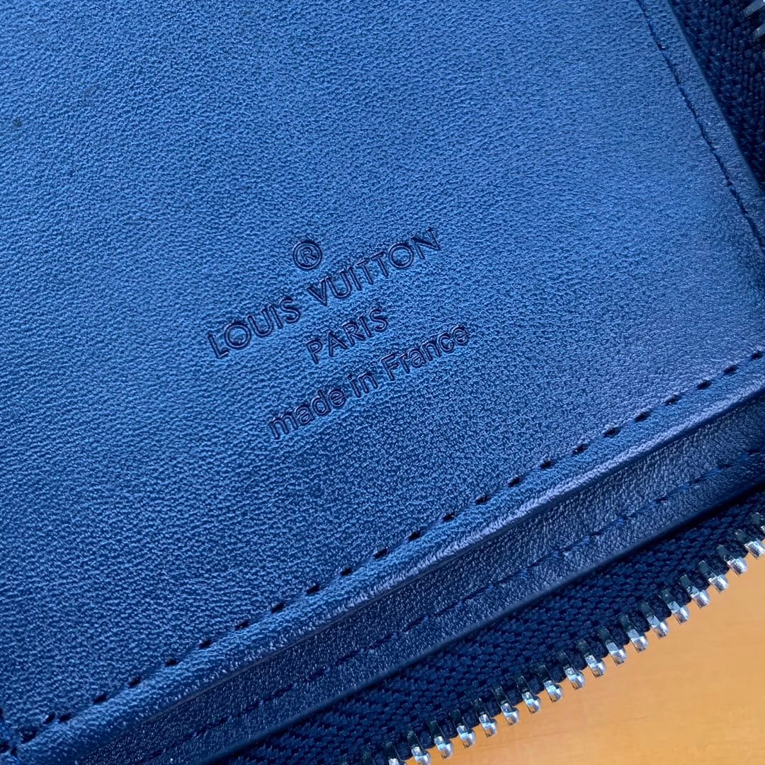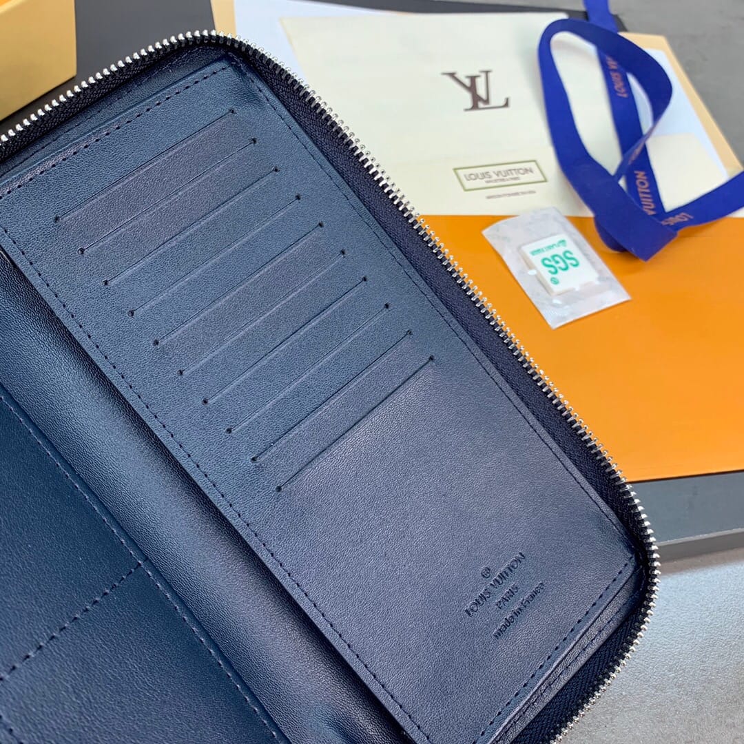 N60503 蓝色拉链包!ZIPPY 拉链竖款钱夹 此款路易威登Zippy竖款拉链钱夹,由Monogram Eclipse小牛皮裁制而成,时尚而实用,存放携带信用卡与现金的理想之选。牢靠的环绕式拉链构造,配有多个信用卡插槽、一个拉链硬币袋以及数个票据与纸币隔层。10.0 x 20.0 x 2.0 cm (长 x 高 x 宽) 。
