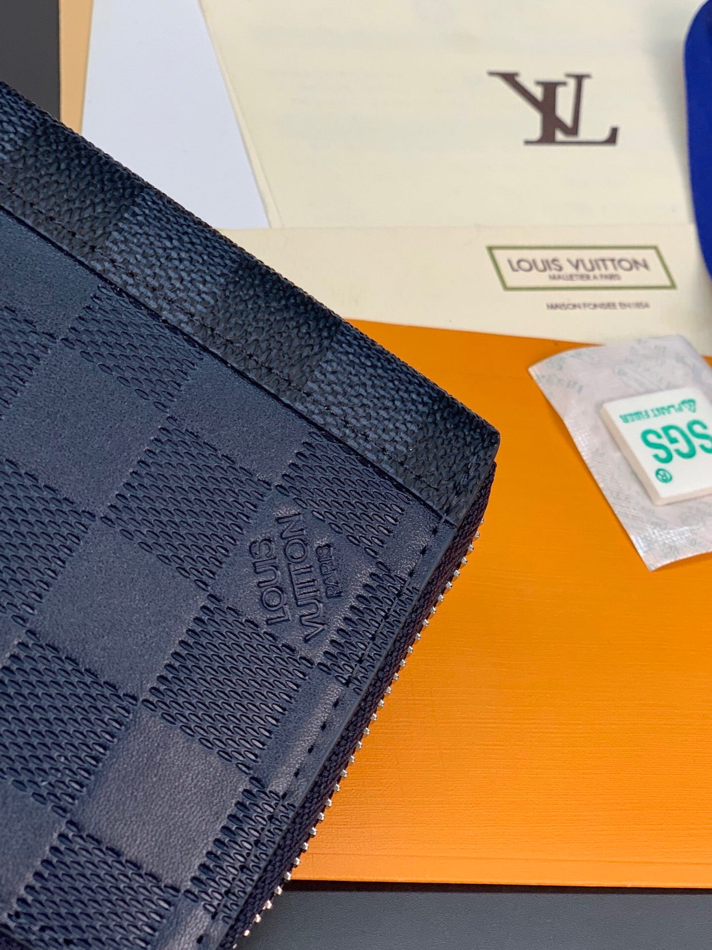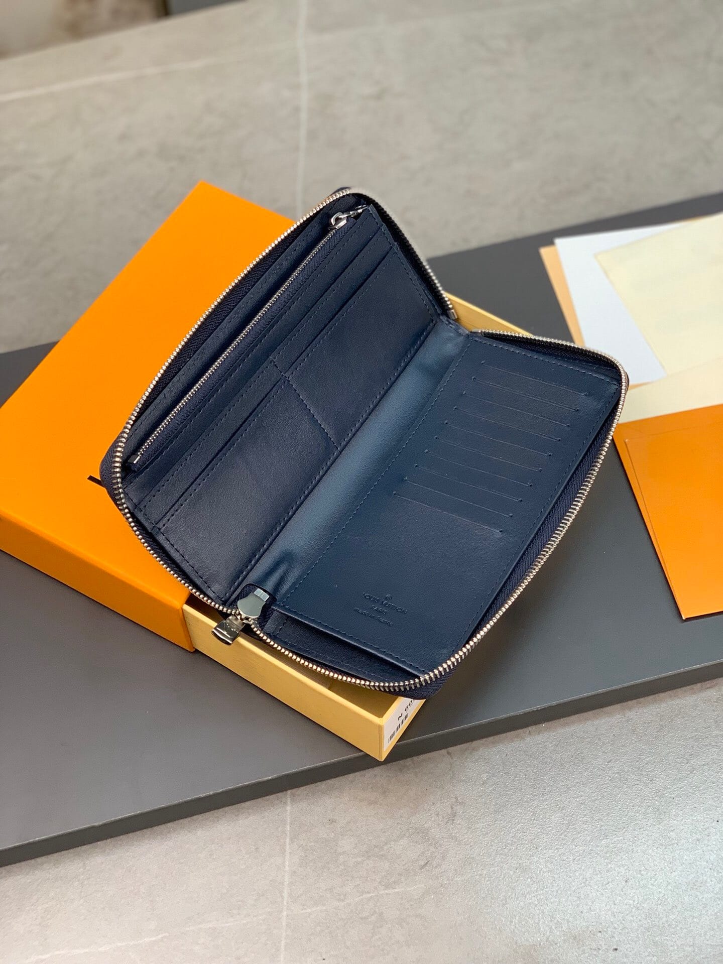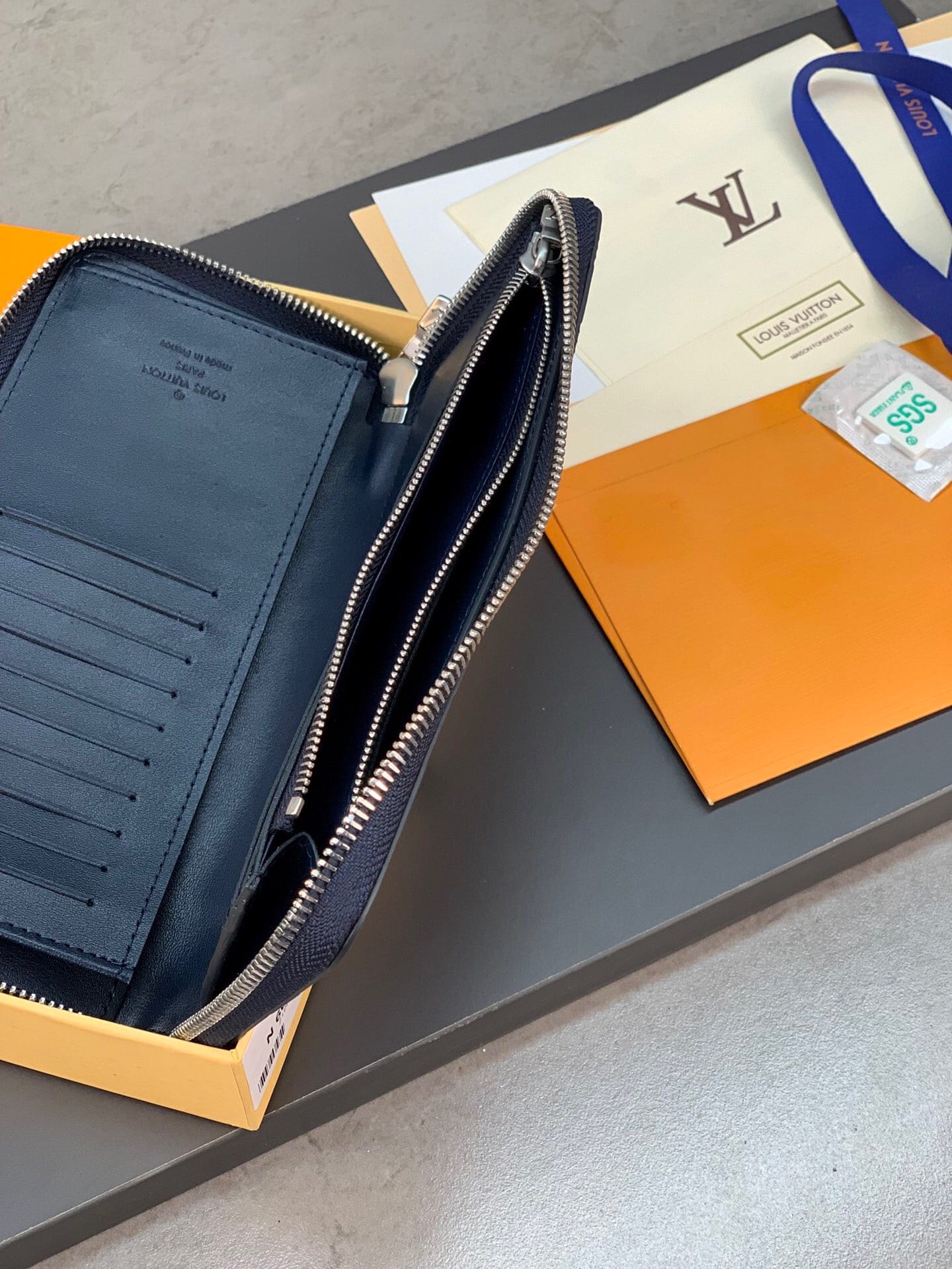 N60503 蓝色拉链包!ZIPPY 拉链竖款钱夹 此款路易威登Zippy竖款拉链钱夹,由Monogram Eclipse小牛皮裁制而成,时尚而实用,存放携带信用卡与现金的理想之选。牢靠的环绕式拉链构造,配有多个信用卡插槽、一个拉链硬币袋以及数个票据与纸币隔层。10.0 x 20.0 x 2.0 cm (长 x 高 x 宽) 。
