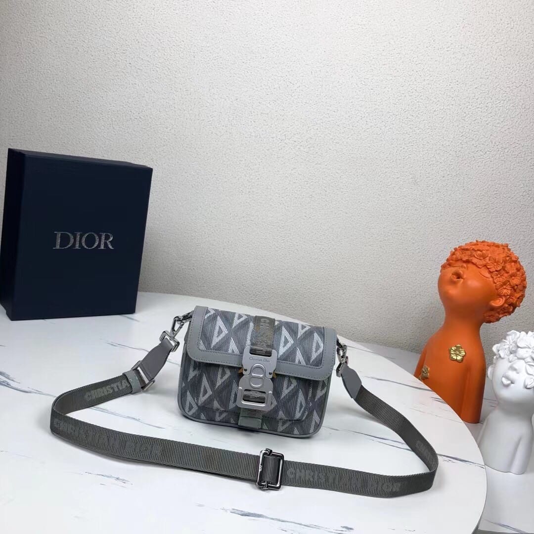 【配盒子】这款 Safari 信使包实用小巧,便于日常携带。采用迪奥灰 CD Diamond 图案帆布精心制作,从 Dior 档案汲取灵感,饰以同色调光滑牛皮革细节。拉链隔层和正面口袋可收纳各种日常用品,搭配可调节的 Christian Dior 肩带,可肩背或斜挎。 迪奥灰 CD Diamond 图案帆布 马克·博昂 (Marc Bohan) 于 1974 年设计的 CD Diamond 图案以立体线条菱形图案重新诠释 CD 首字母,呈现于帆布面料 迪奥灰光滑牛皮革 正面金属覆层黄铜 Dior 标志 内侧饰有 Dior 压花标志 顶部双向拉链开合 可调节、可拆卸的 Christian Dior 标志牛皮革和尼龙提花肩带 正面拉链口袋 内含防尘袋 意大利制造 尺寸:19x 11x 4厘米(长 x 高 x 宽)