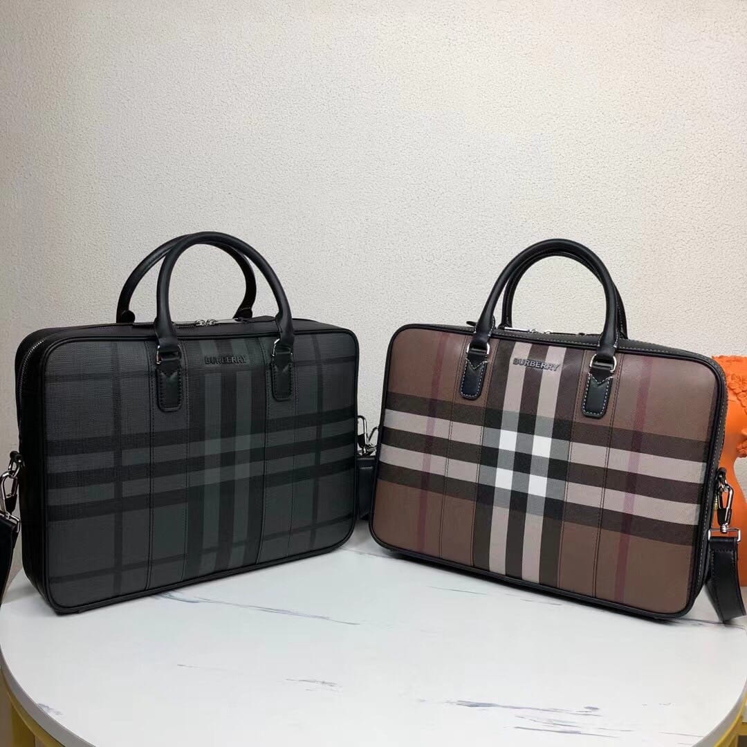 B家最新款公文包,采用格纹与意大利鞣制皮革打造,装饰品牌徽标