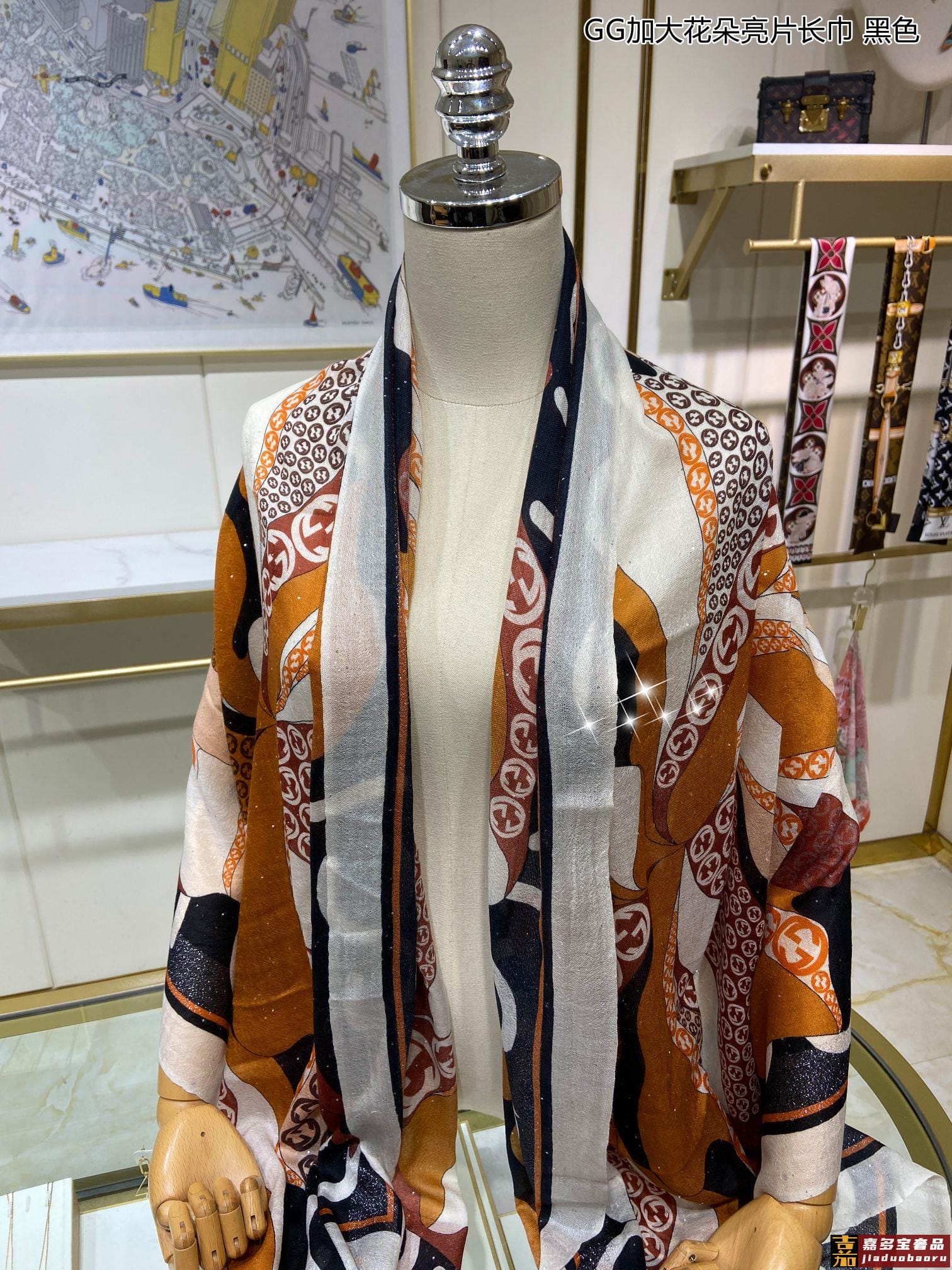 会发光发亮的围巾新款客供银线亮片羊绒面料长巾美翻了流泪加大花