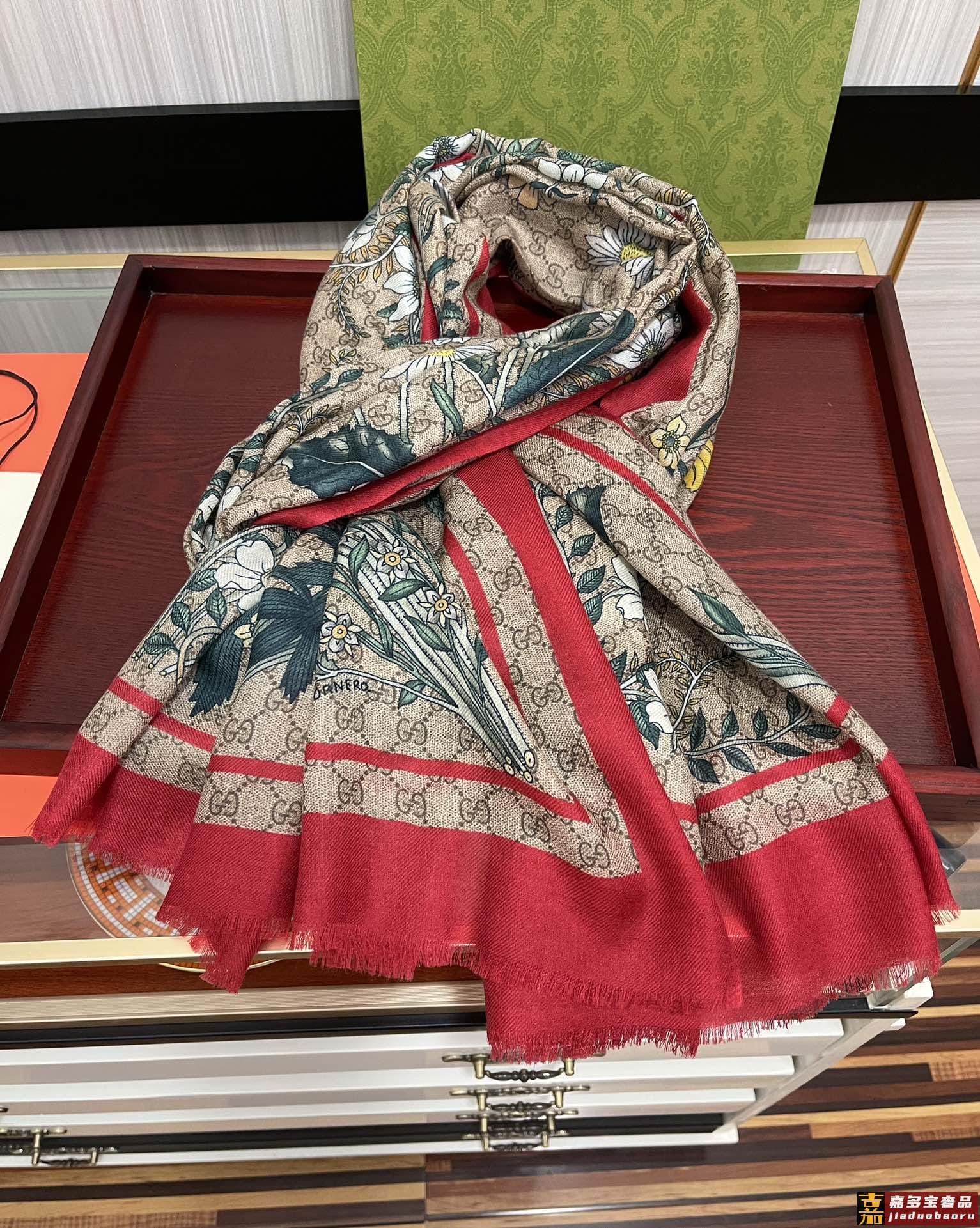 上新古奇最新款太美到心动支羊绒长巾实物真心美披肩配以印花无论