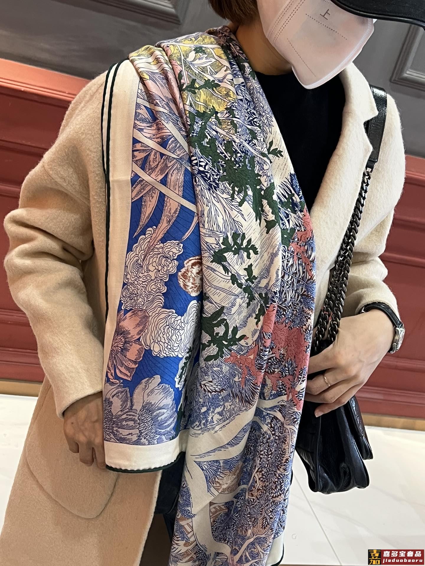 上新会发光发亮的围巾新款客供银丝羊绒面料长巾美翻了流泪山茶花